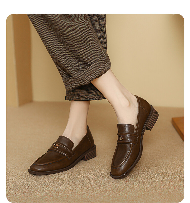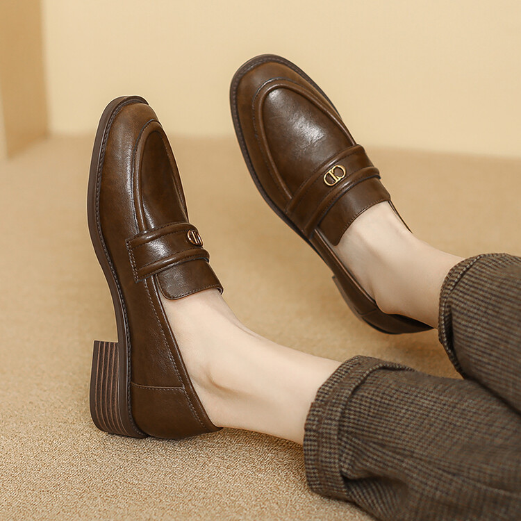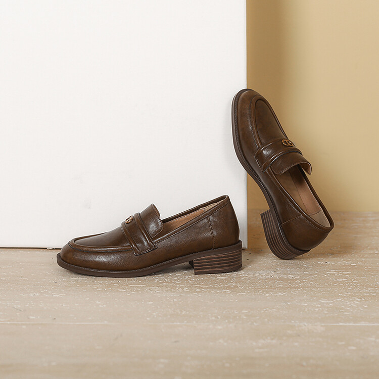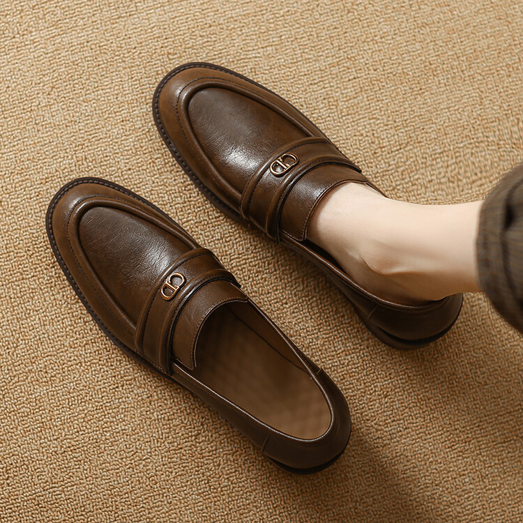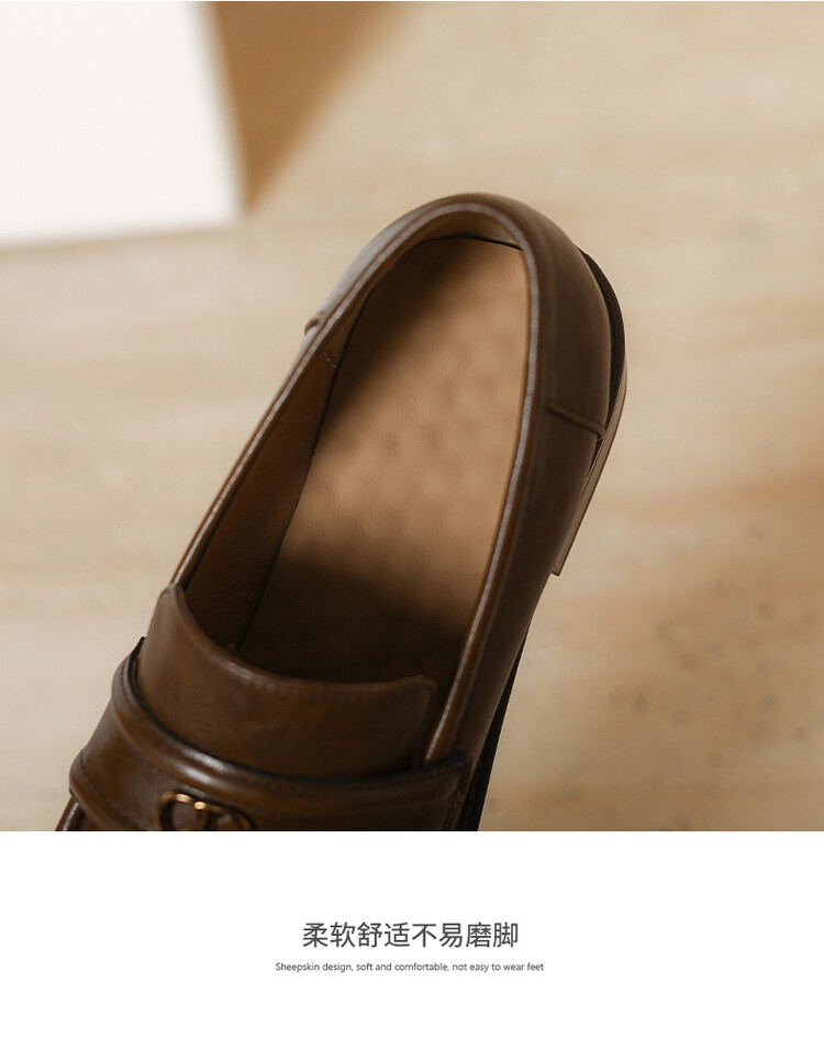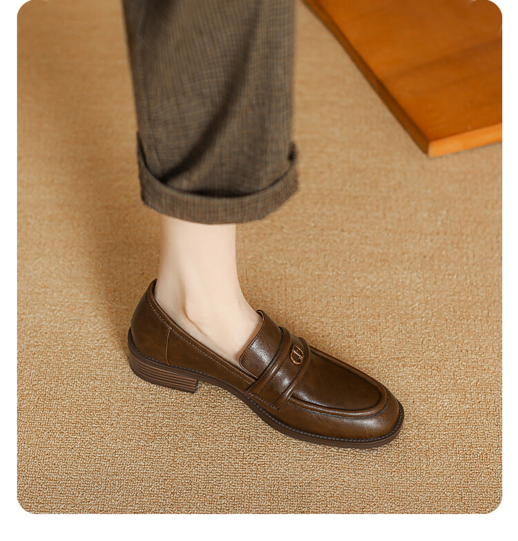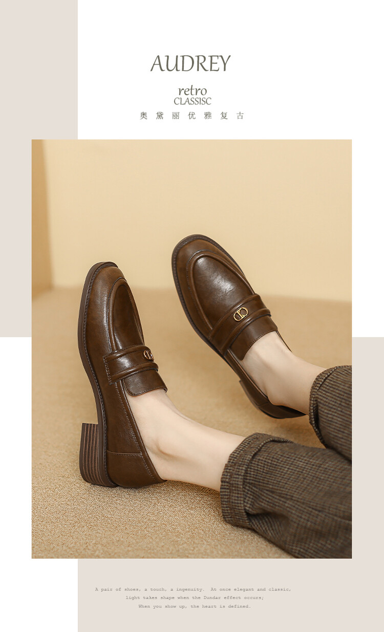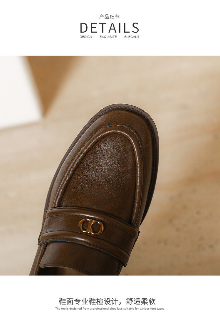 【预售5天】学院风复古棕色圆头低跟小皮鞋秋冬季新款加绒乐福鞋女SCX&124-1