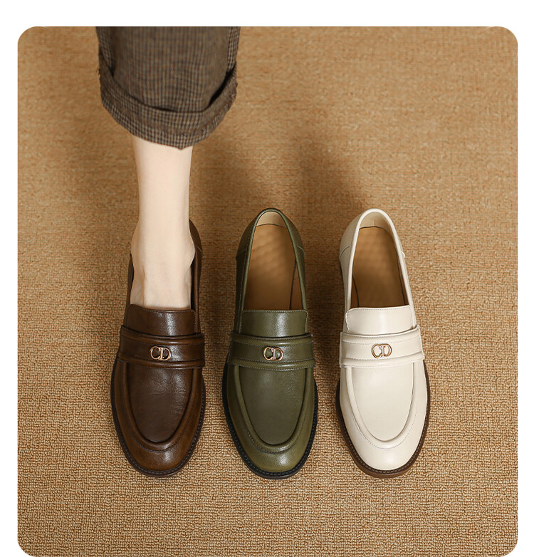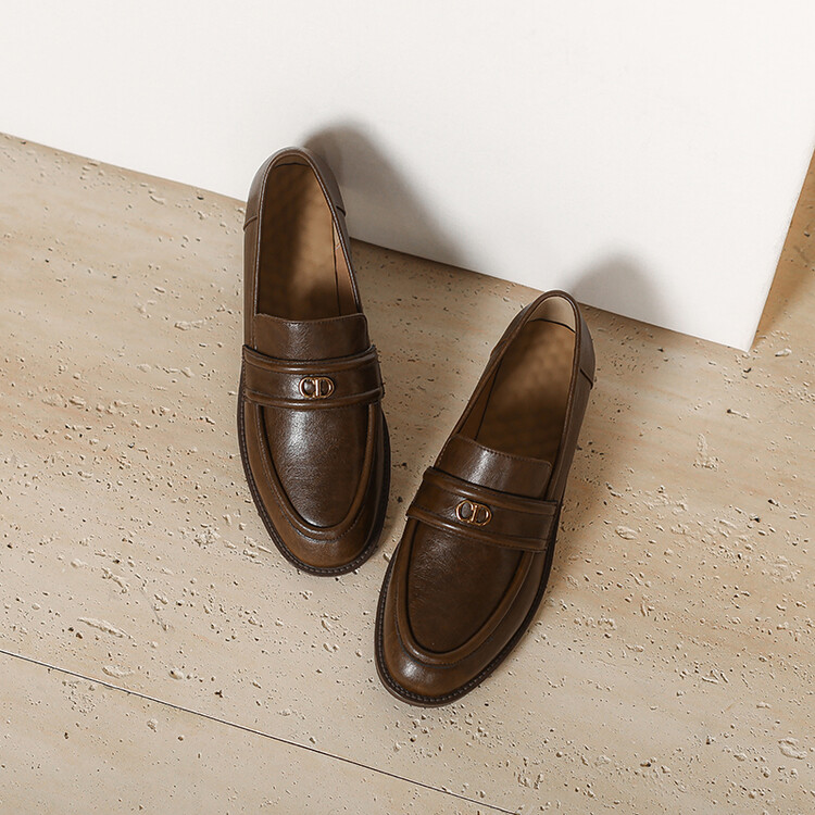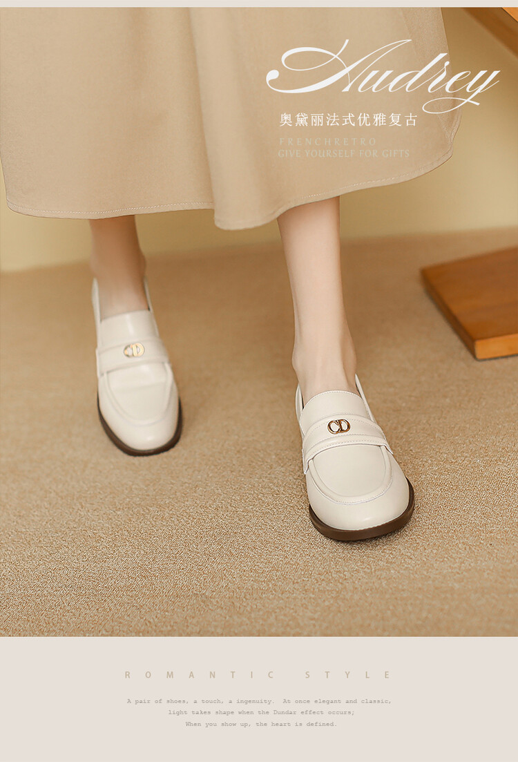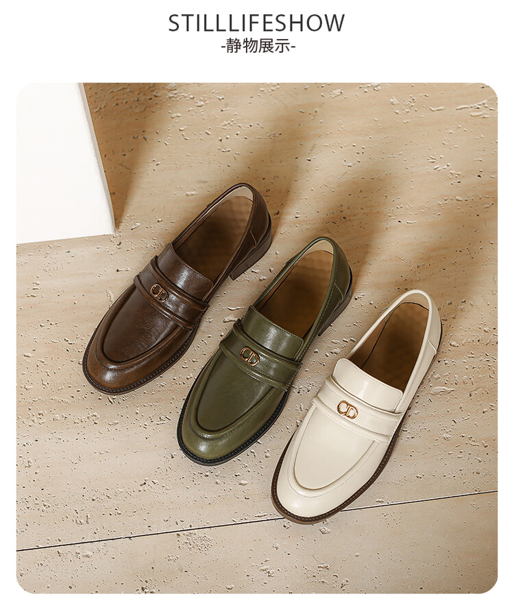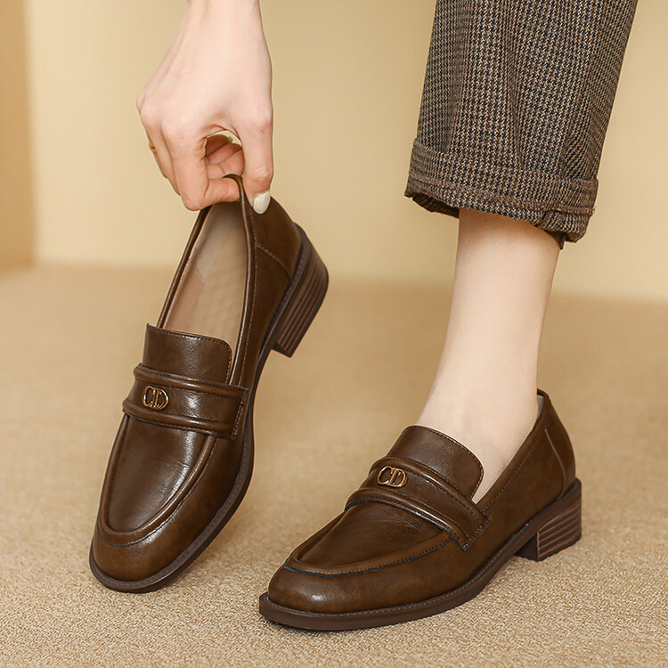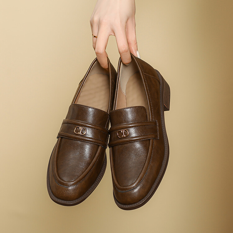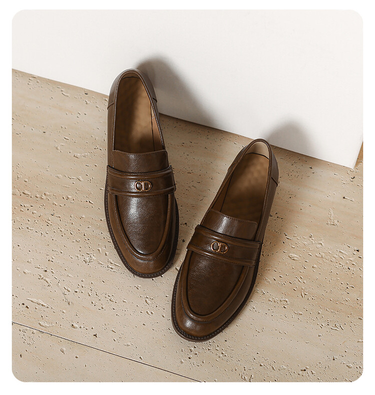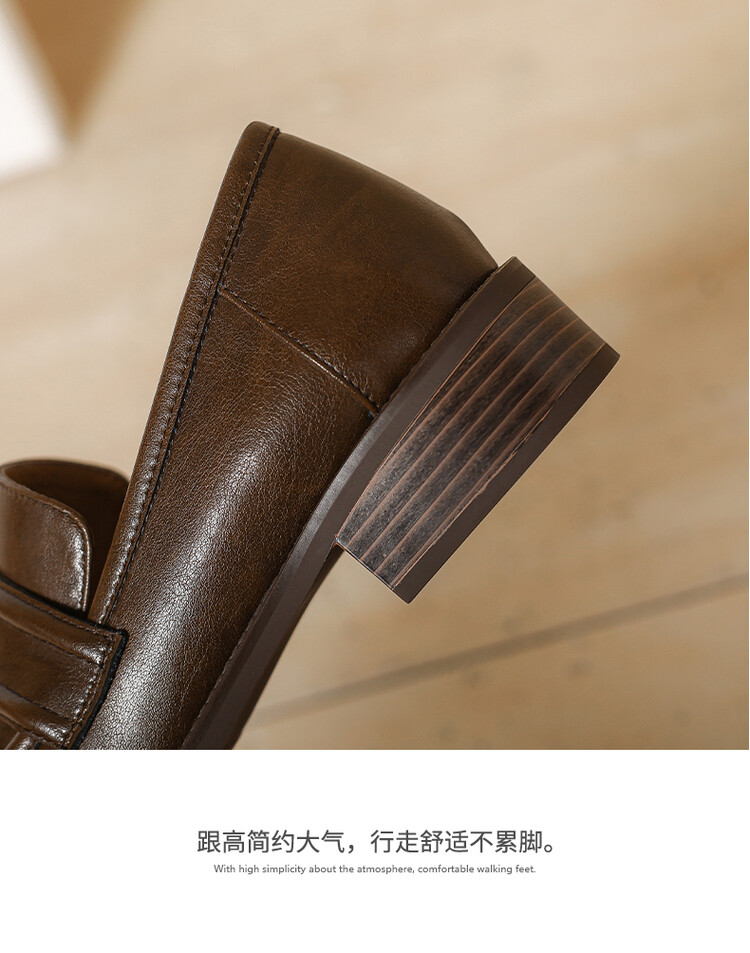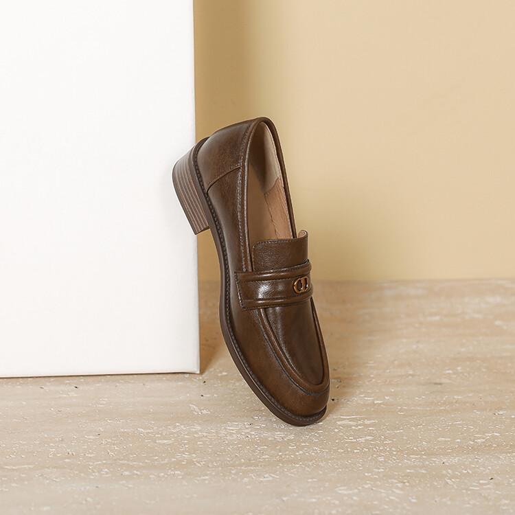 【预售5天】学院风复古棕色圆头低跟小皮鞋秋冬季新款加绒乐福鞋女SCX&124-1
