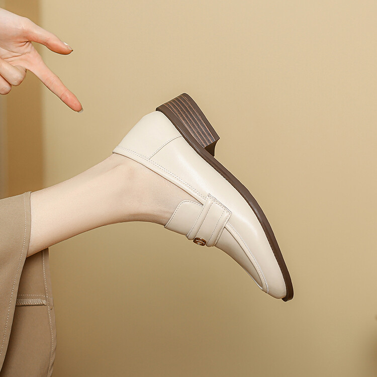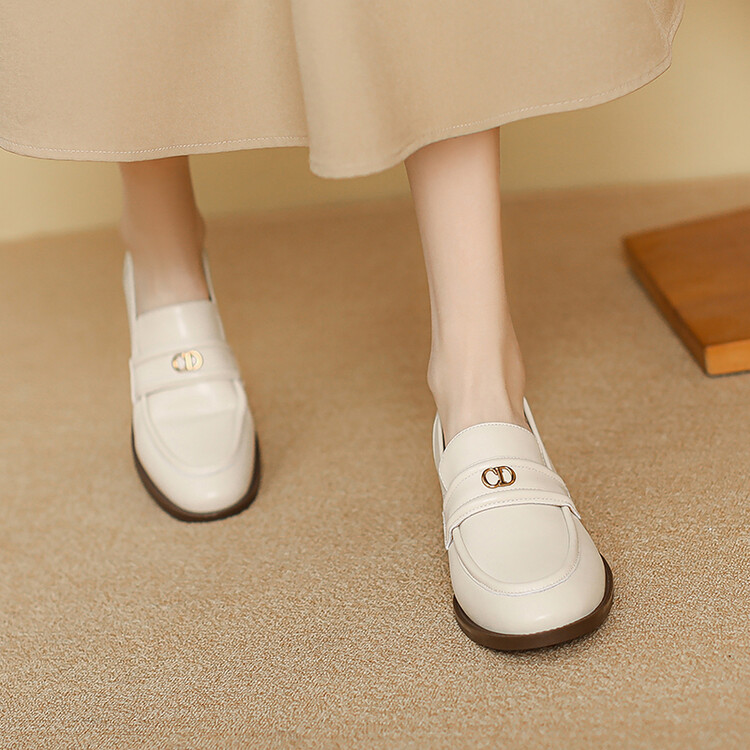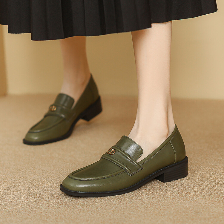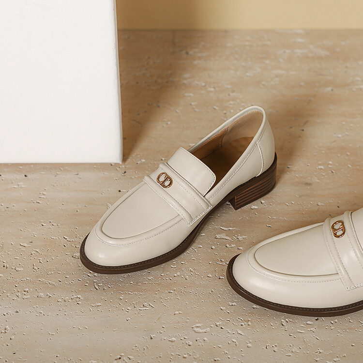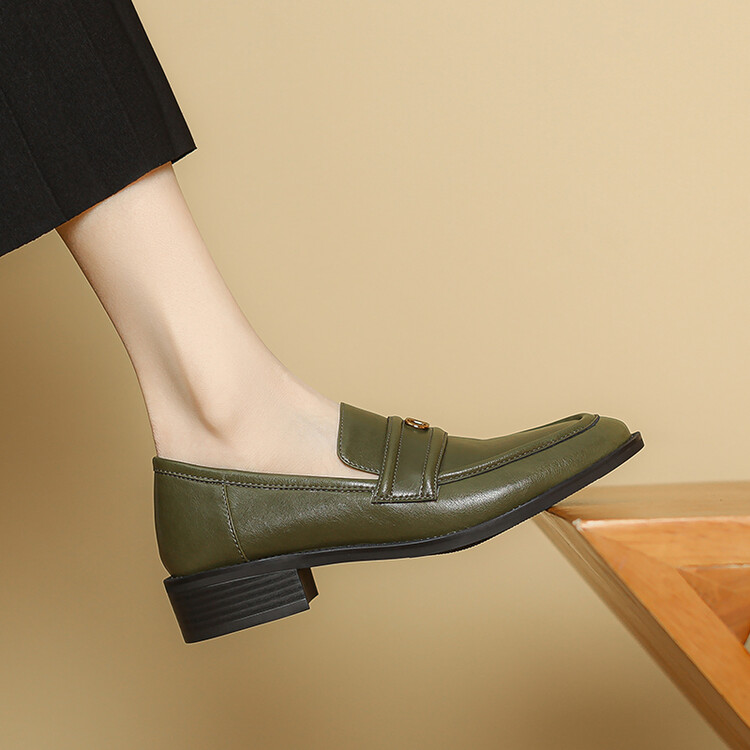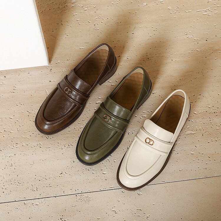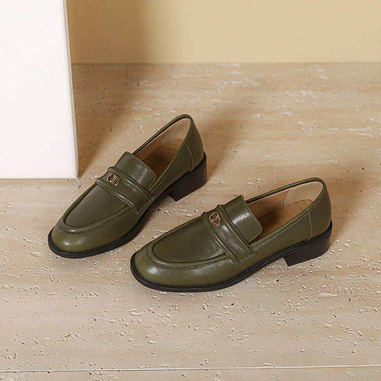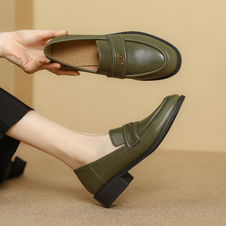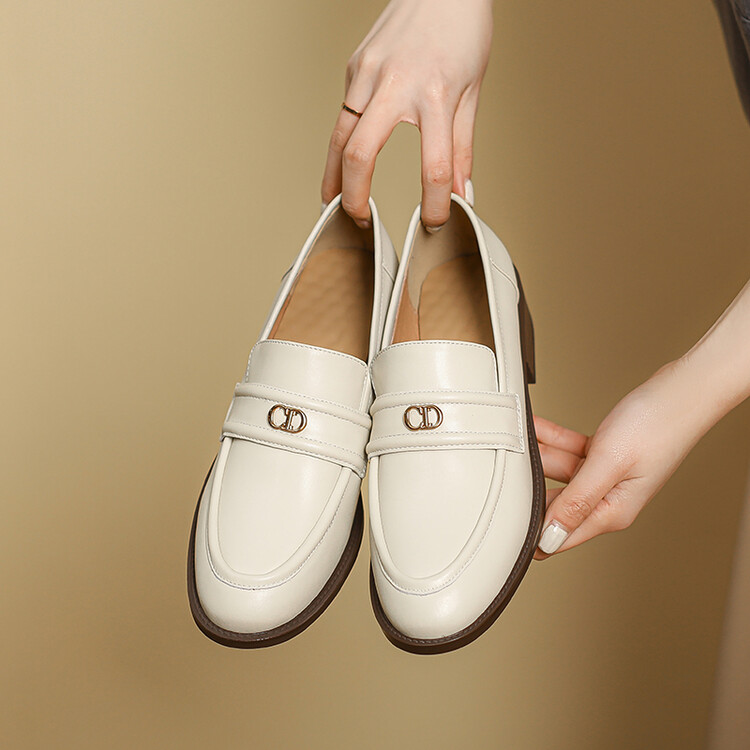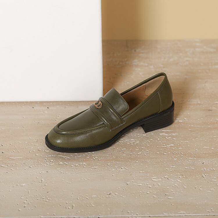 【预售5天】学院风复古棕色圆头低跟小皮鞋秋冬季新款加绒乐福鞋女SCX&124-1