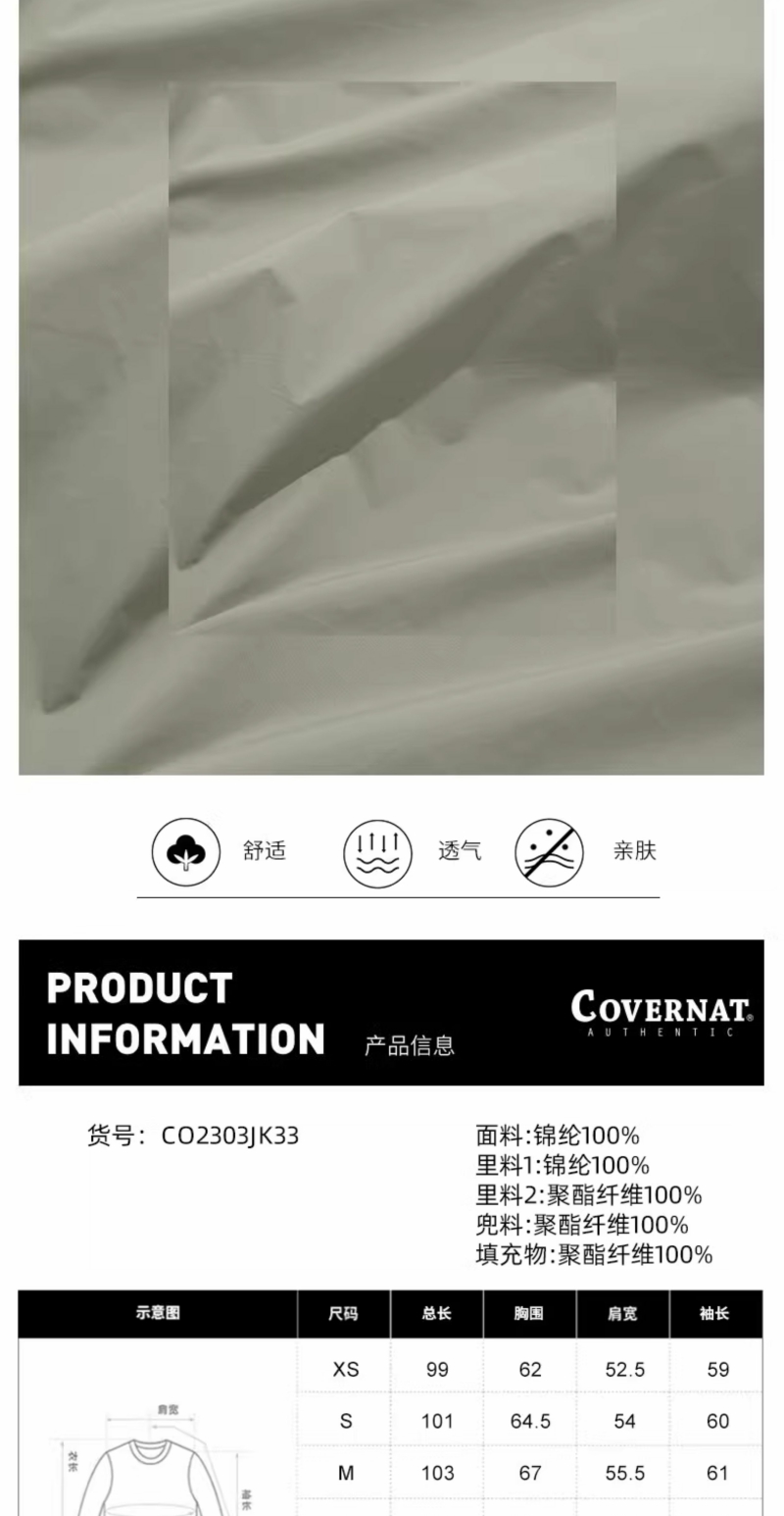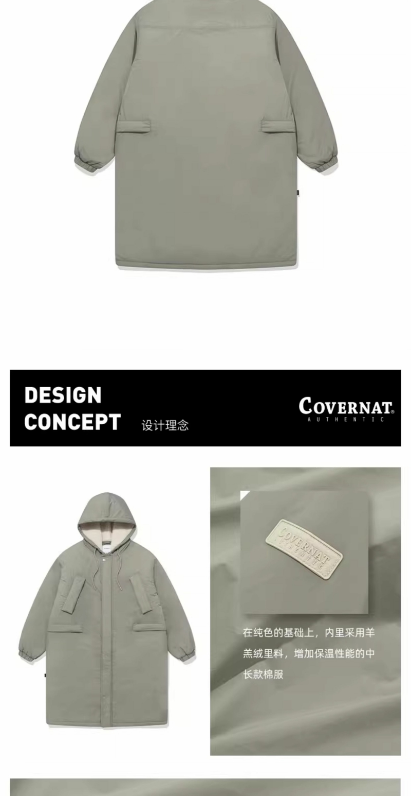 【限时秒杀】Covernat2023冬季新品中长款棉服外套男士时尚舒适百搭男装CO2303JK33