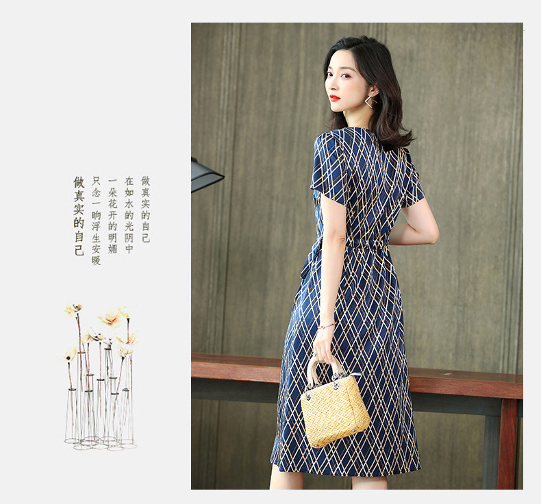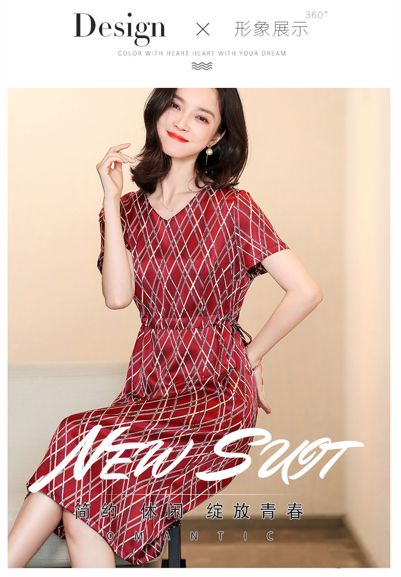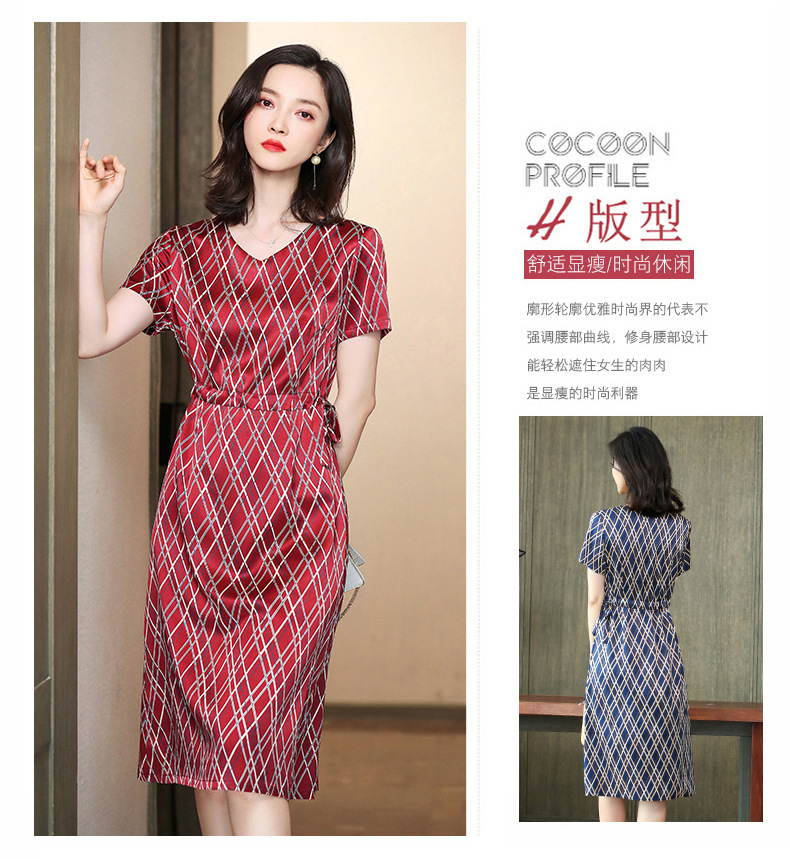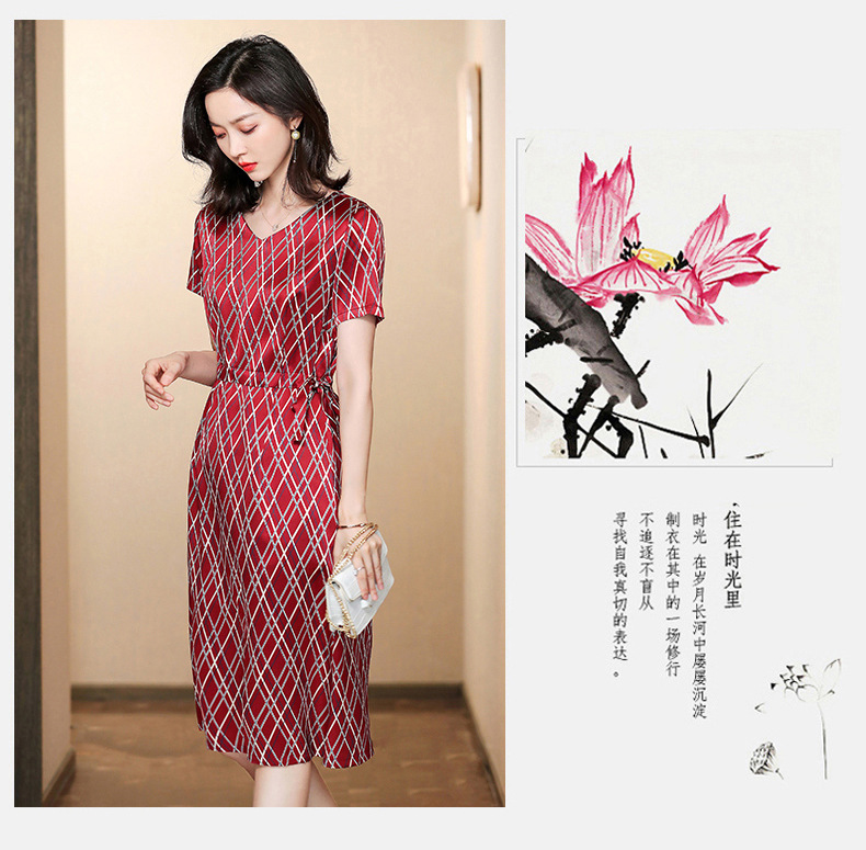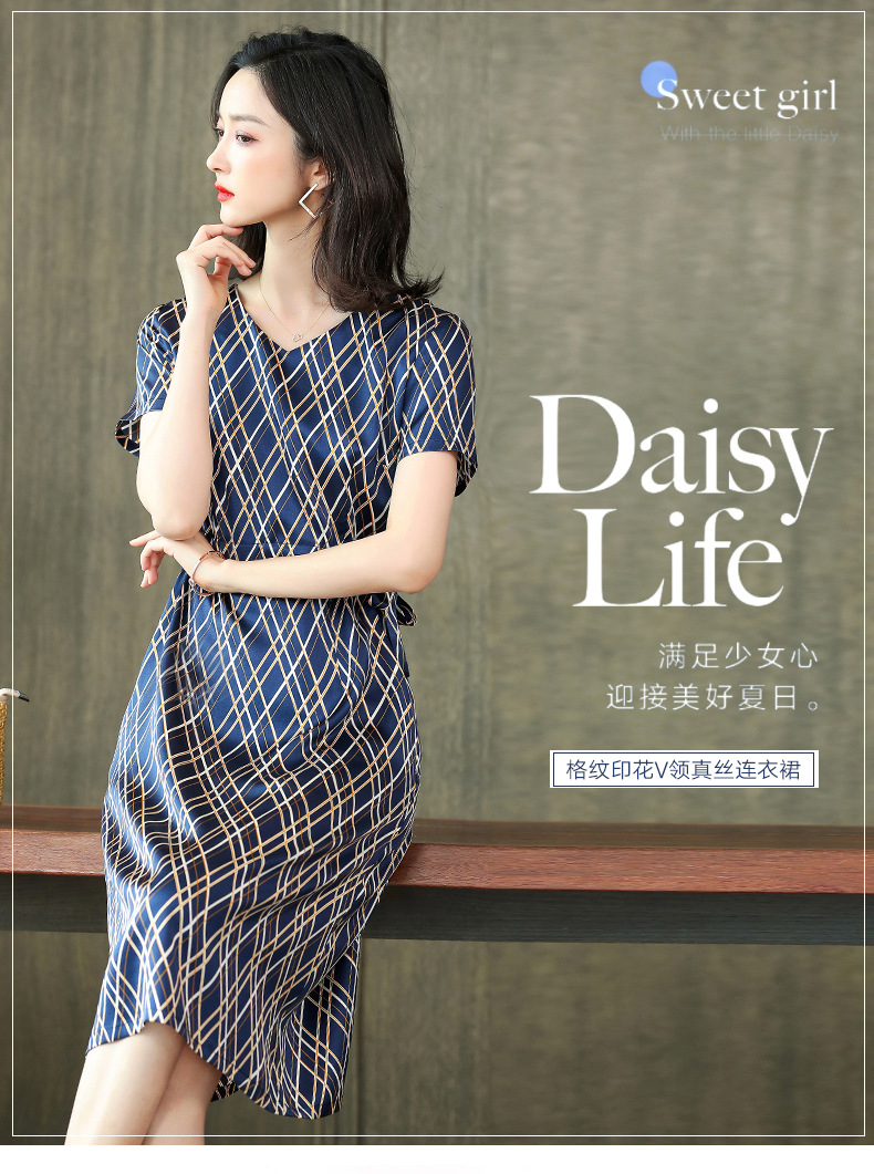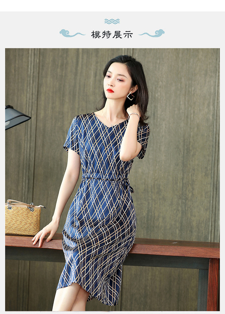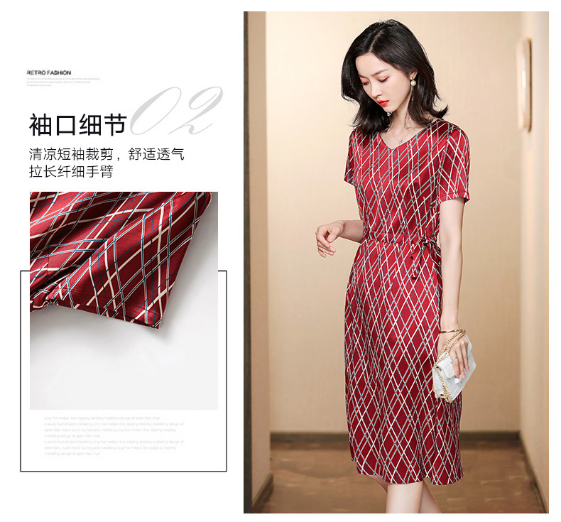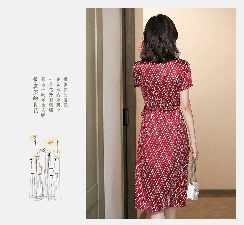 上海旗袍厂ASE-6681格纹气质真丝连衣裙