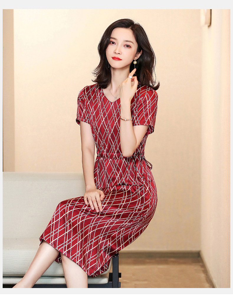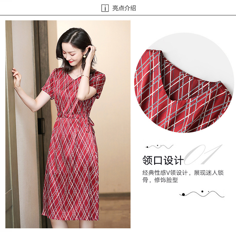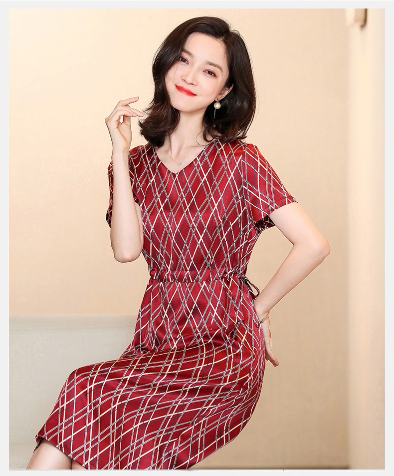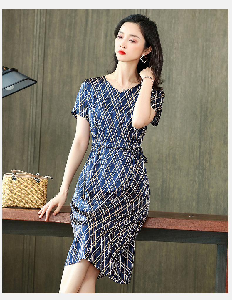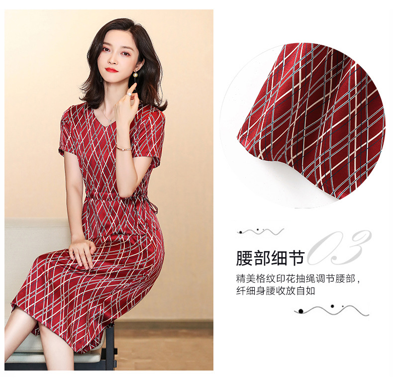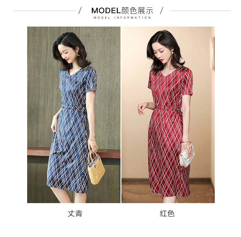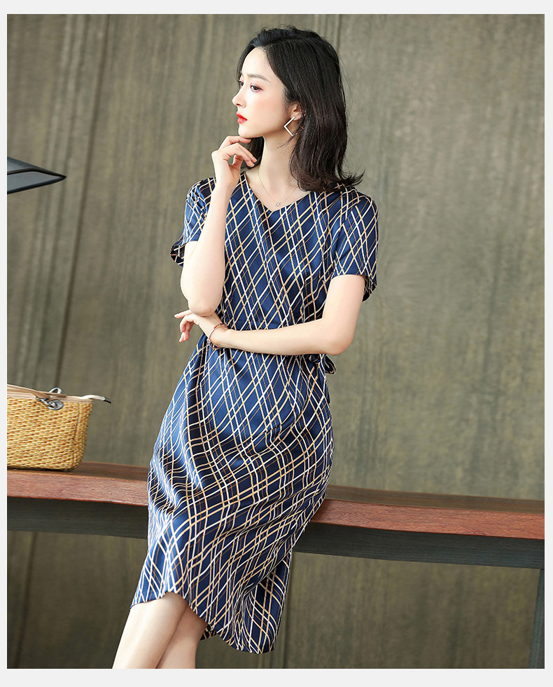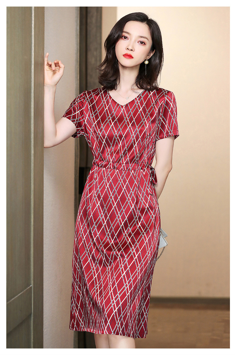 上海旗袍厂ASE-6681格纹气质真丝连衣裙