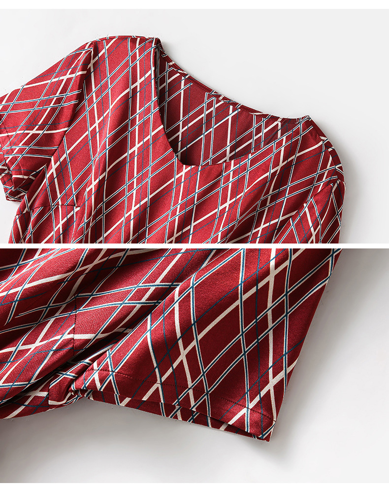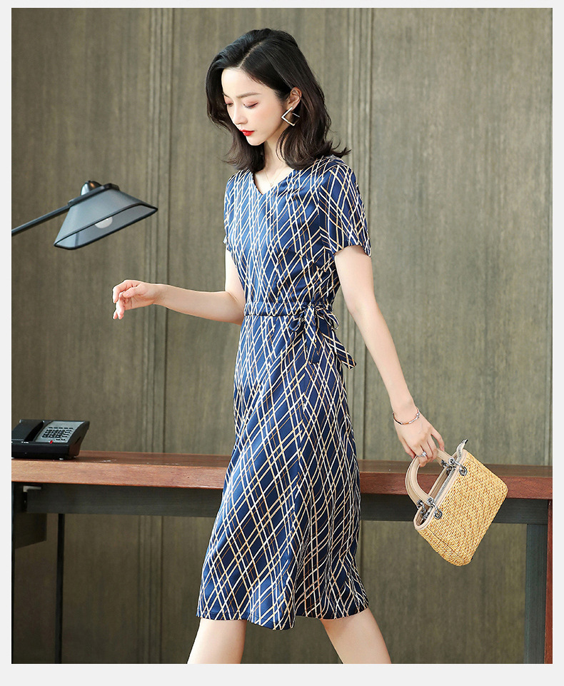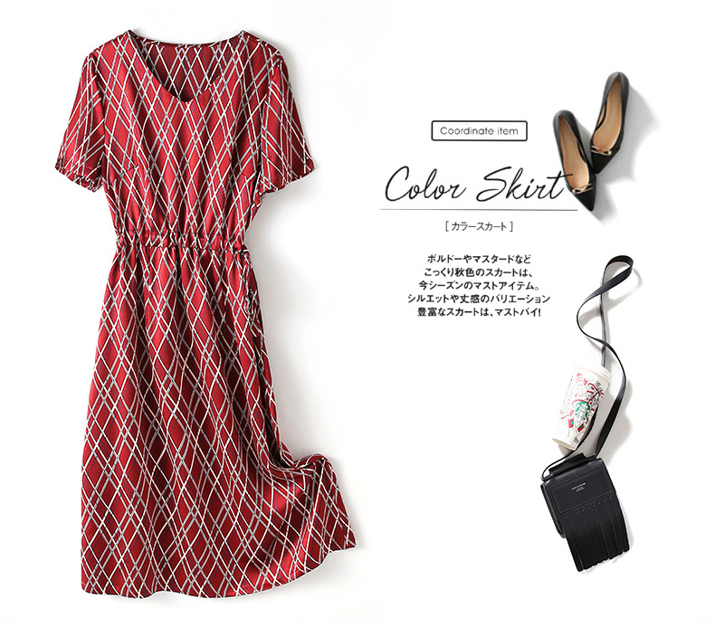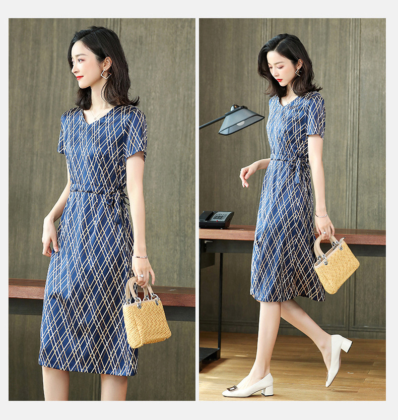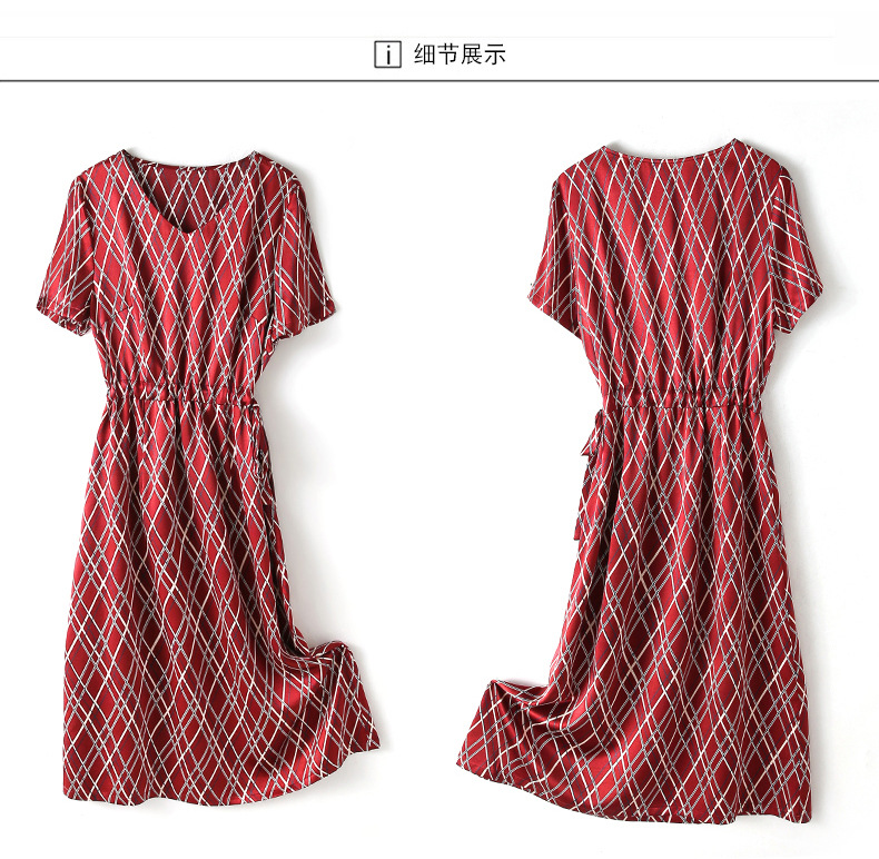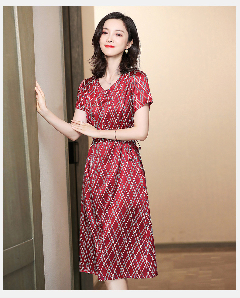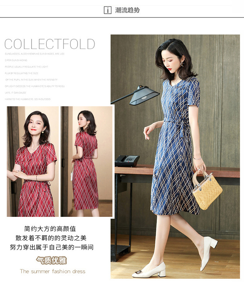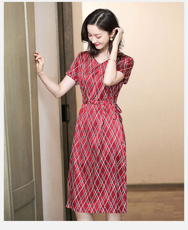 上海旗袍厂ASE-6681格纹气质真丝连衣裙