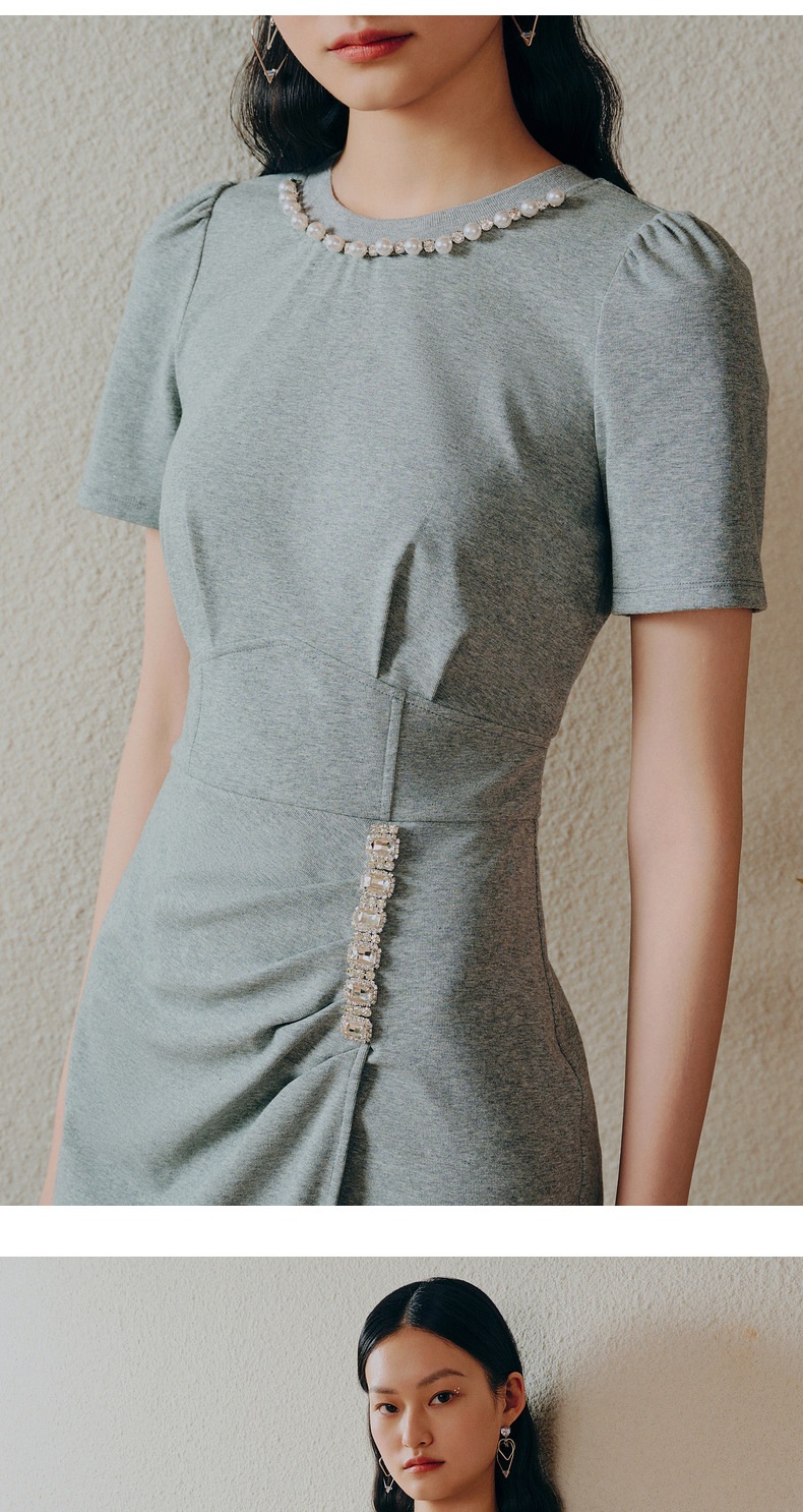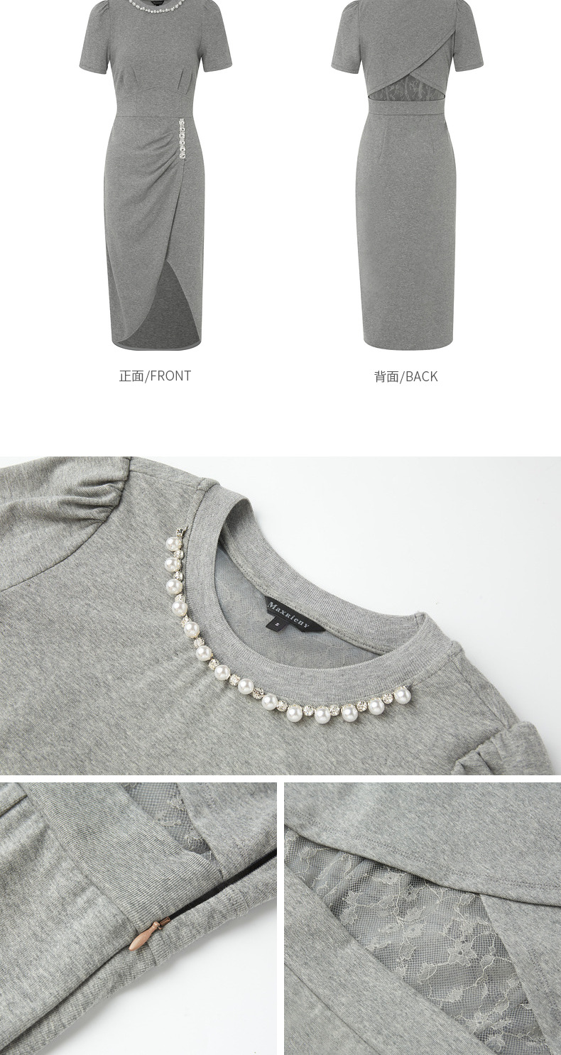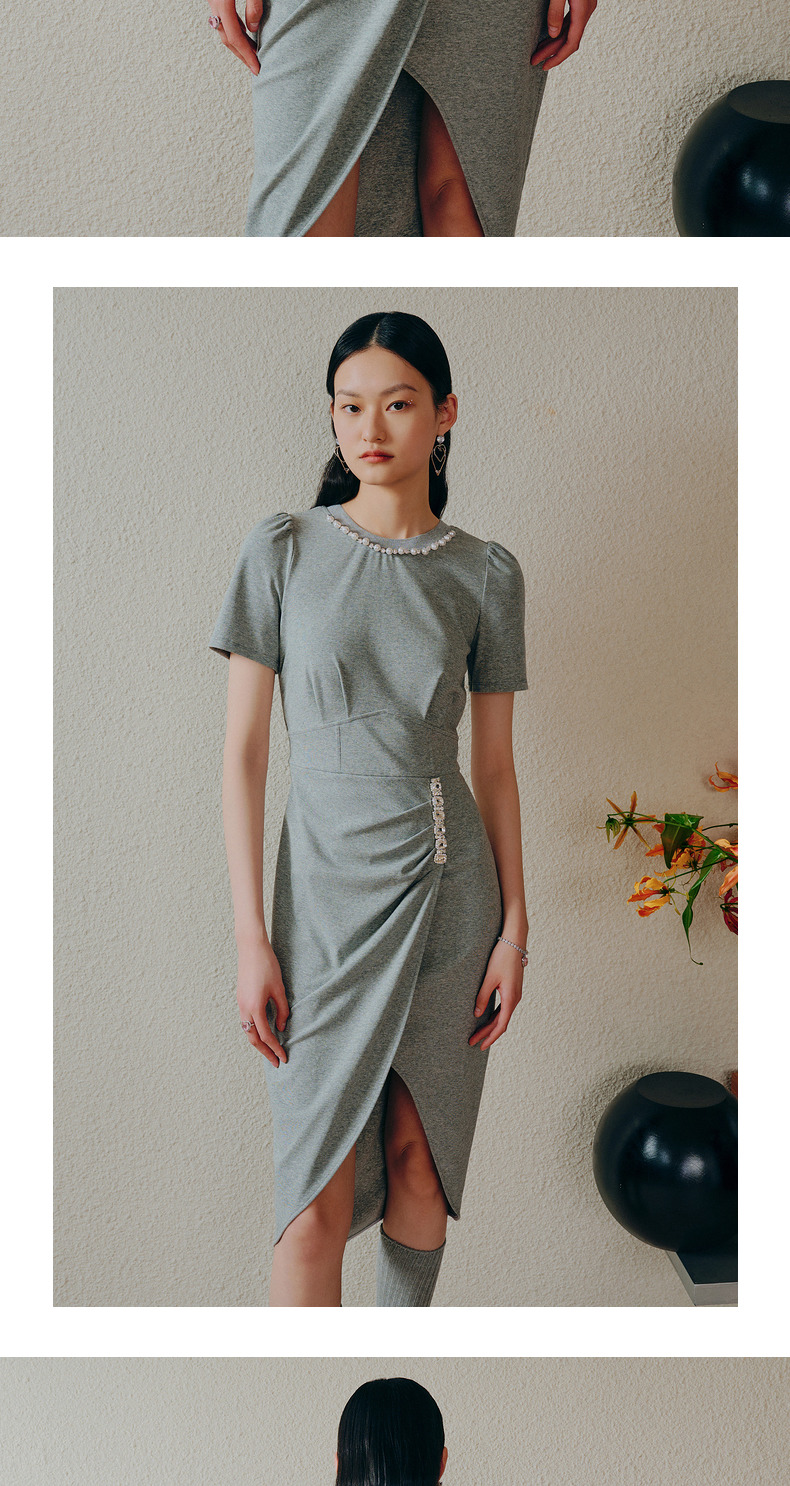 【商场同款】MAXRIENY精致轻奢感不对称抽褶连衣裙修身遮肉开叉裙(货号:MC88DR334)
