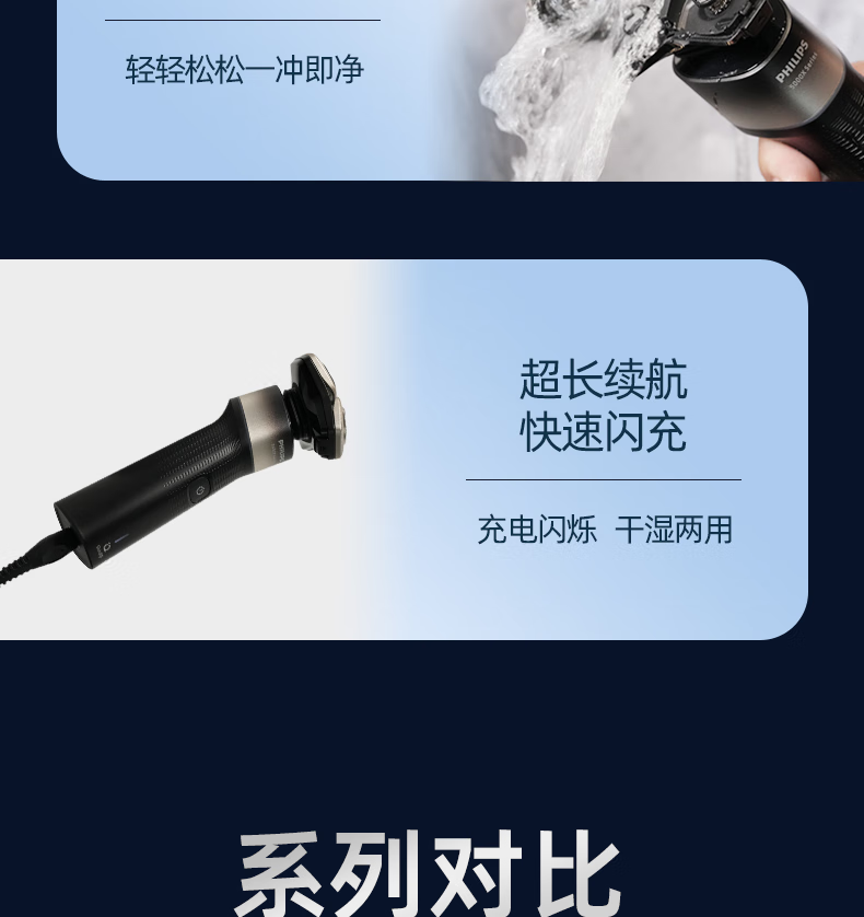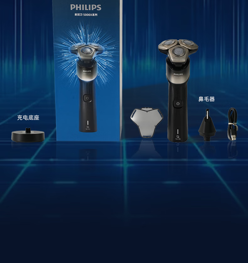 【飞利浦】飞利浦电动剃须刀5系男士刮胡刀飞利浦三刀头XQ523