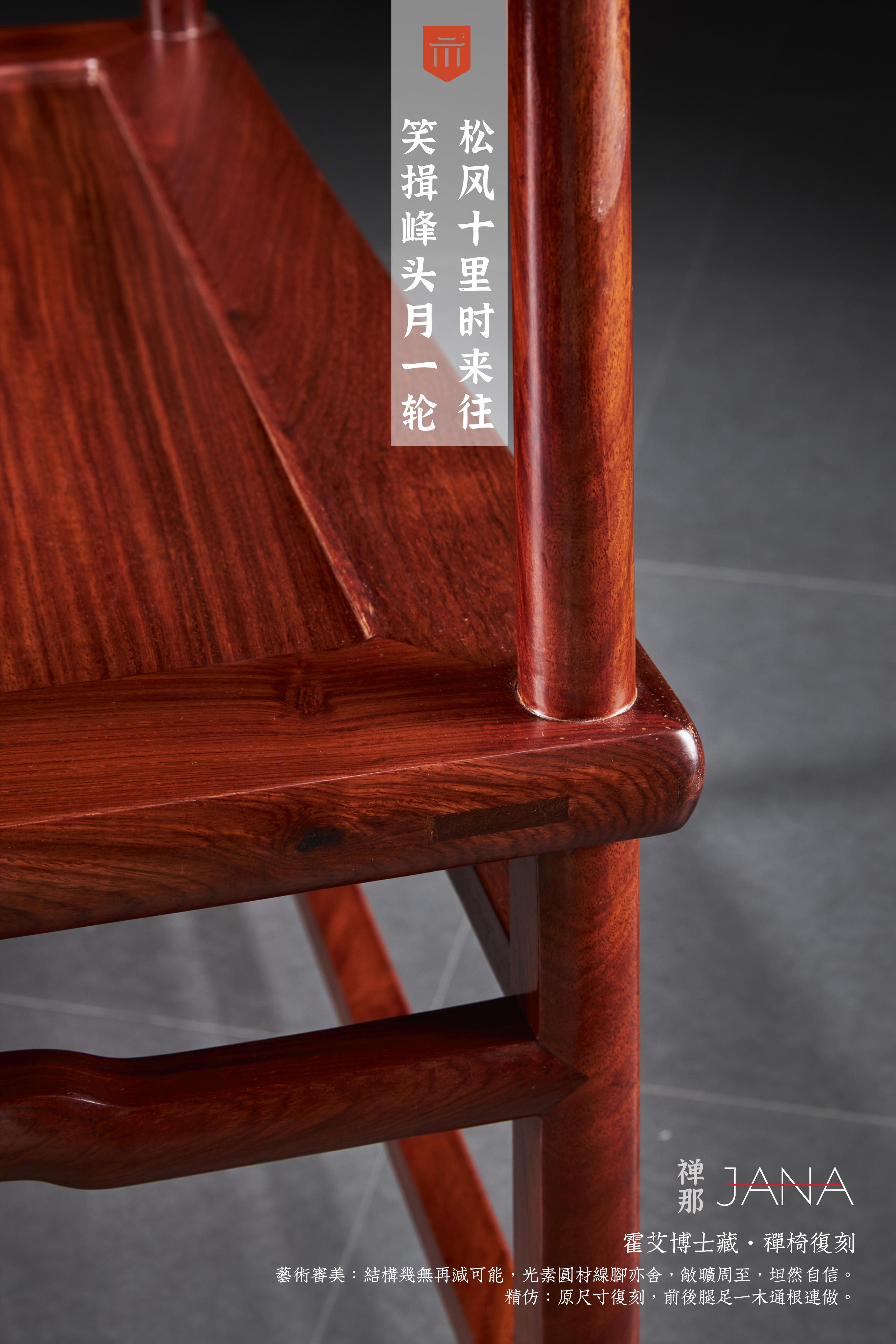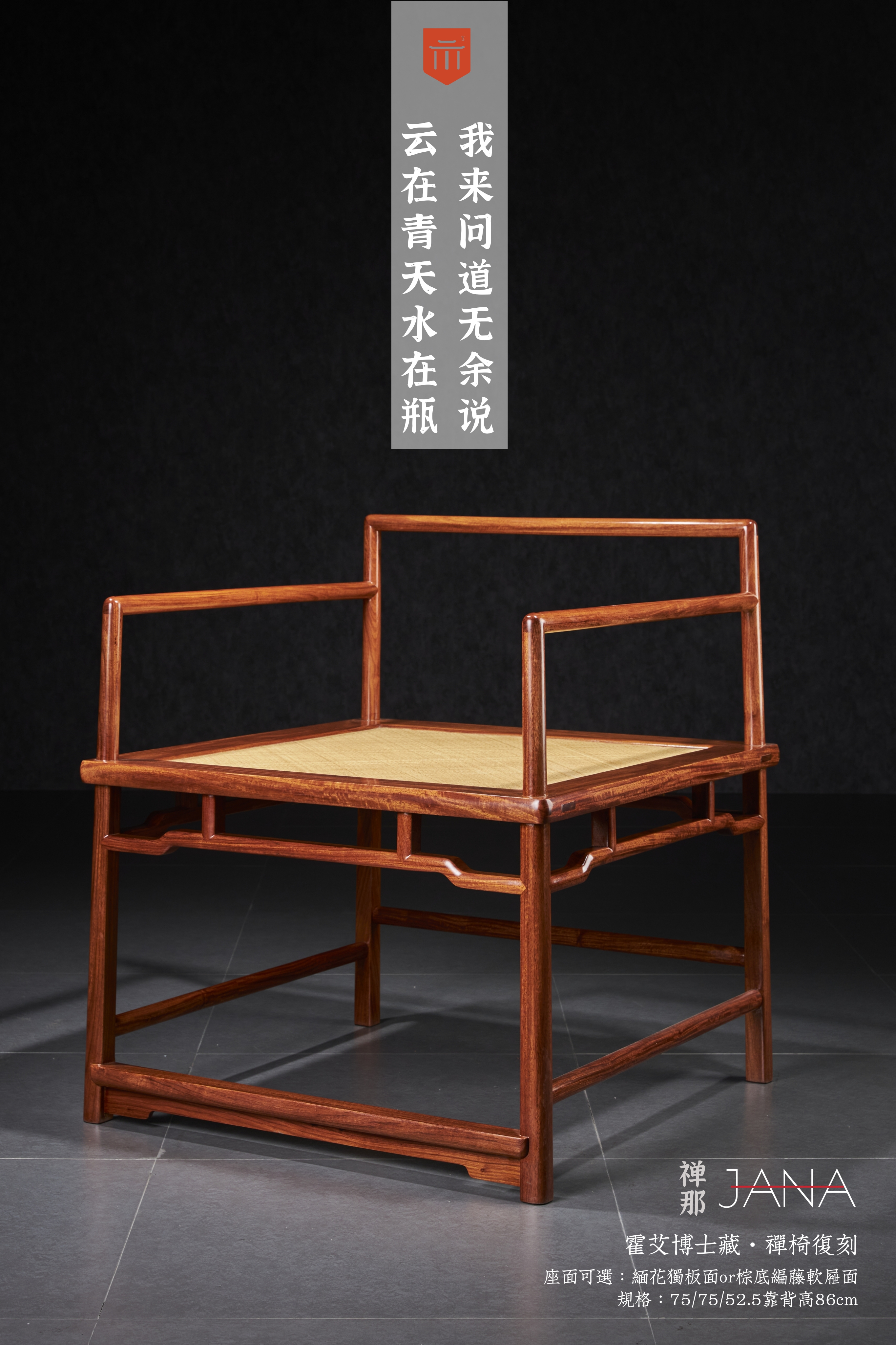 禅椅原型曾收藏于美国加州中国古典家具博物馆,是玫瑰椅式,座面宽大,阔而深,成正方形,座面攒框镶独板面或编藤面两款,可供人盘足结跏趺坐。