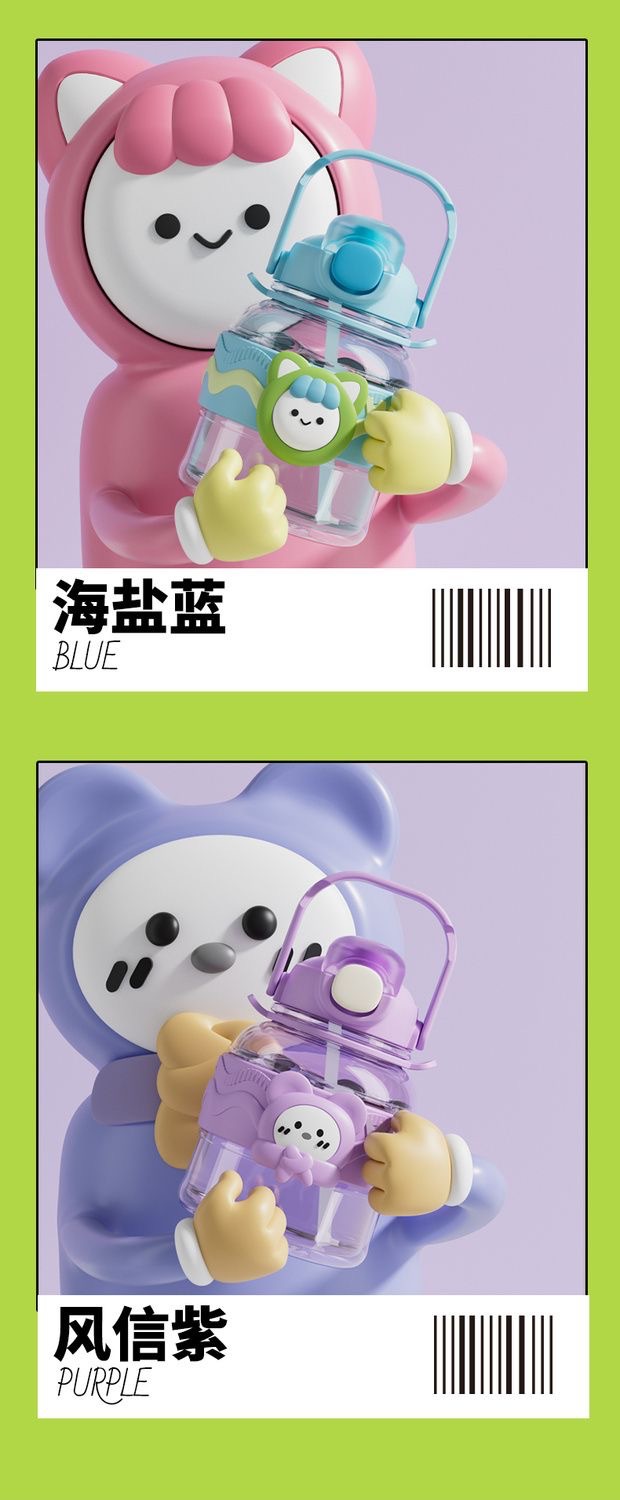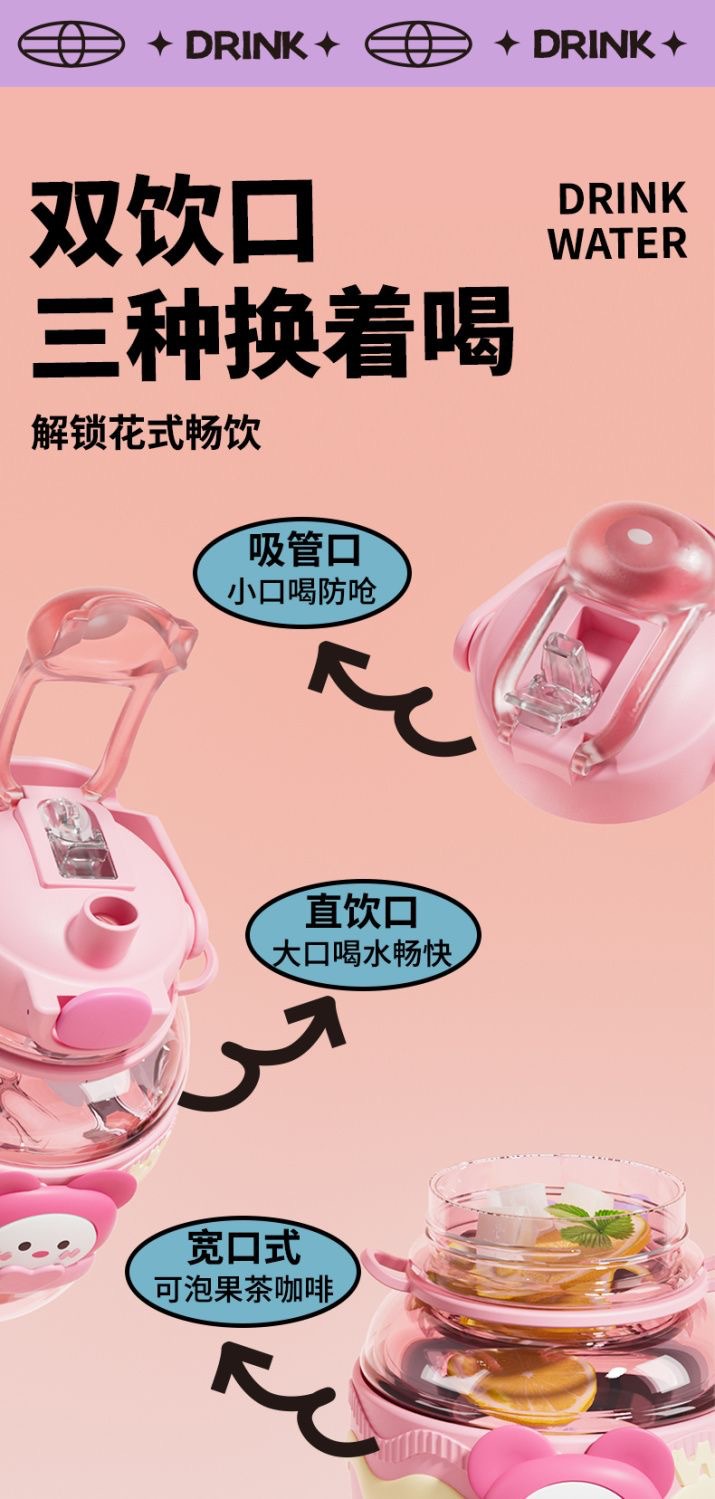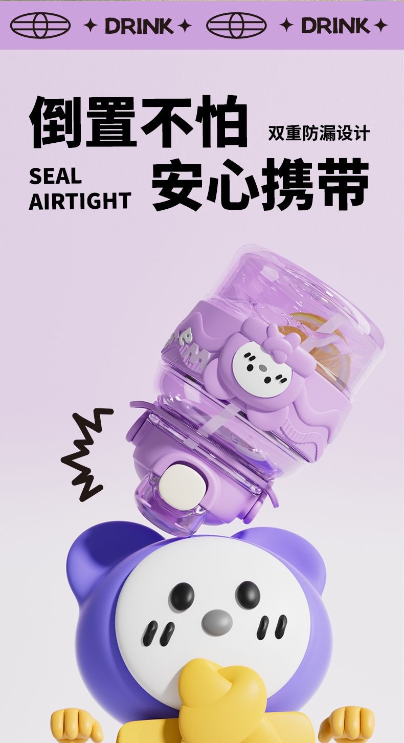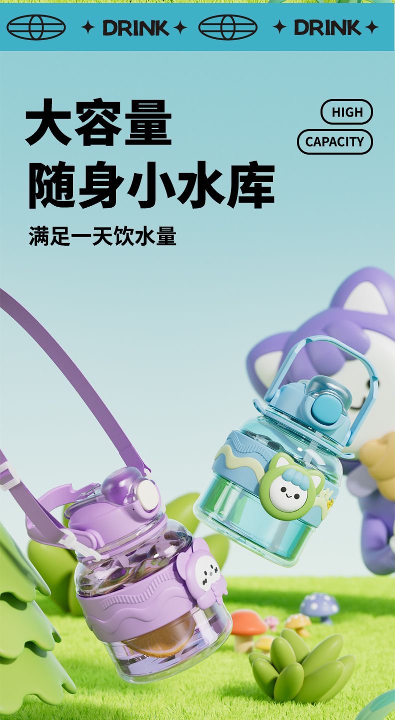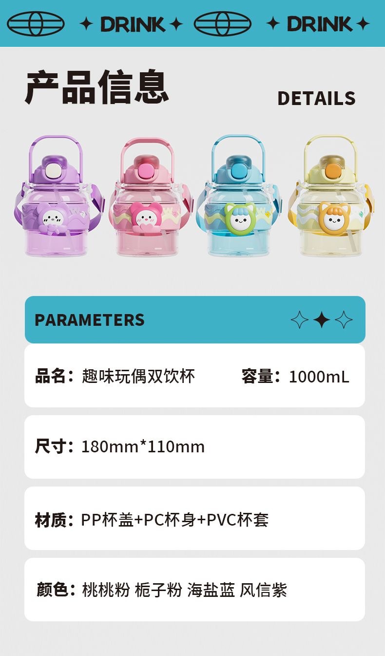 【大容量随身小水库,满足一天饮水量~】儿童卡通双饮大肚水杯 趣味玩偶杯 便携背带学生高颜值大容量水杯-QQ