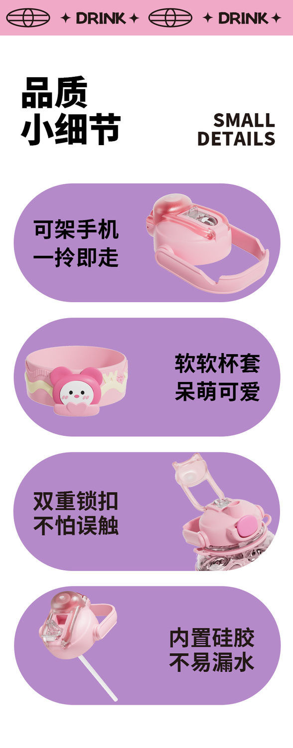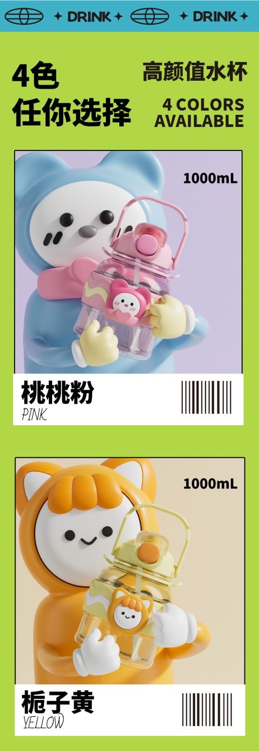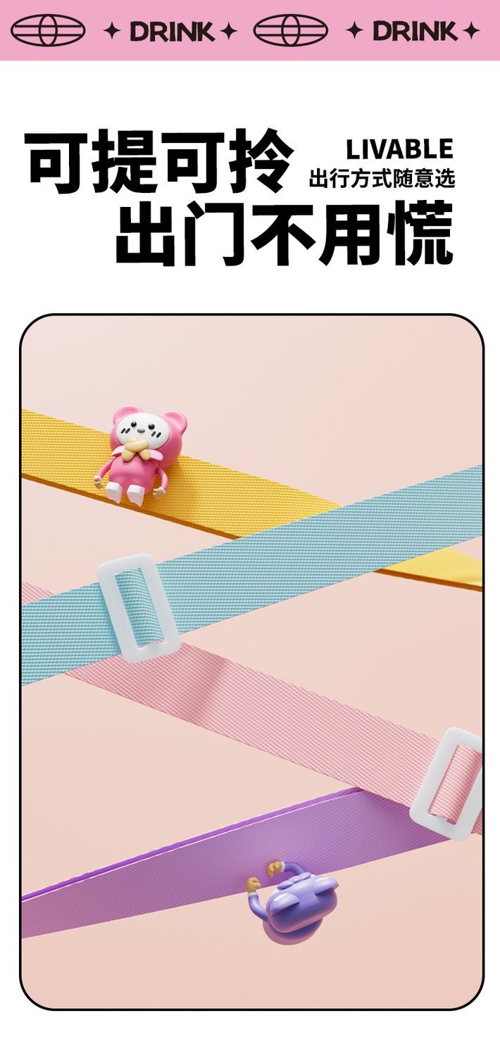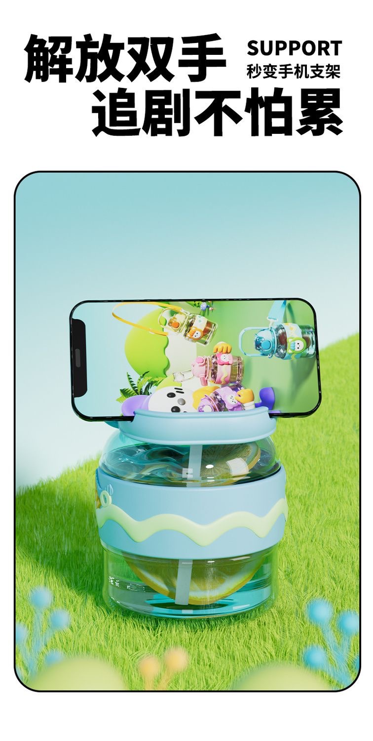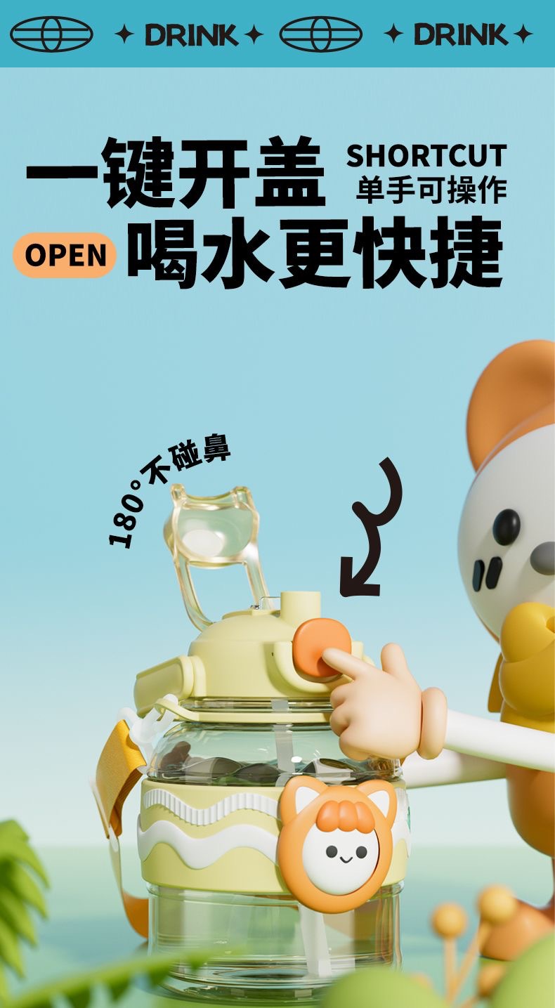 【大容量随身小水库,满足一天饮水量~】儿童卡通双饮大肚水杯 趣味玩偶杯 便携背带学生高颜值大容量水杯-QQ
