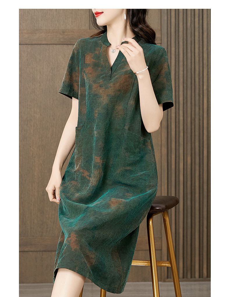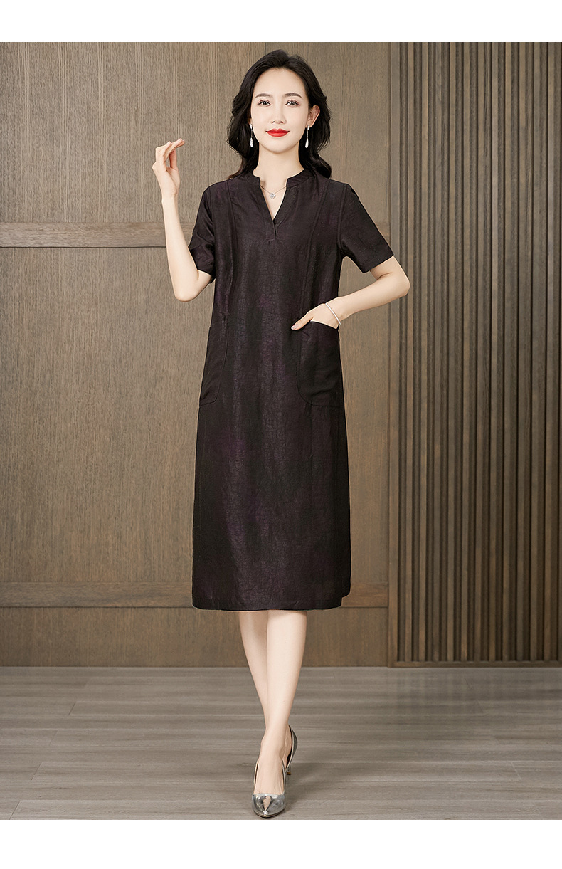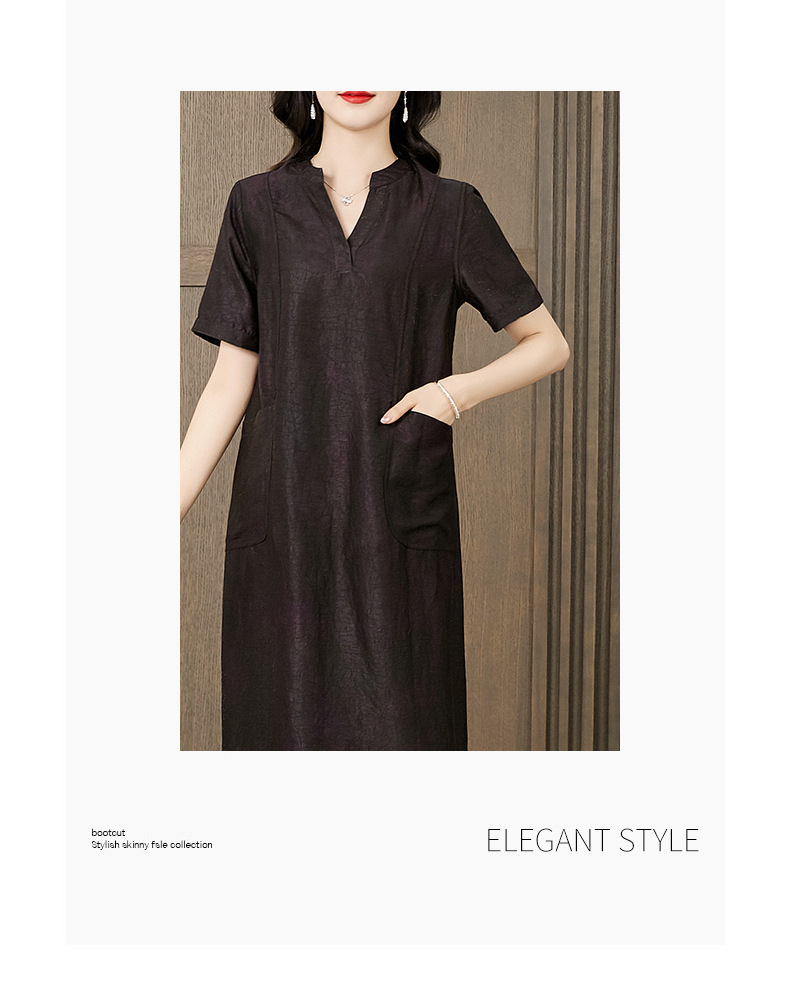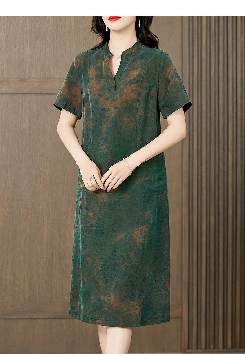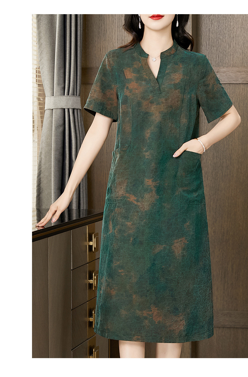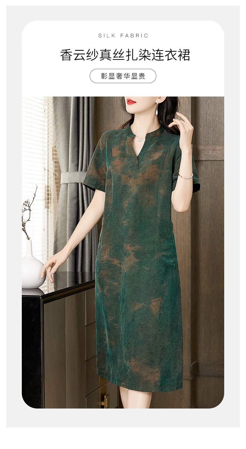 "丁摩 龟纹香云纱连衣裙女夏气质显瘦洋气双面穿桑蚕丝真丝裙子4ZF-221540 "