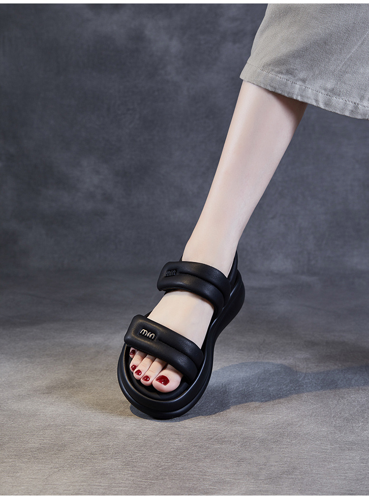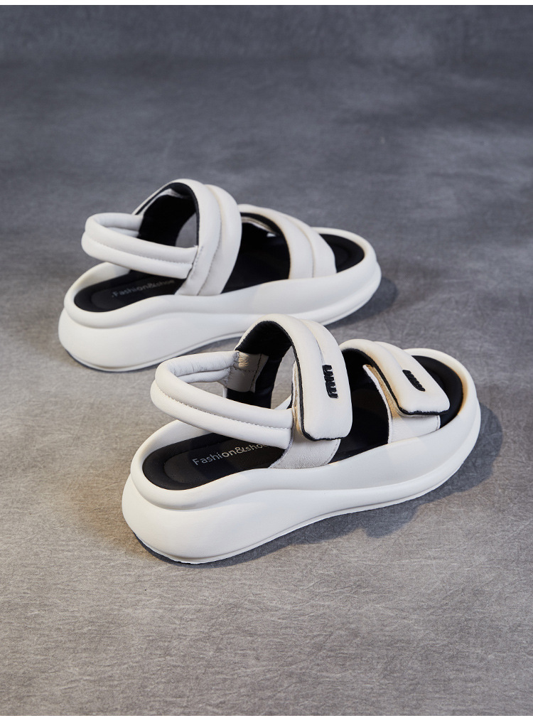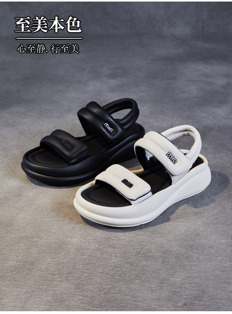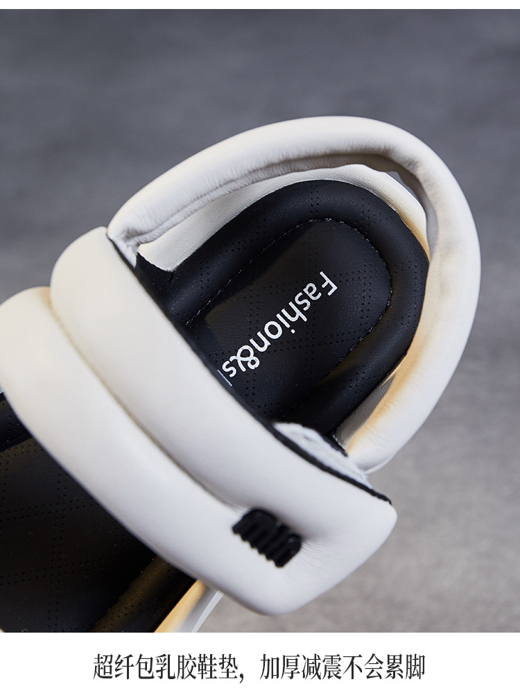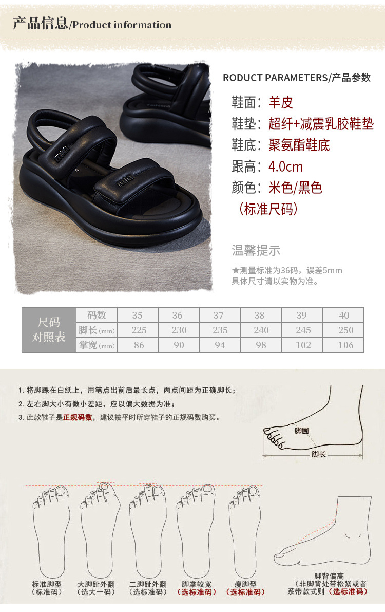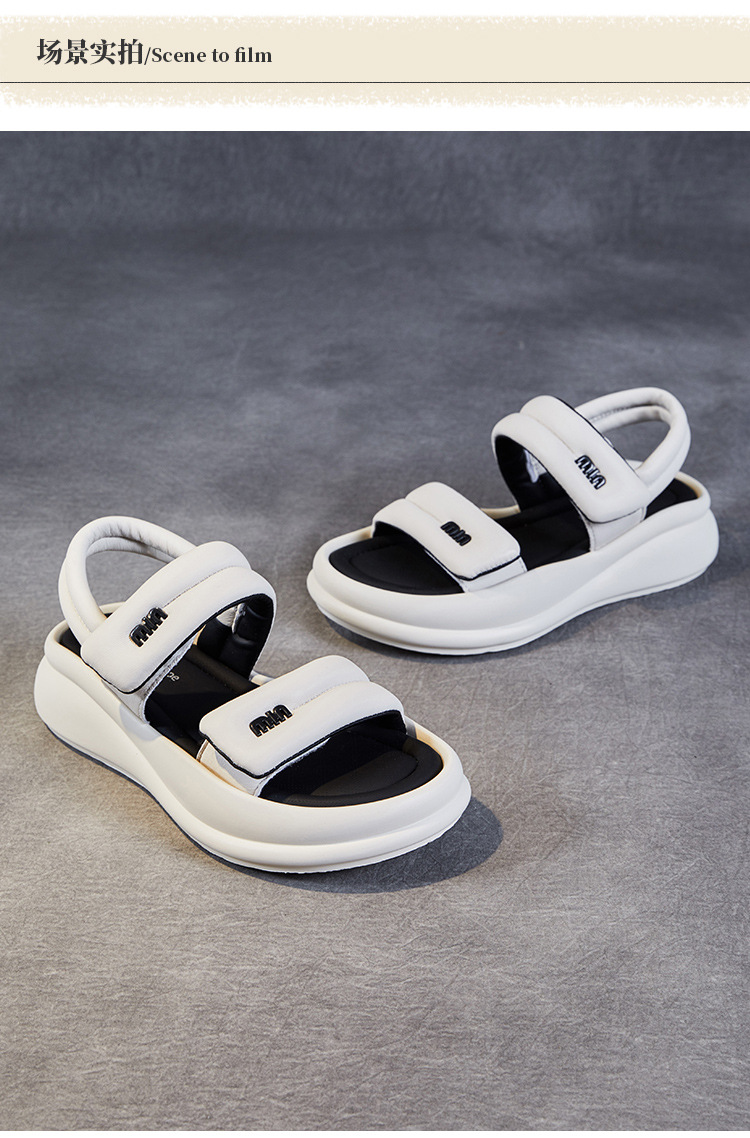 羊皮面包松糕厚底魔术贴露趾凉鞋,外穿休闲罗马鞋潮ZM24X791