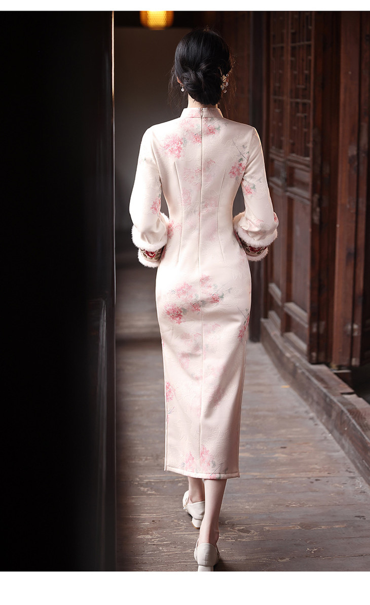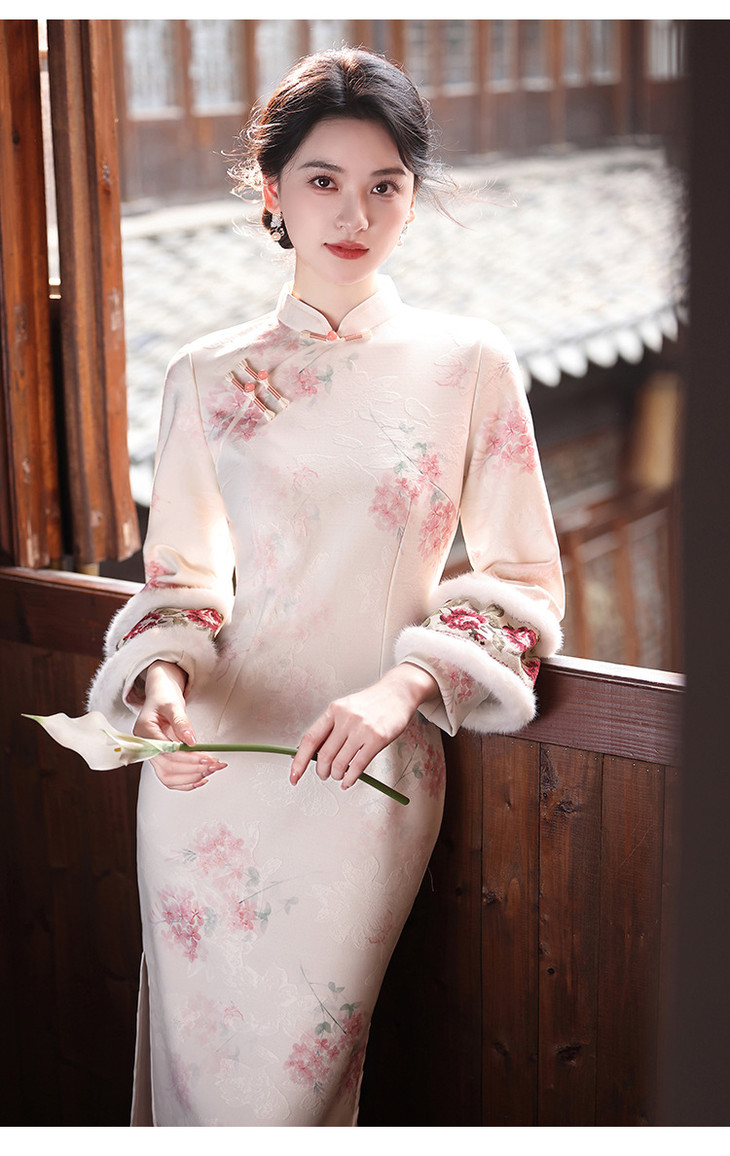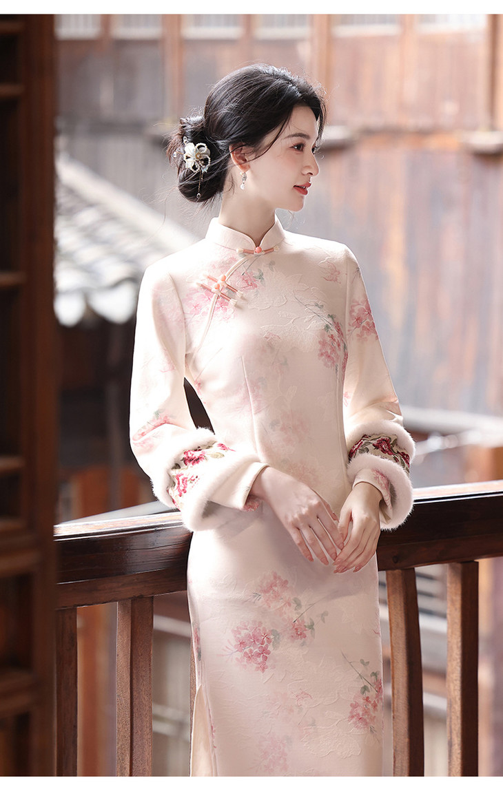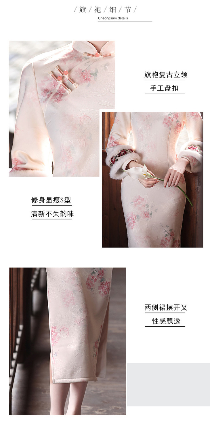 【暗香盈袖】新款新中式绝美粉色倒大袖,旗袍冬装年轻款保暖加绒LSB4293 商品图3