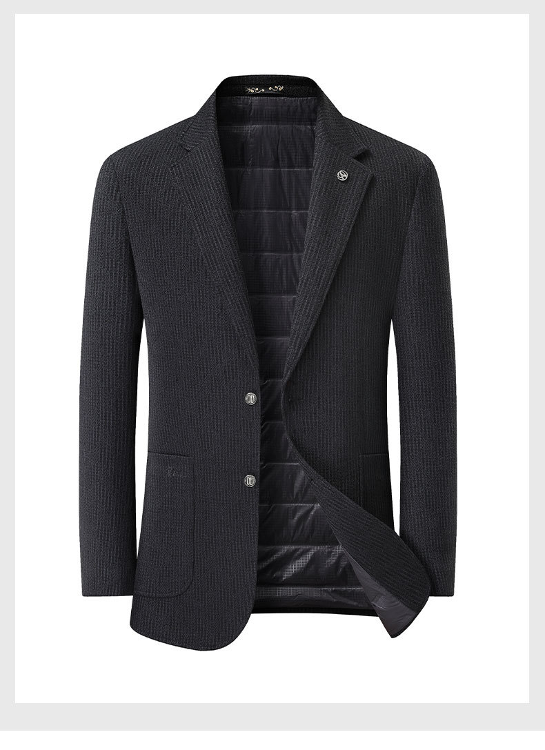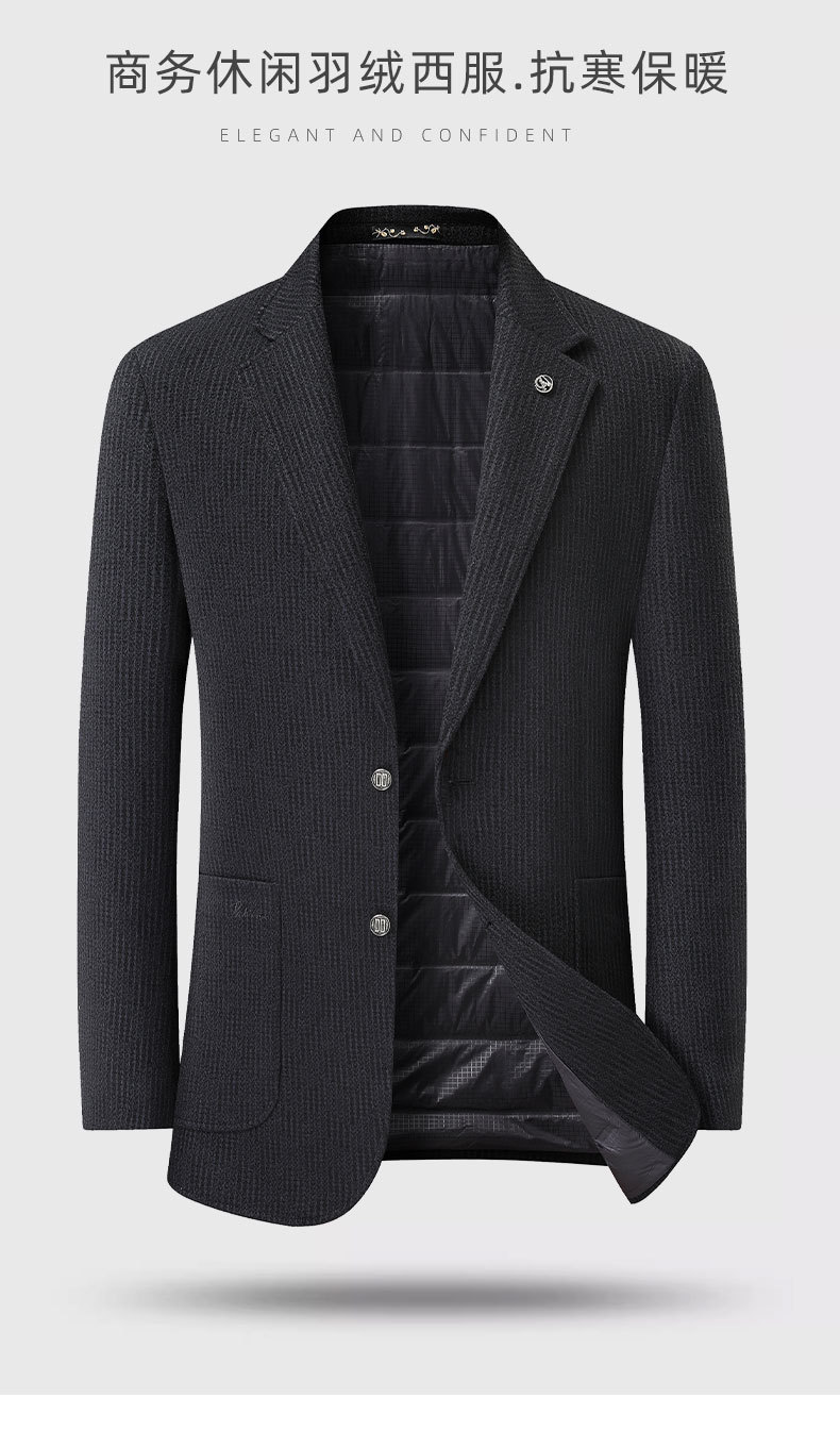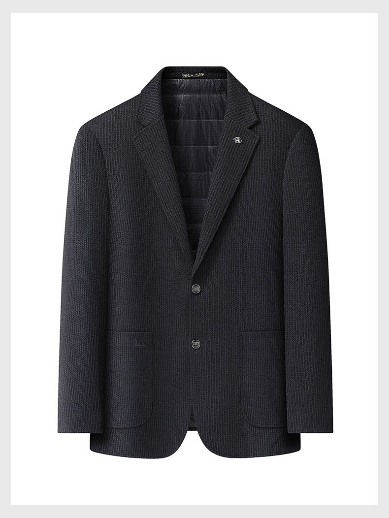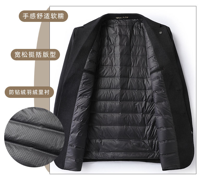 【90白鸭绒】【DDS】大依优型大码男装冬季西装外套羽绒内胆时尚休闲条纹长袖羊毛大衣