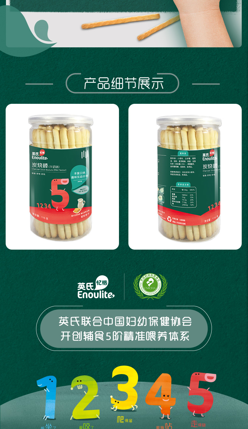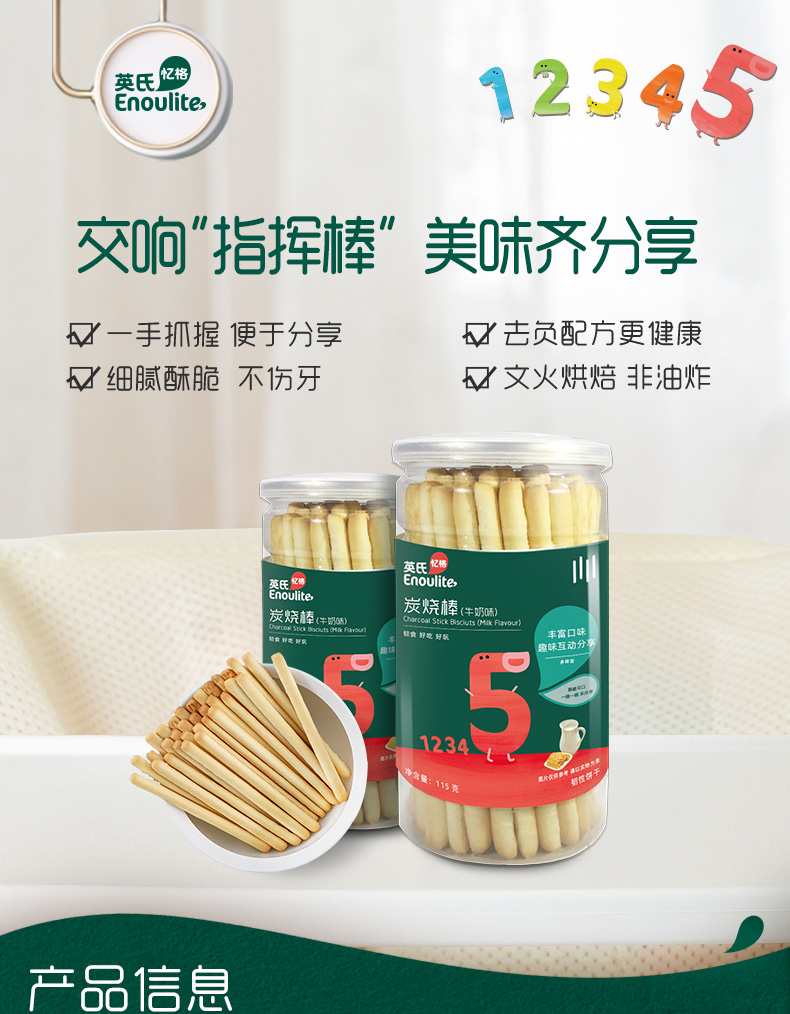 英氏*炭烧棒牛奶味5段115克