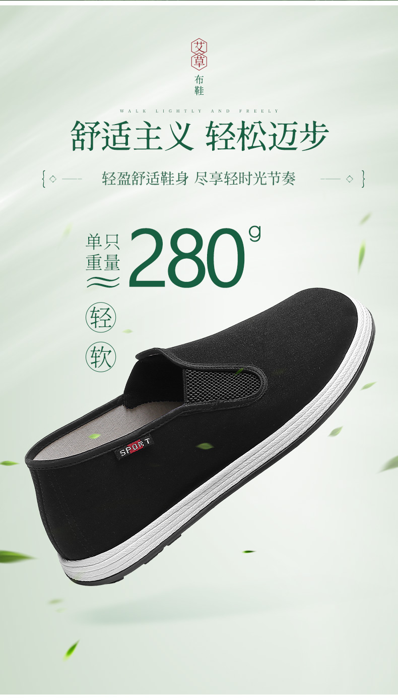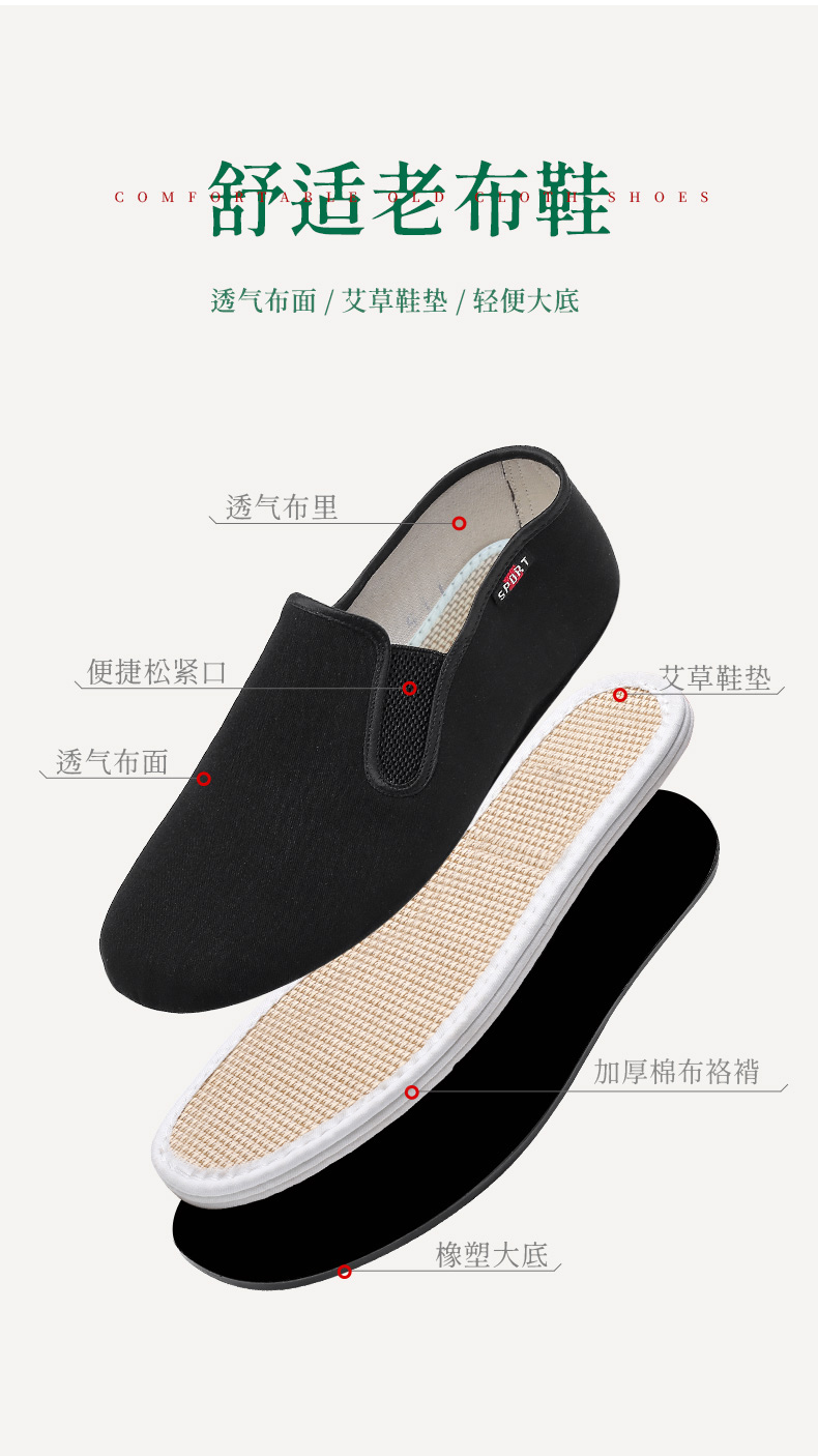 【舒适升级 艾草鞋垫 轻便透气】强人3515老北京艾草布鞋