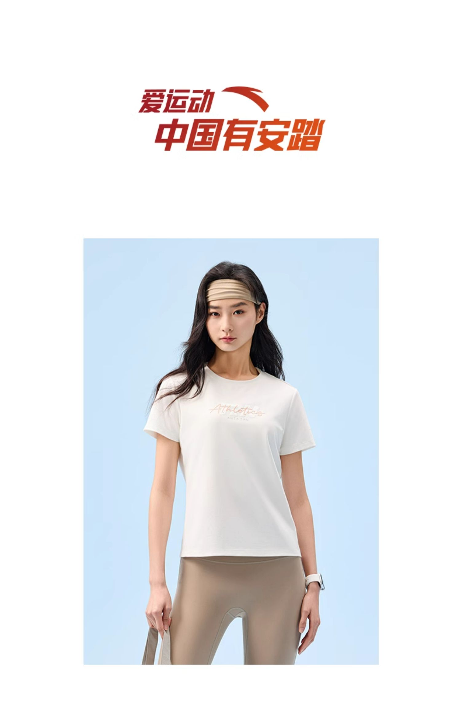 【199任选2件】【张雨霏同款】安踏冰丝T训练短袖女款夏季正肩运动上衣162527124