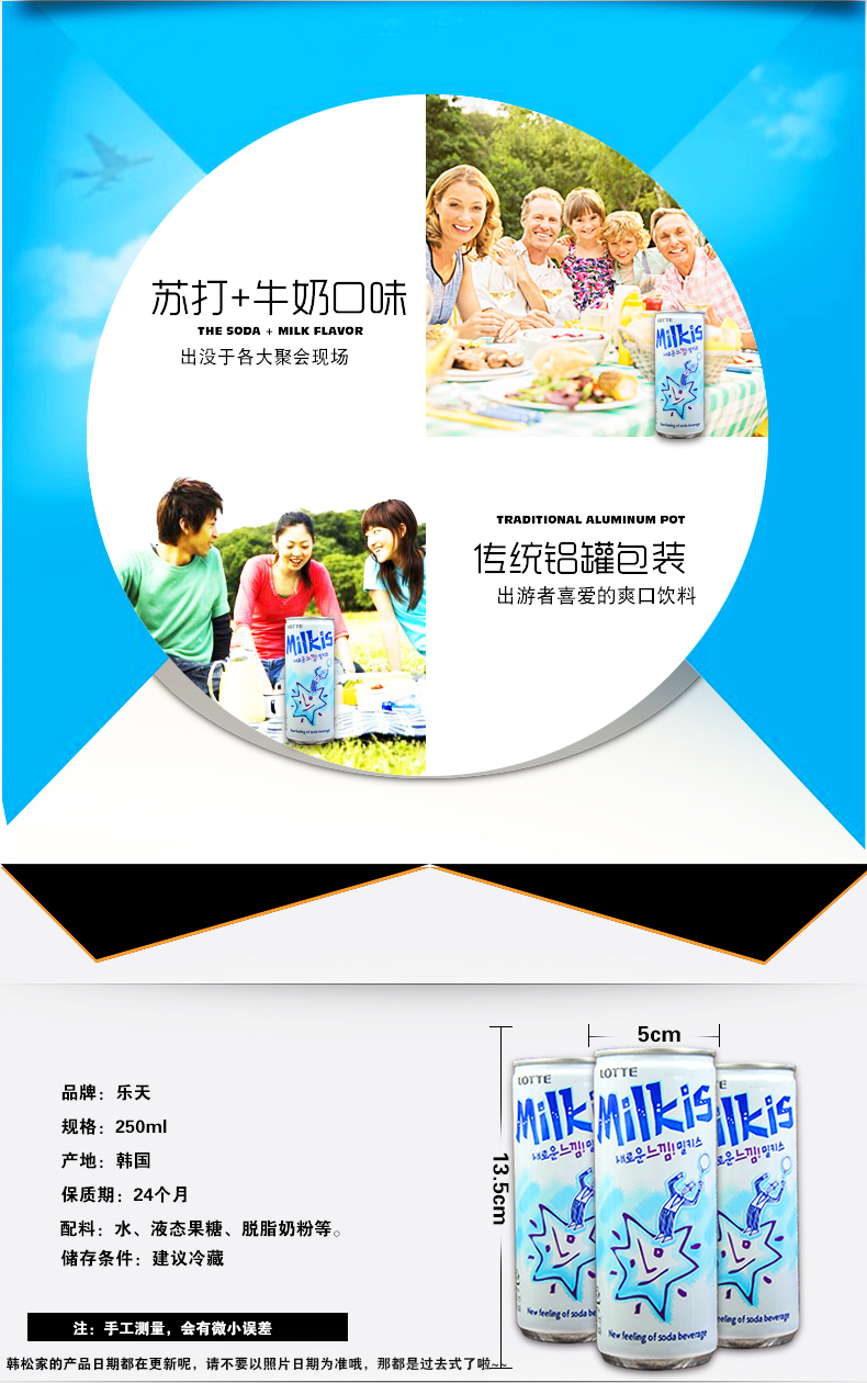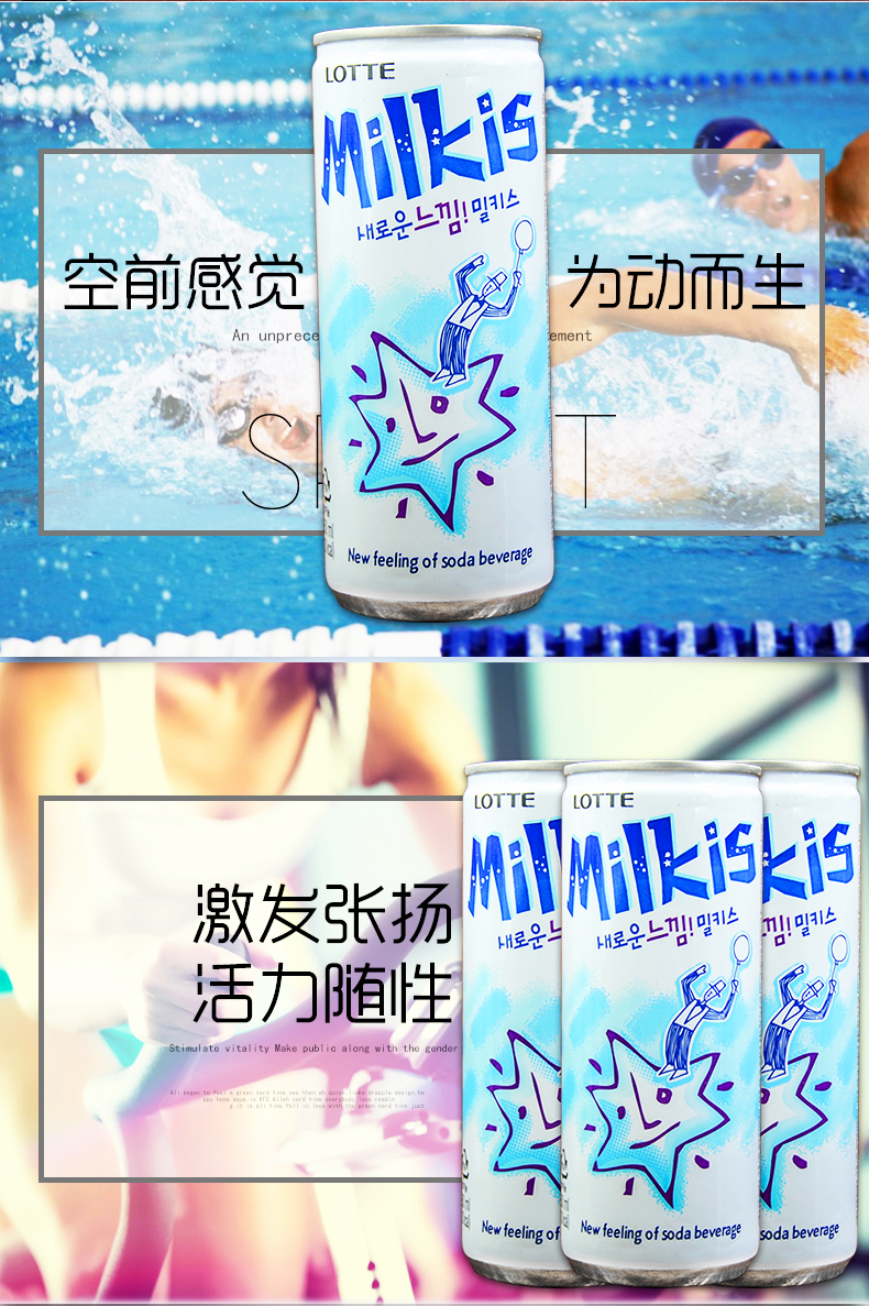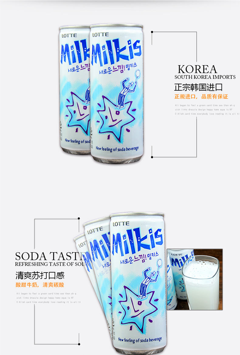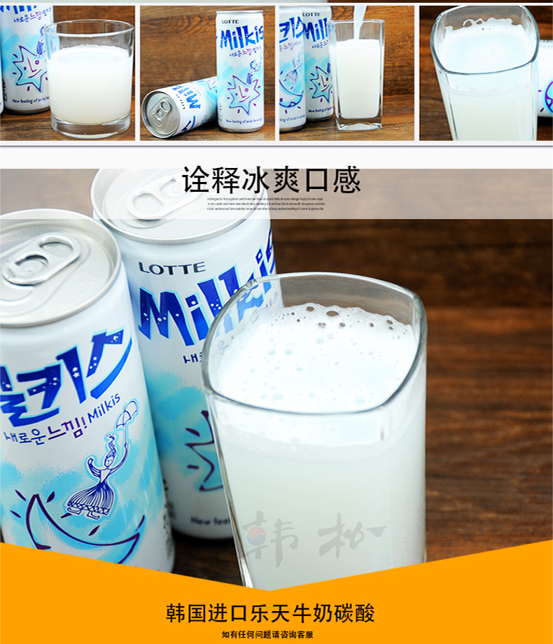 韩国食品进口乐天牛奶碳酸饮料苏打汽水milkis牛奶碳酸饮料 250ml/瓶