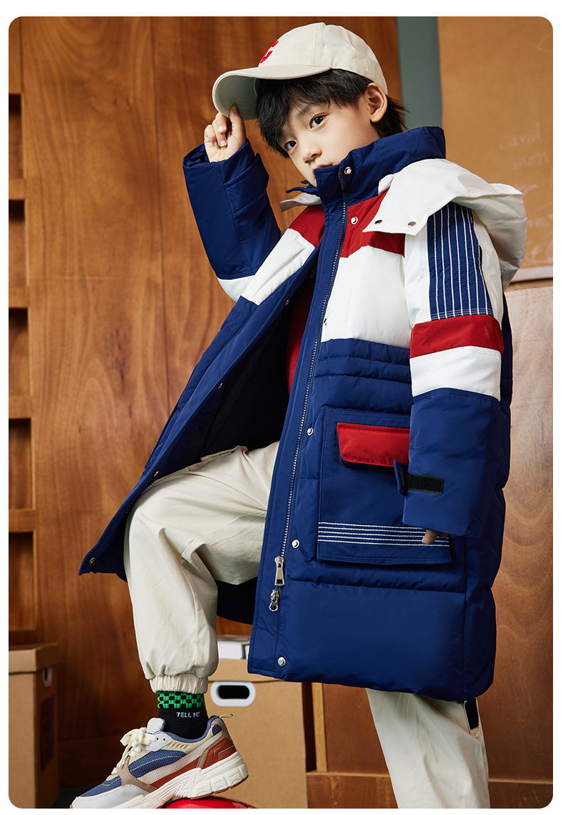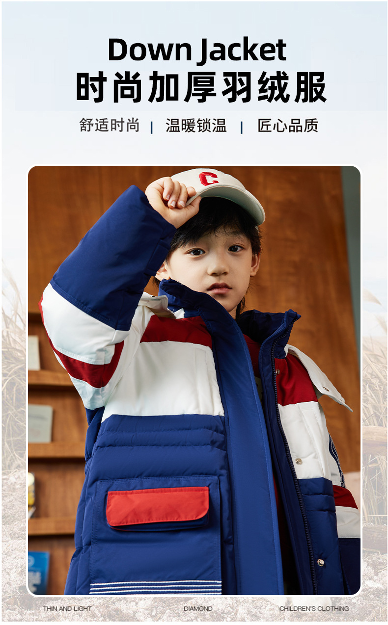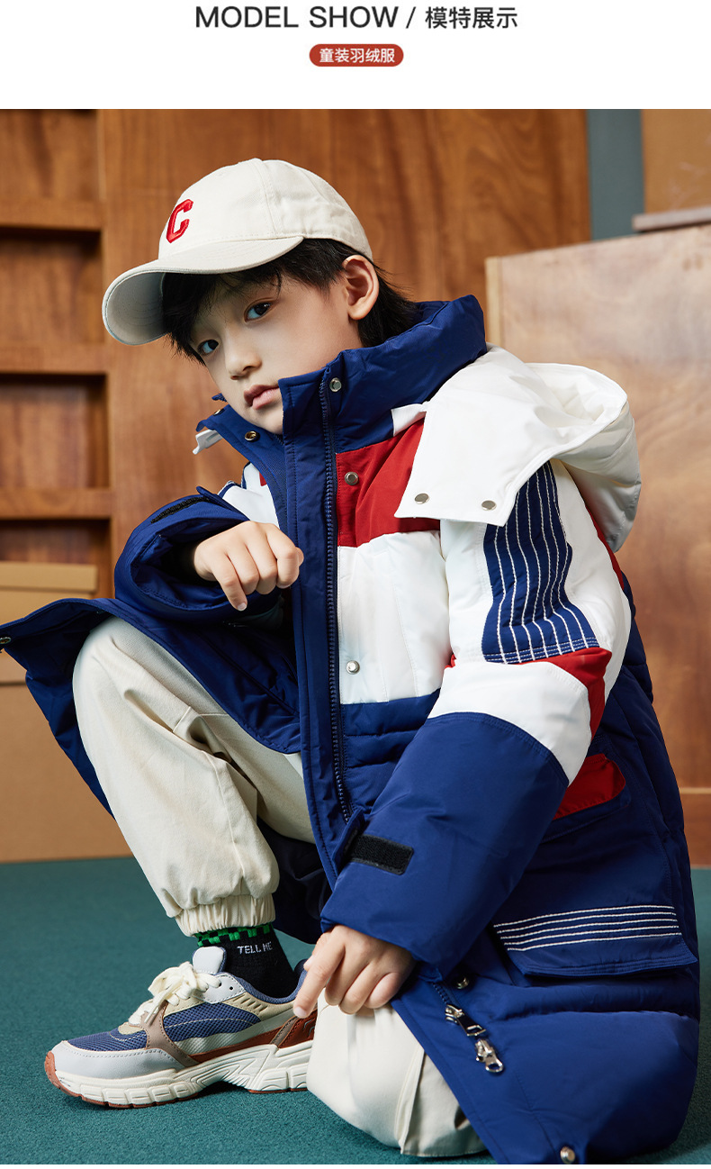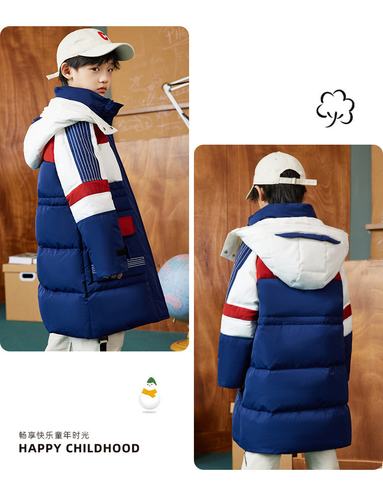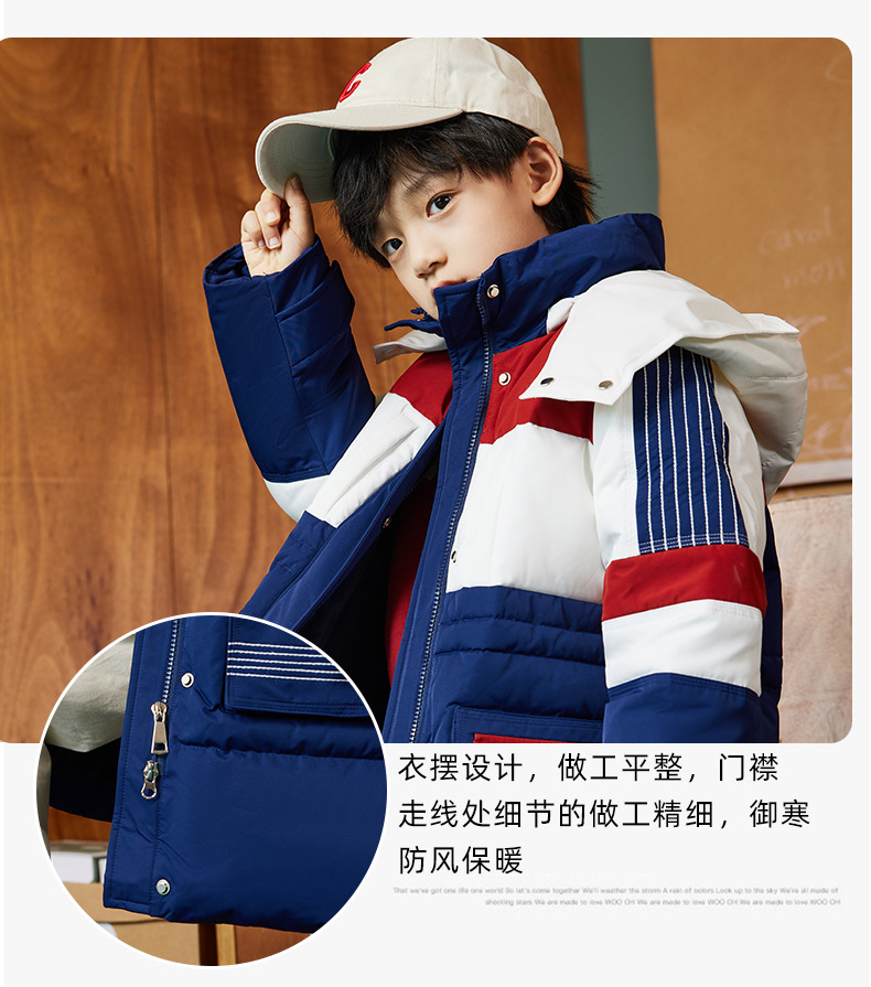 XBB-9597儿童羽绒服男童中大童帅气工装外套冬装新款童装女童中长款厚