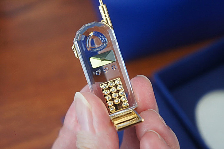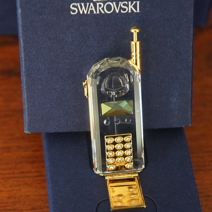 国内现货 施华洛世奇 翻盖手机摆件 253448蓝盒 金色追忆系列