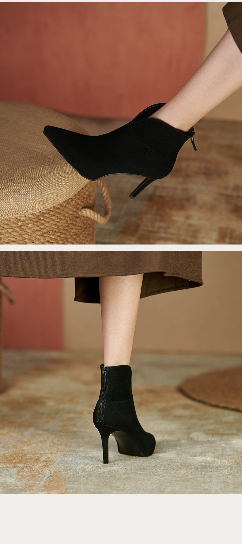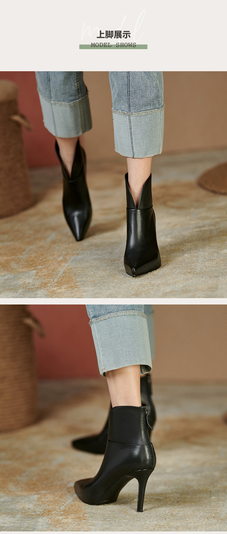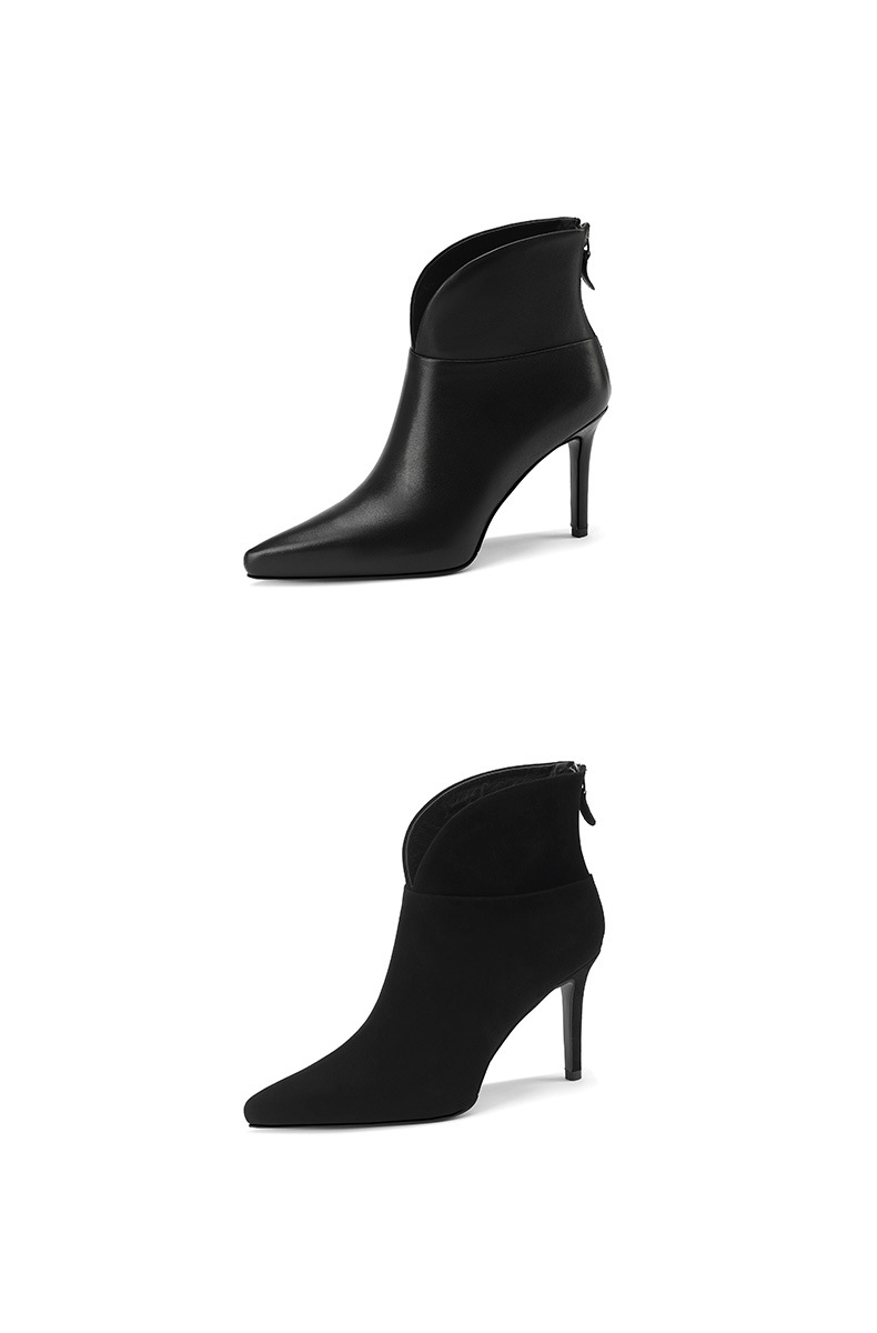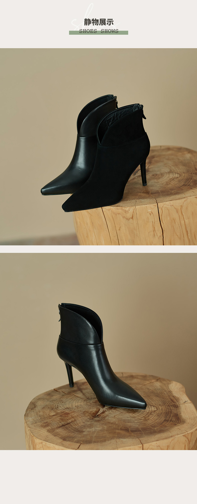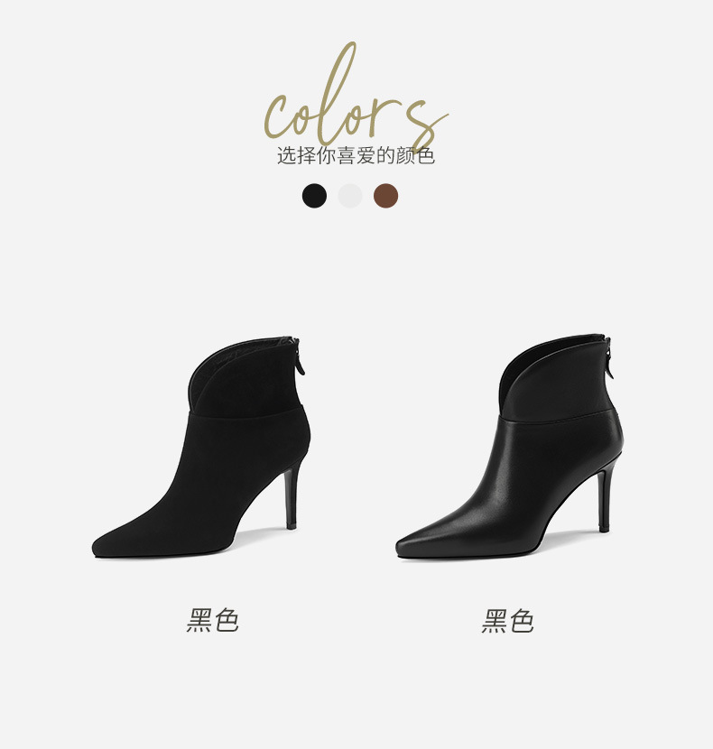 KBY-ZFA657细跟尖头短靴女黑色马丁靴