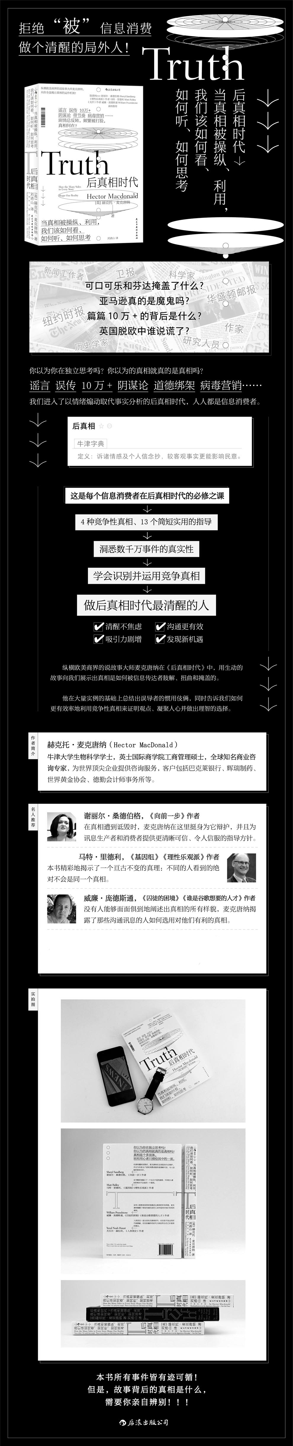 ◎真相是个多面体,别有用心者只描绘其中的一面,因而我们必须擦亮双眼,看清真相如何被别有用心者挑选、加工和塑造。在本书中,纵横欧美商界的说故事大师麦克唐纳将分四个大类逐一剖析信息传播者处理真相的伎俩,帮助我们成为后真相时代清醒的局内人。