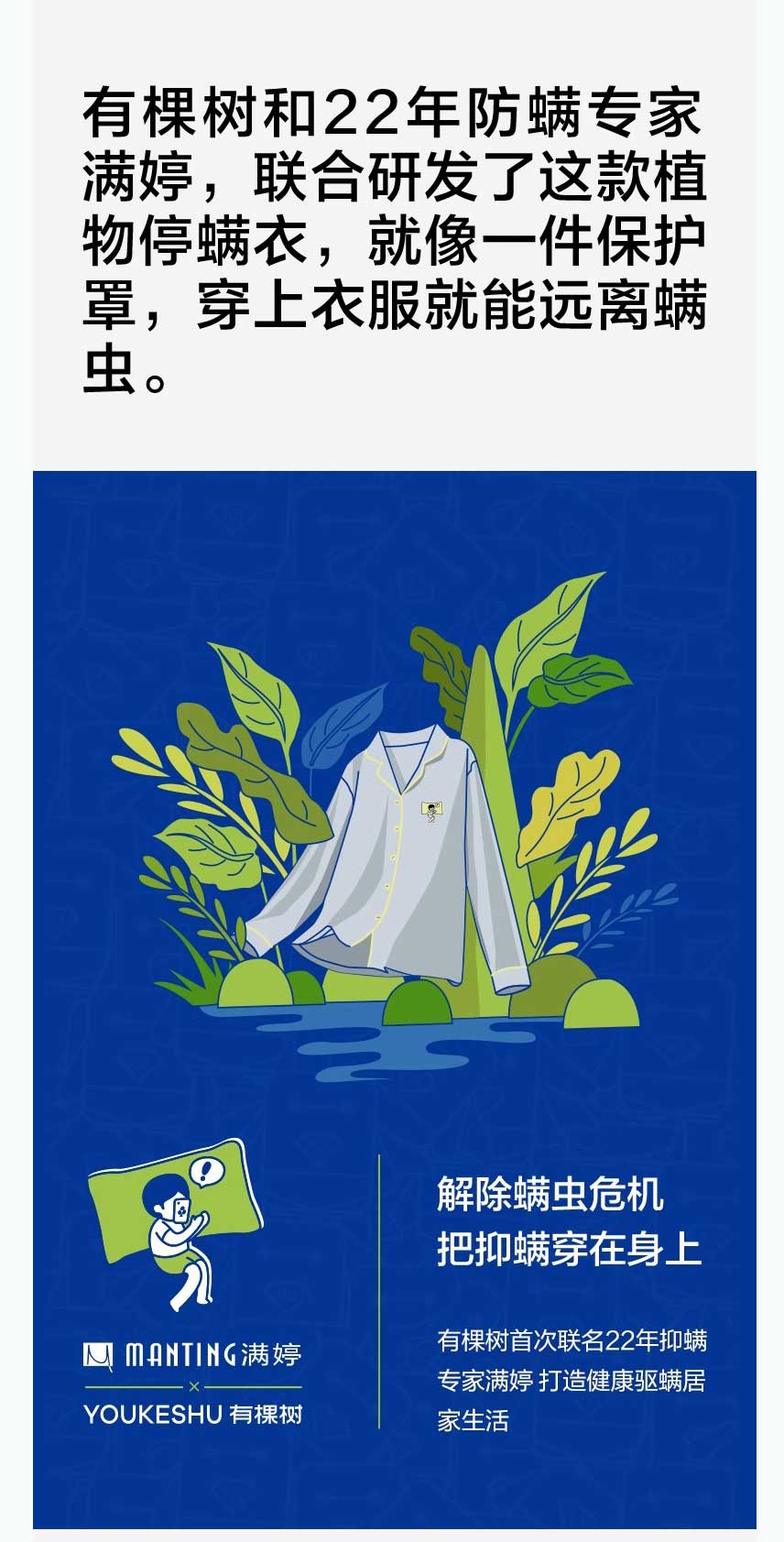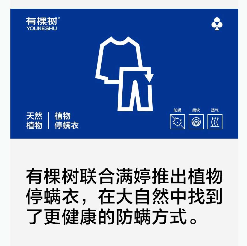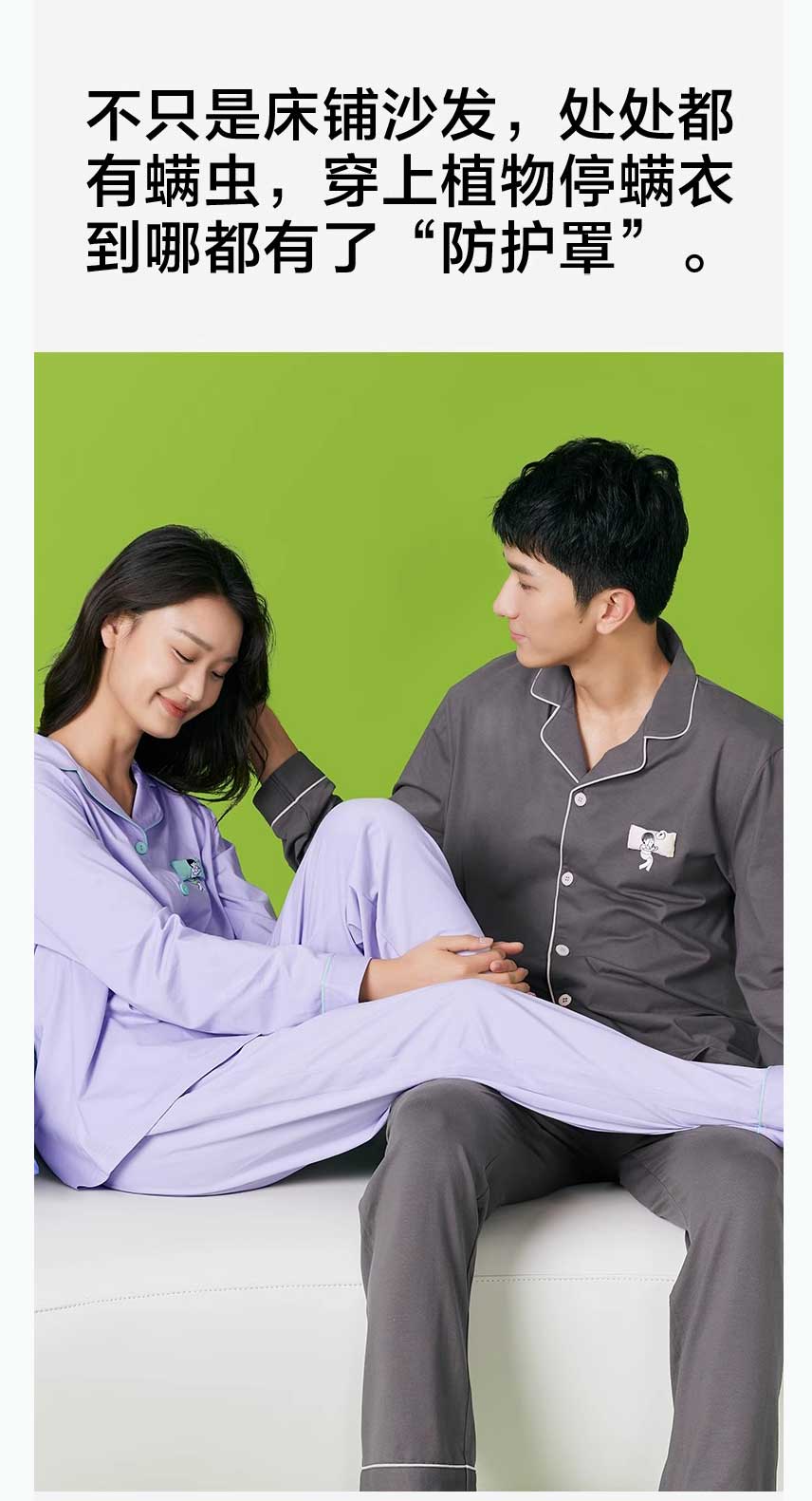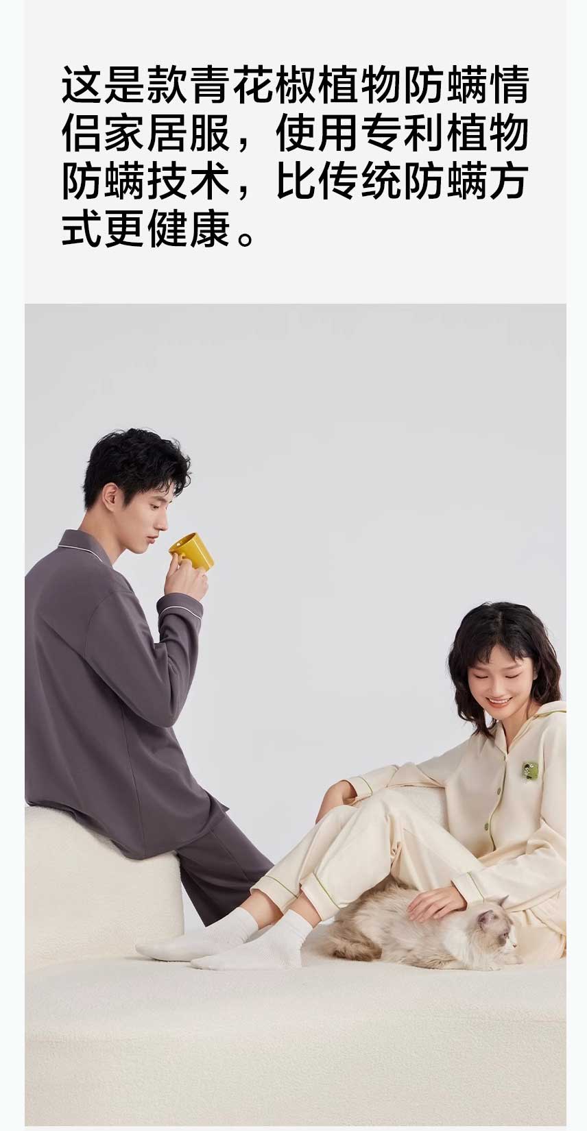 热销【有棵树】成毅同款 植物停螨衣 情侣款家居服(女款YFPJ1002男款YFMP1002)
