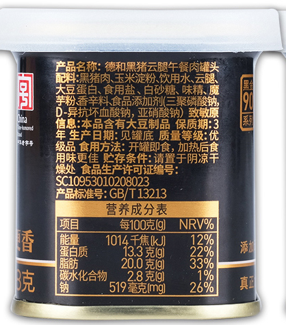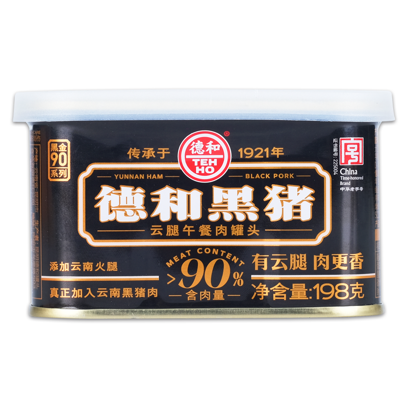 【一诺形体】德和午餐肉 黑猪云腿午餐肉198g/罐*3 火锅三明治早餐方便面#午餐肉