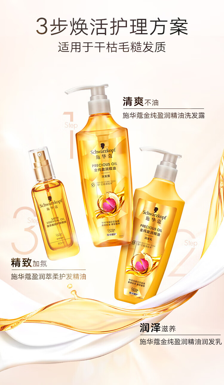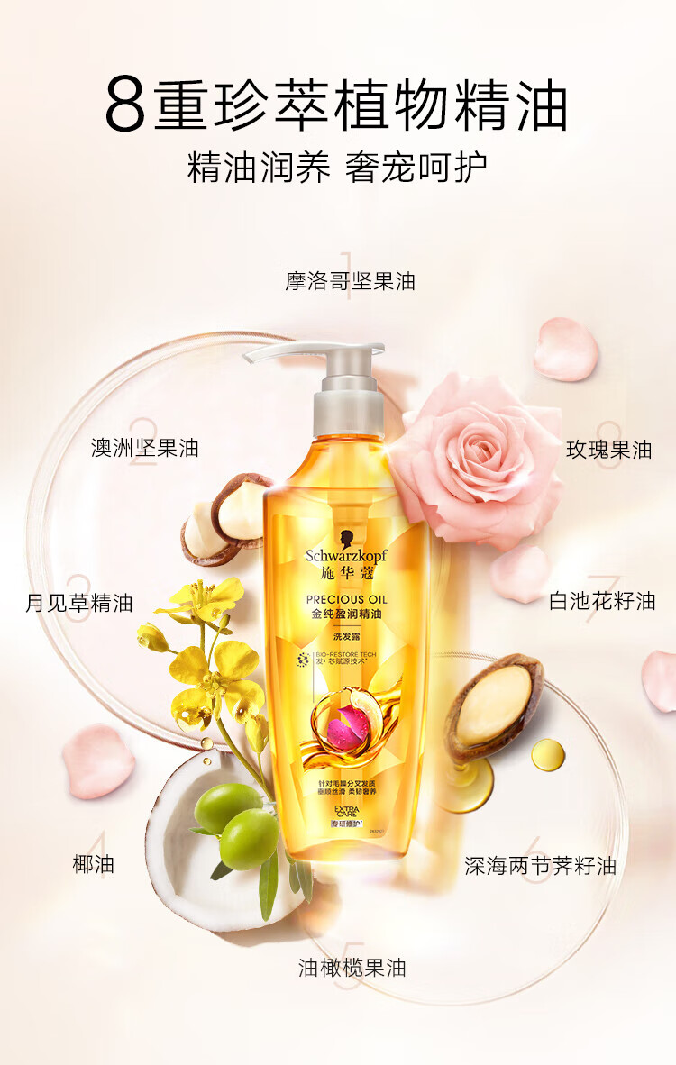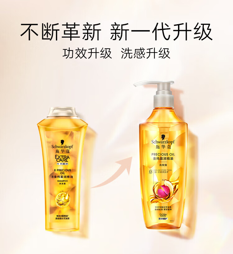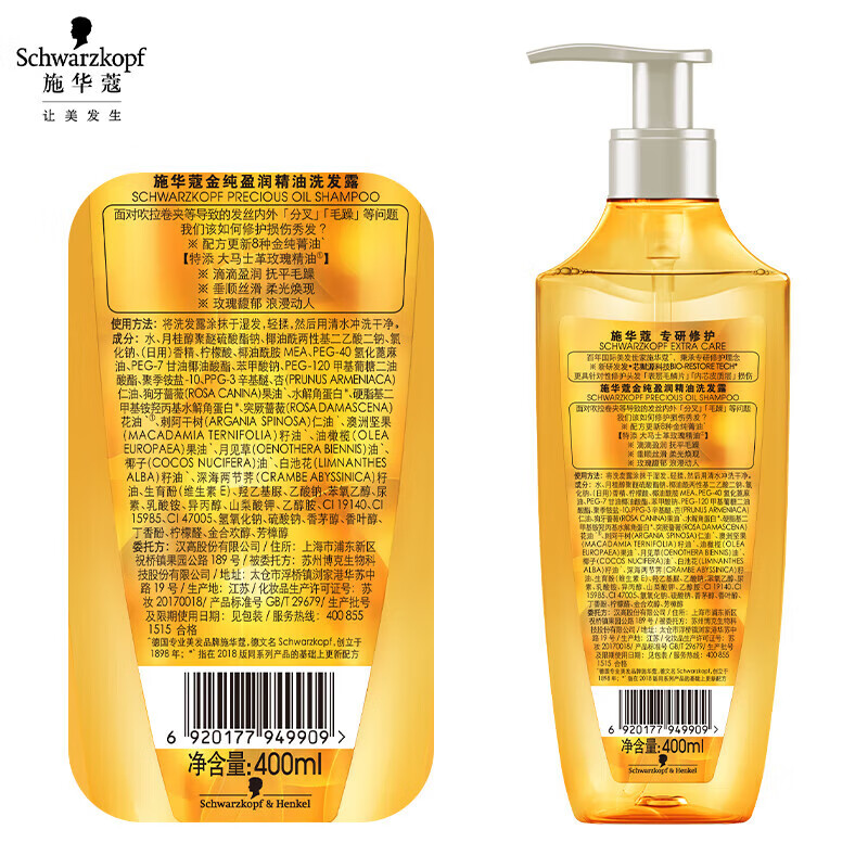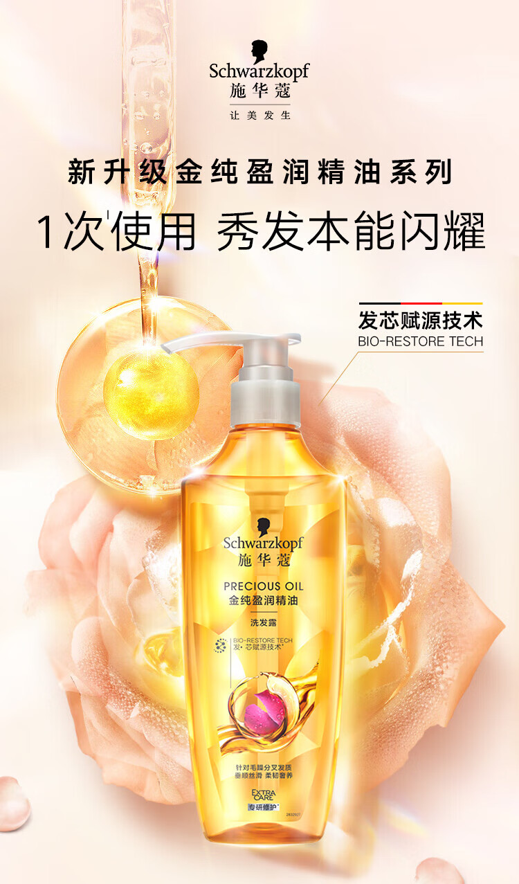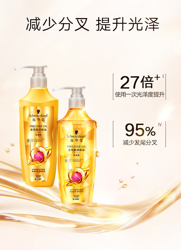 施华蔻金纯盈润精油洗发露400ml+60ml旅行装(香型随机)