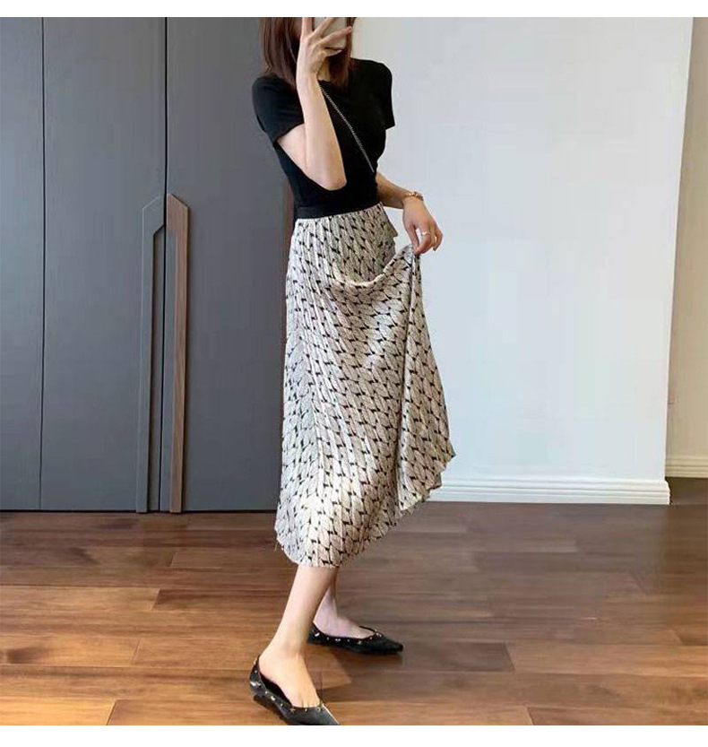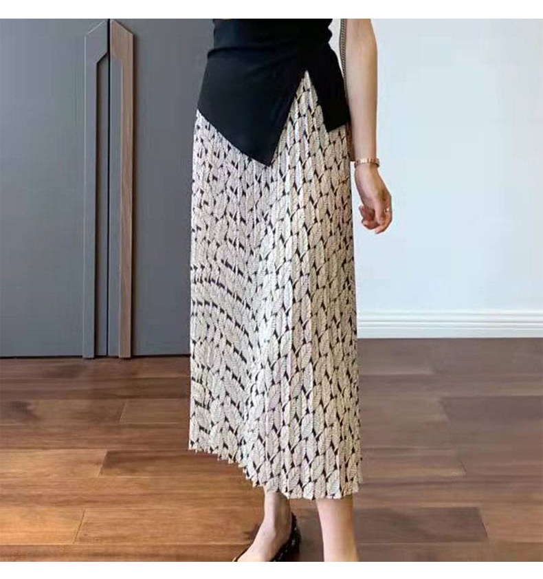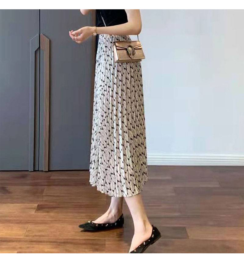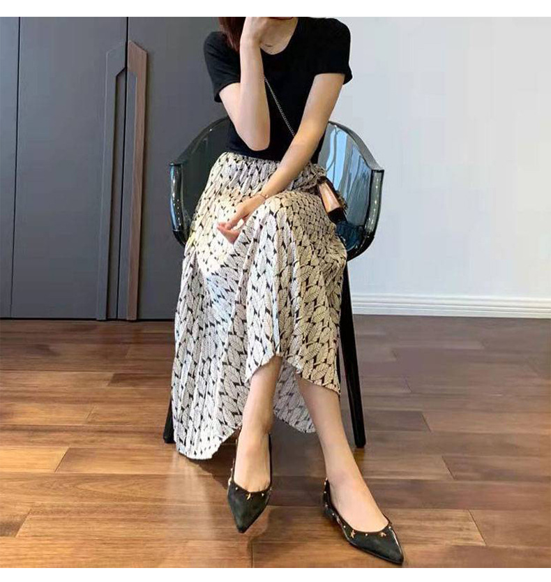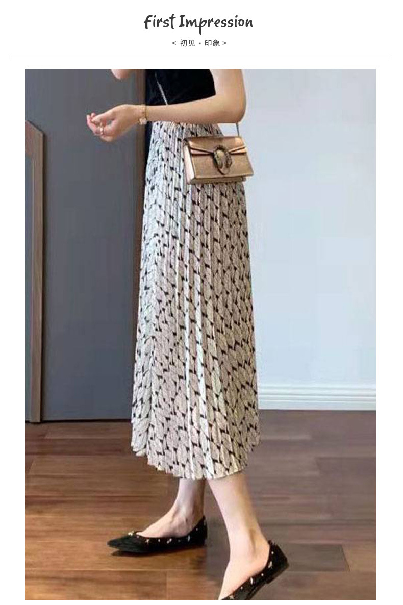 丁摩 温柔风碎花百褶高腰a字显瘦半身裙子女春夏新款气质中长裙5ZF-9635