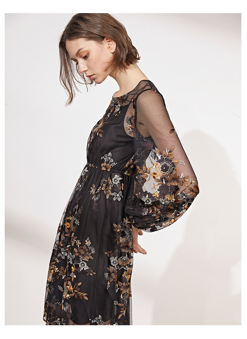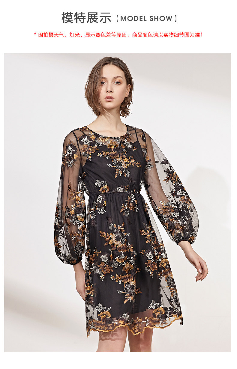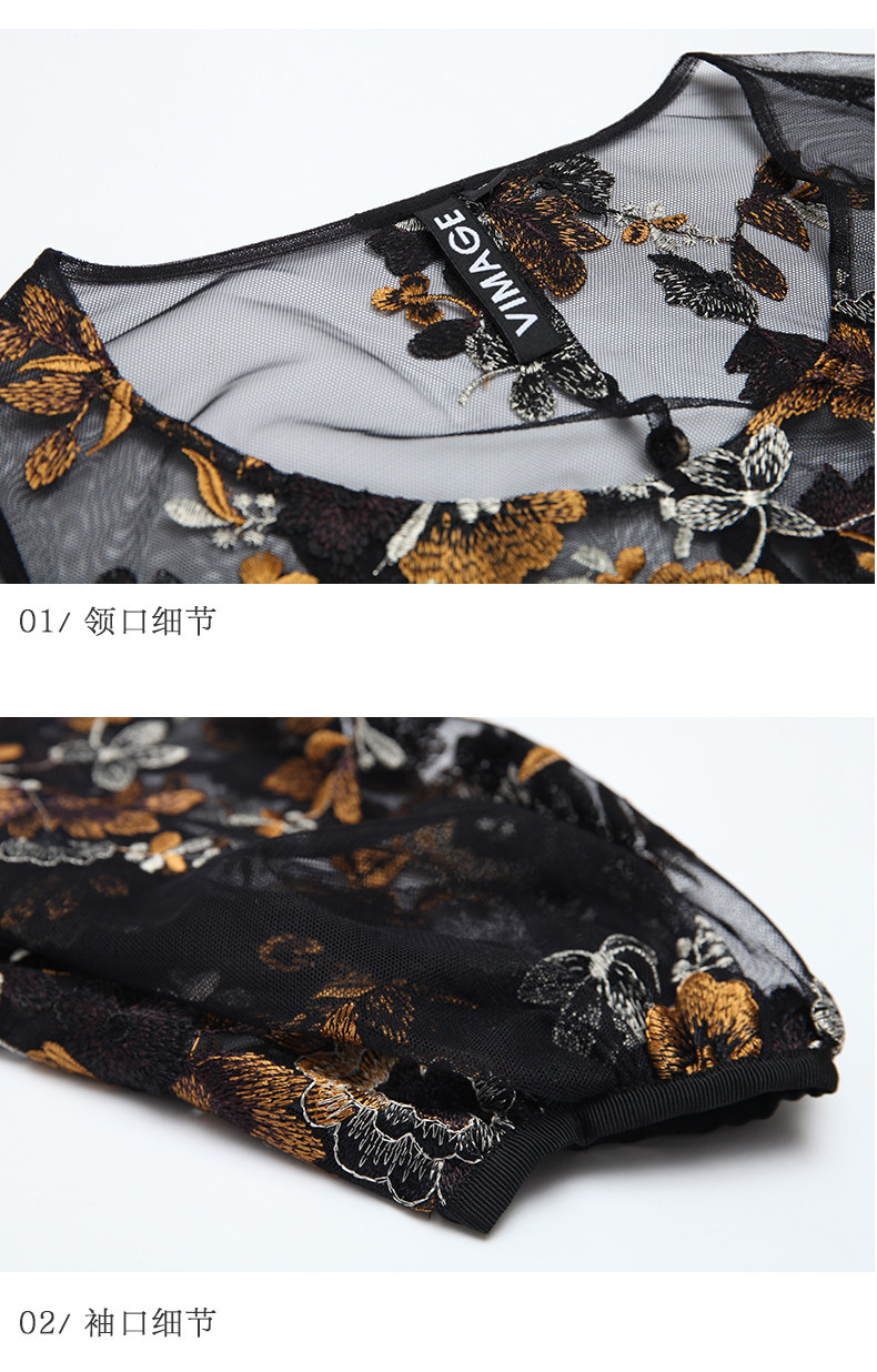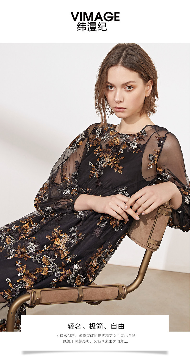 VIMAGE纬漫纪春装款女高腰长袖网纱蕾丝很仙的法国小众连衣裙V1107703