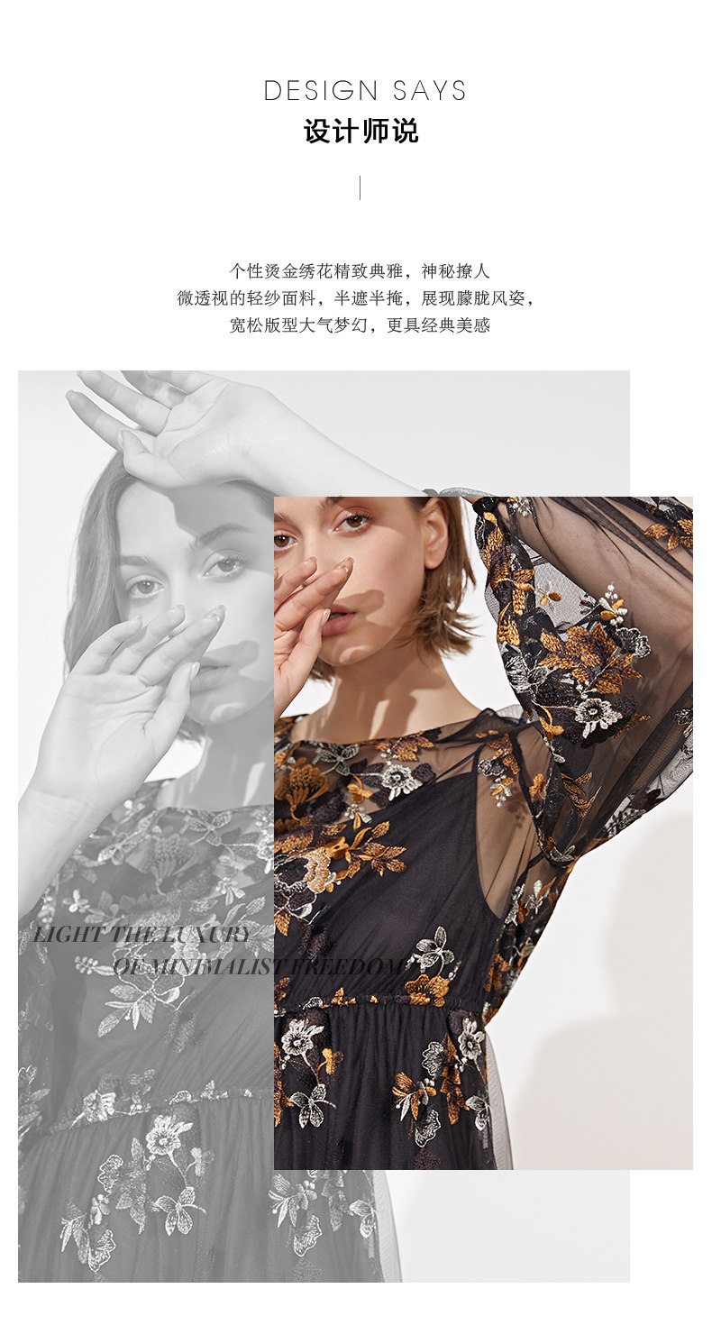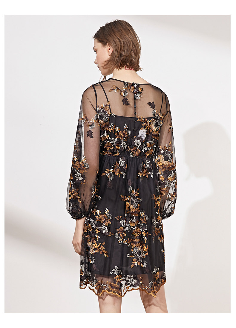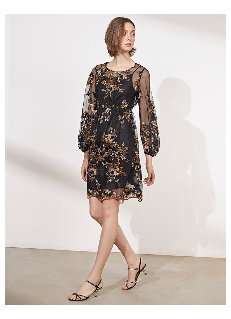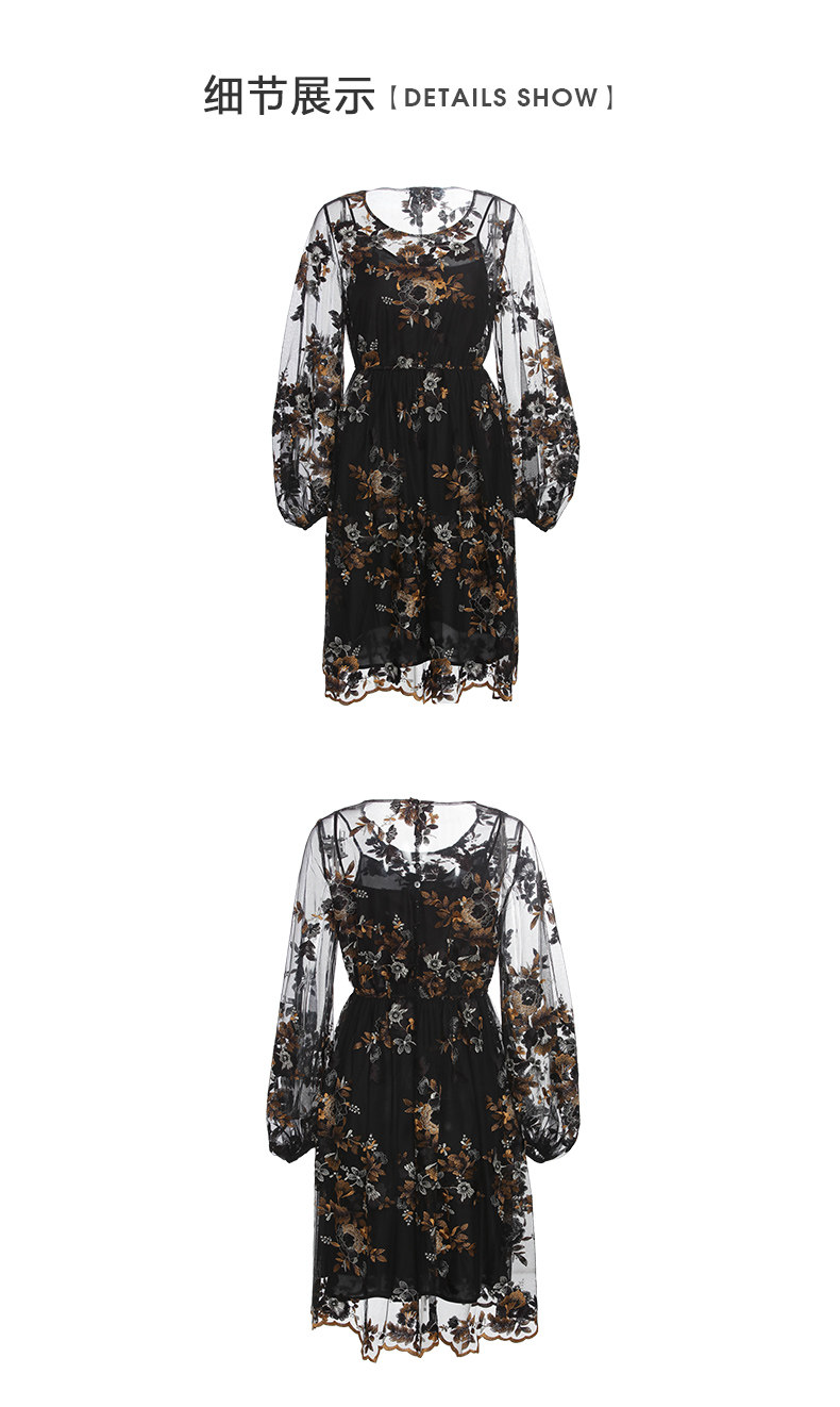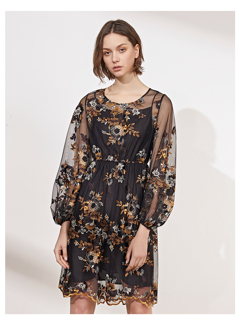 VIMAGE纬漫纪春装款女高腰长袖网纱蕾丝很仙的法国小众连衣裙V1107703
