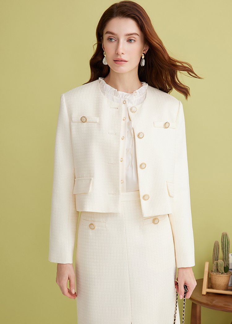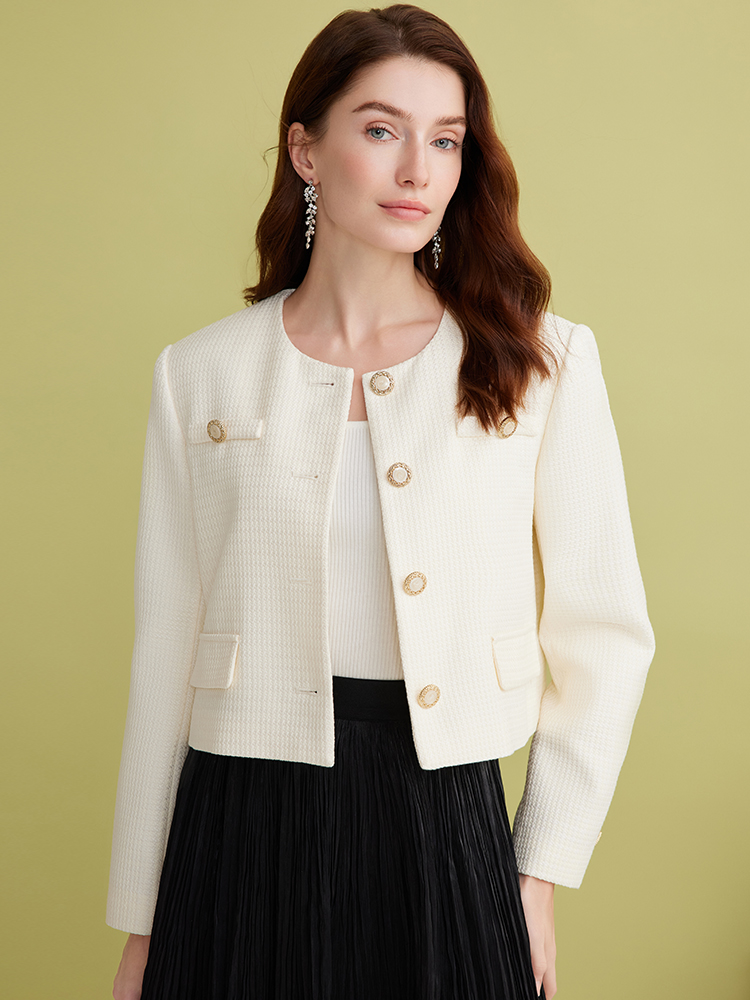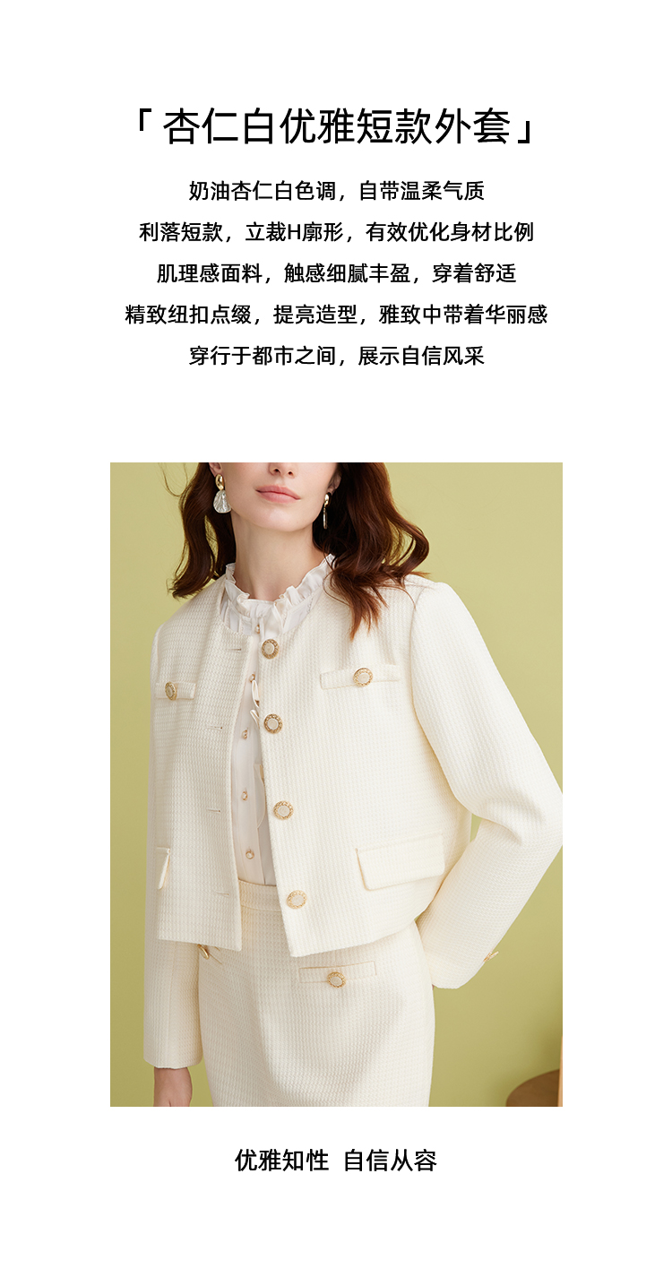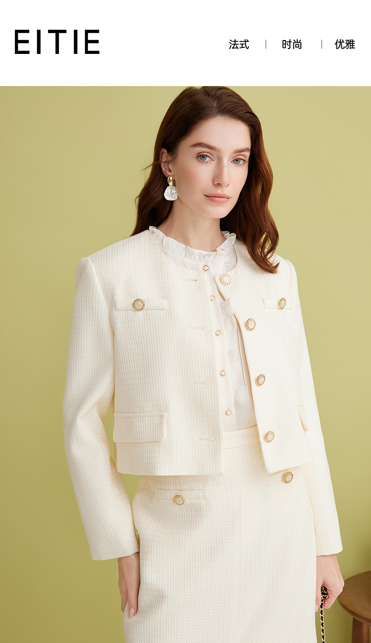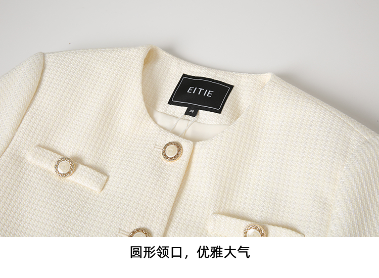 EITIE爱特爱气质圆领经典小香风直筒短款显瘦外套2025春季新款A2503505