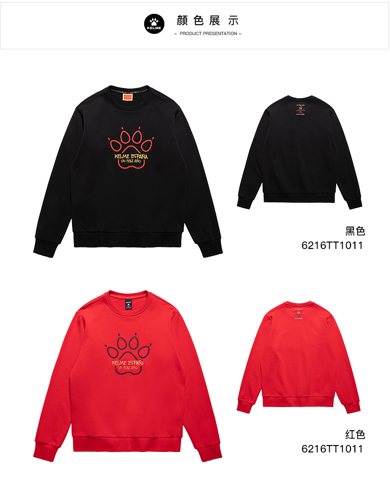 卡尔美卫衣男五福临门新年情侣圆领新年运动套头衫