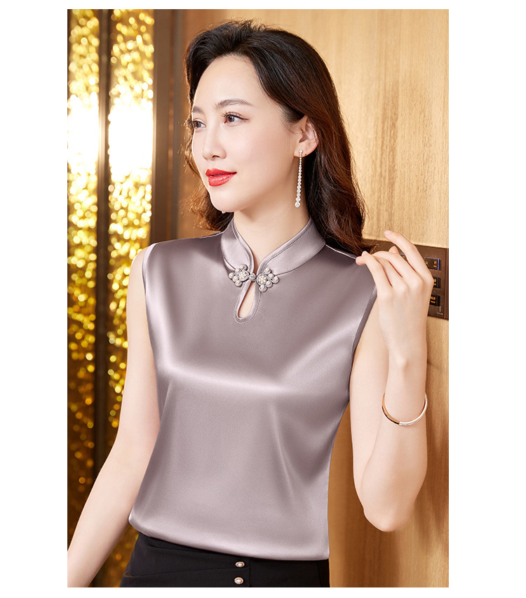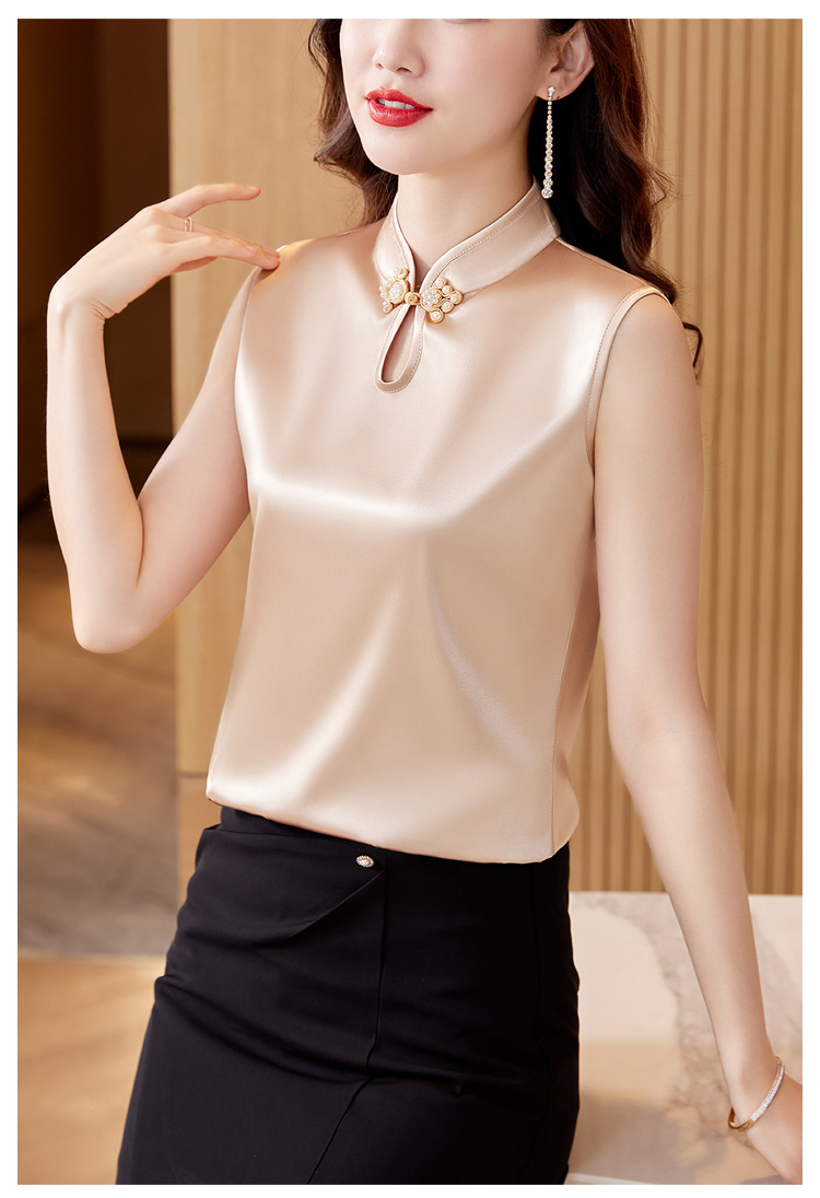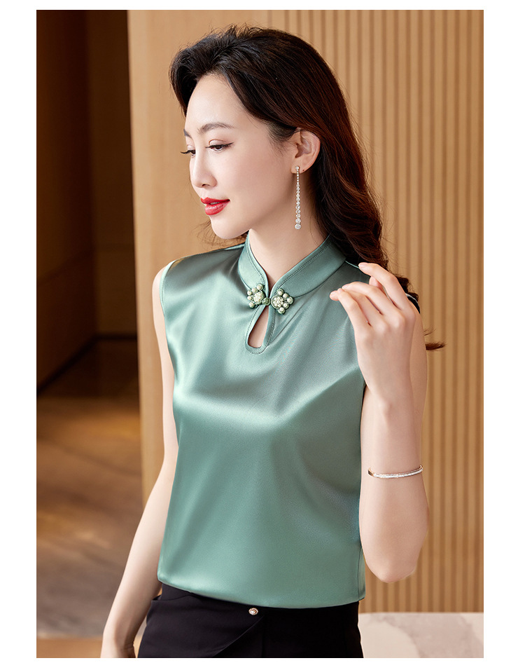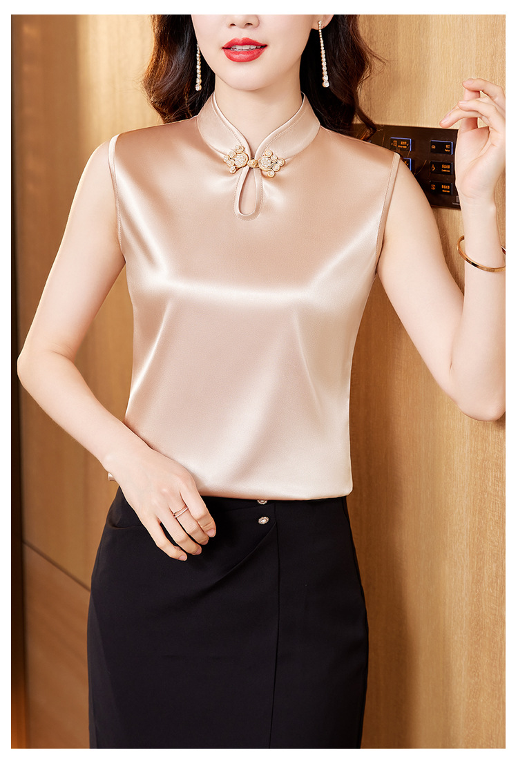 弹力缎面修身显瘦小背心复古盘扣内搭K-402H3215