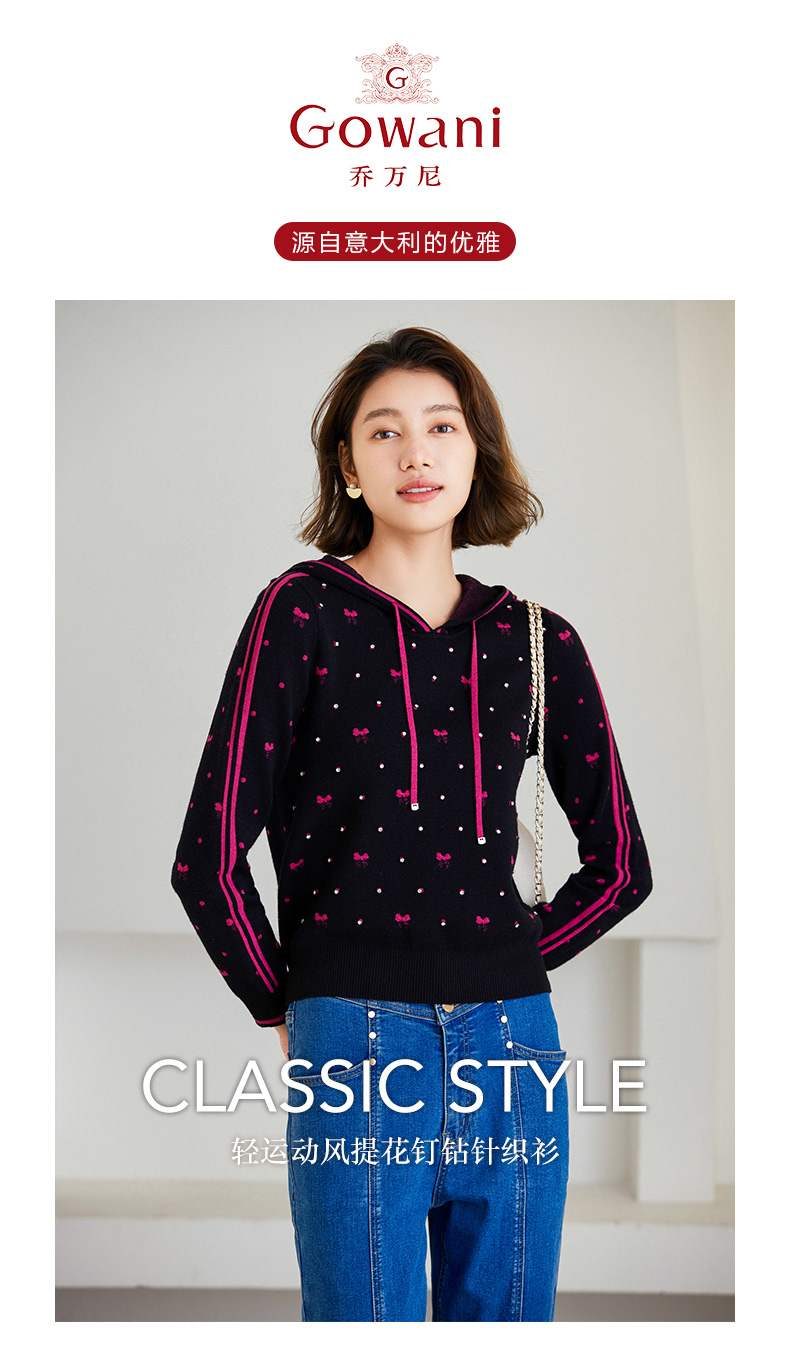 乔万尼冬款绵羊毛针织衫休闲连帽设计上衣ET4M947