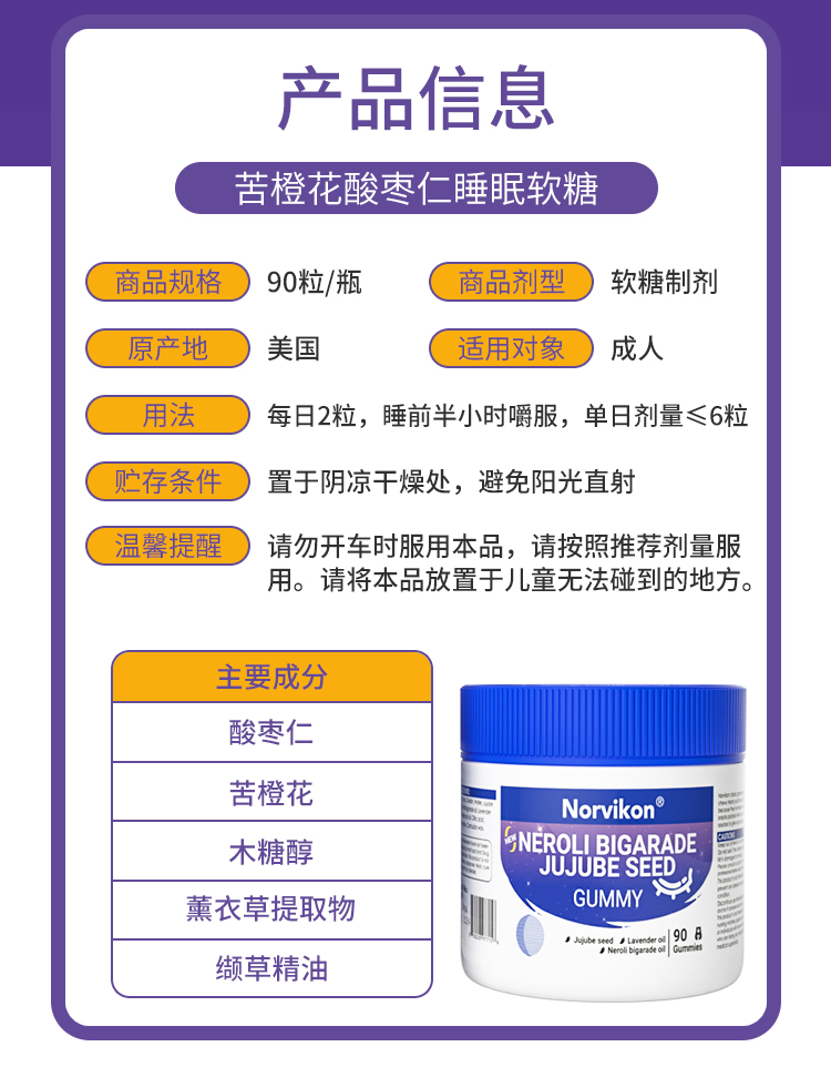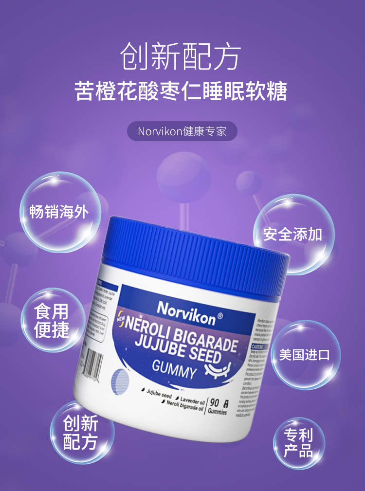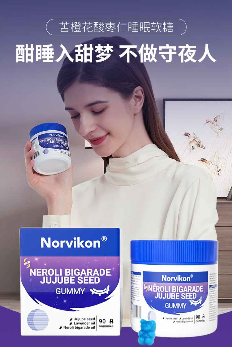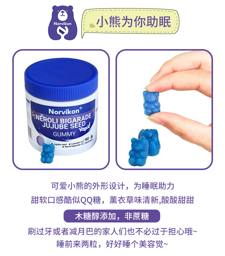【美国睡眠好物拍2罐送79元LOFR口气珠】Norvikon苦橙花酸枣仁小熊睡眠软糖90粒/瓶