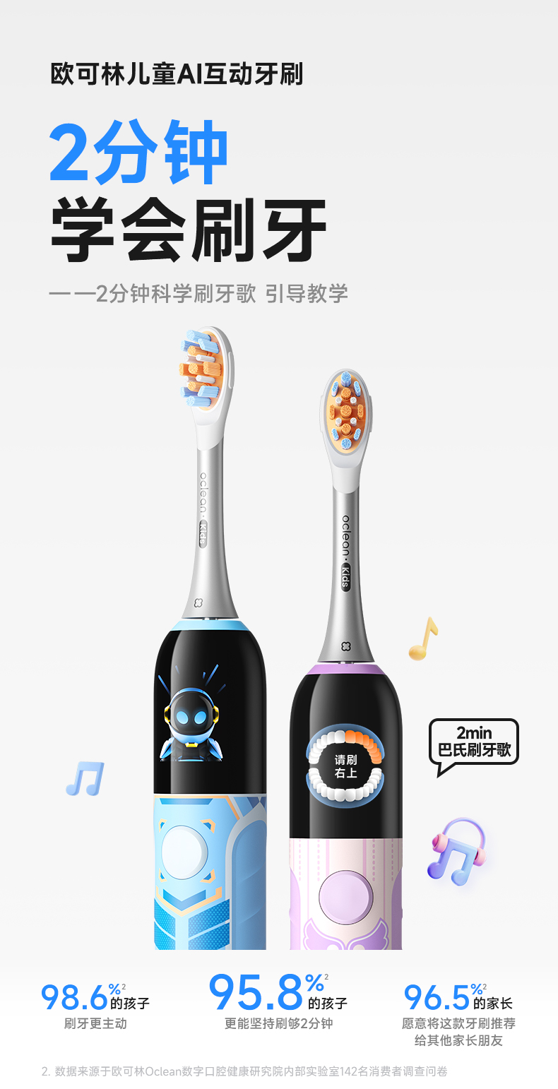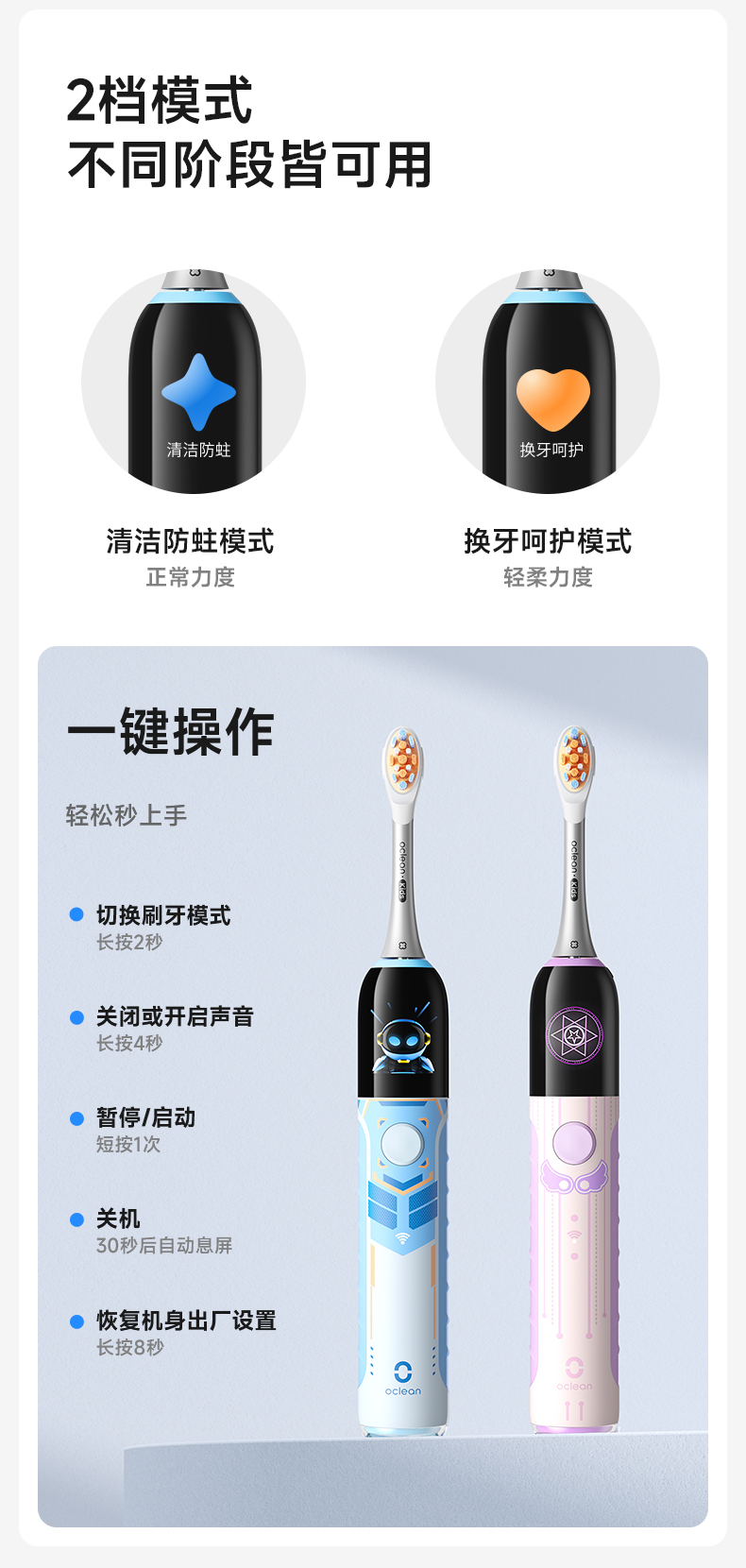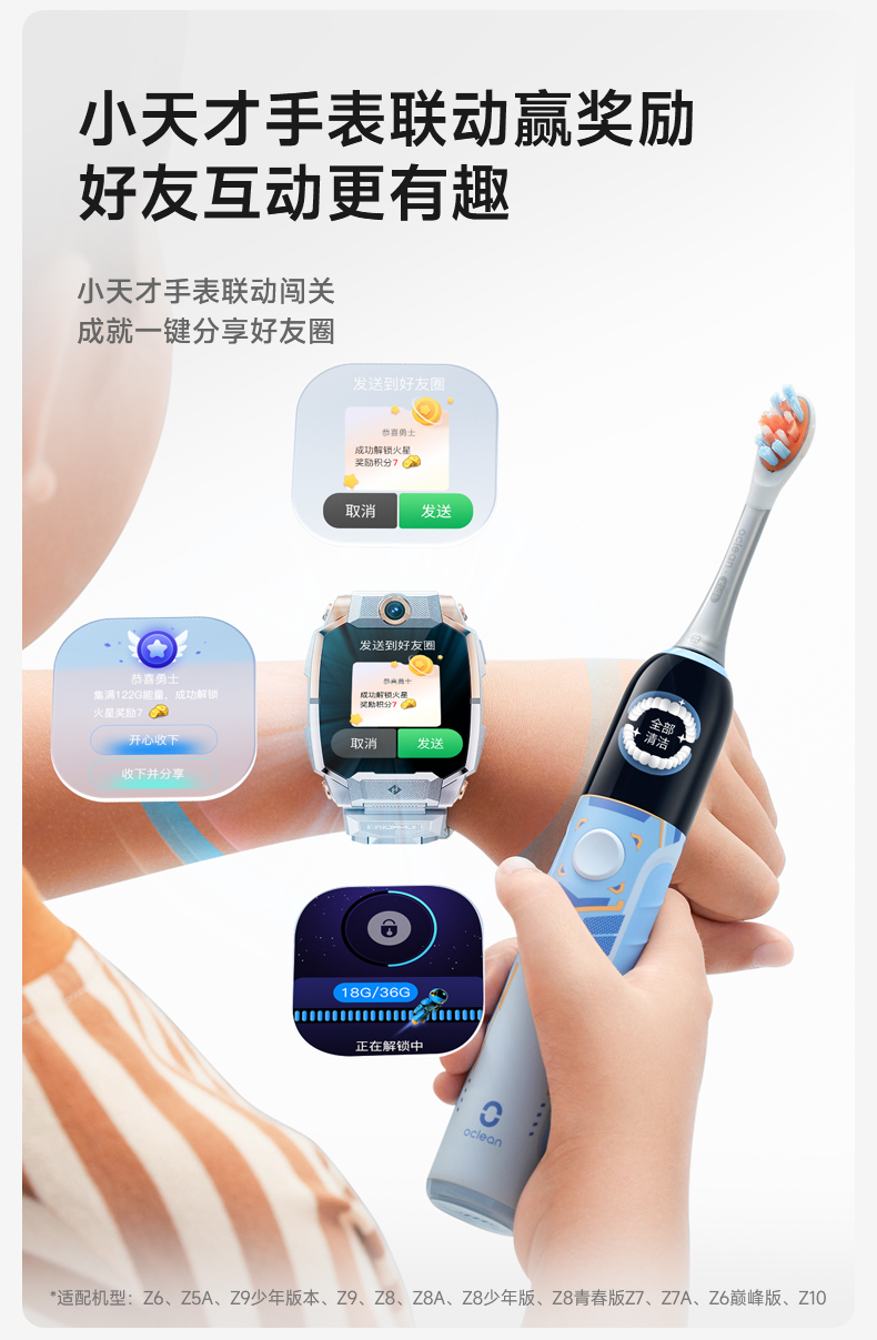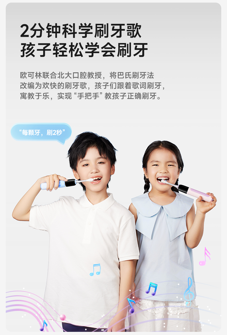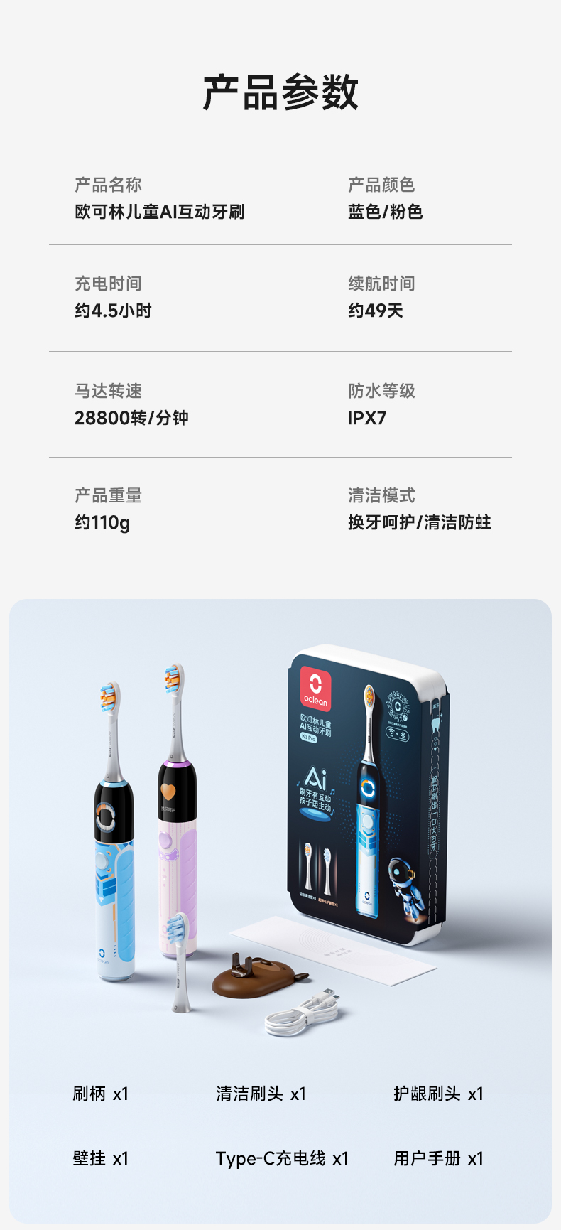 【专享】Oclean欧可林儿童AI互动电动牙刷视听闯关音乐勇士刷防水K3 Pro