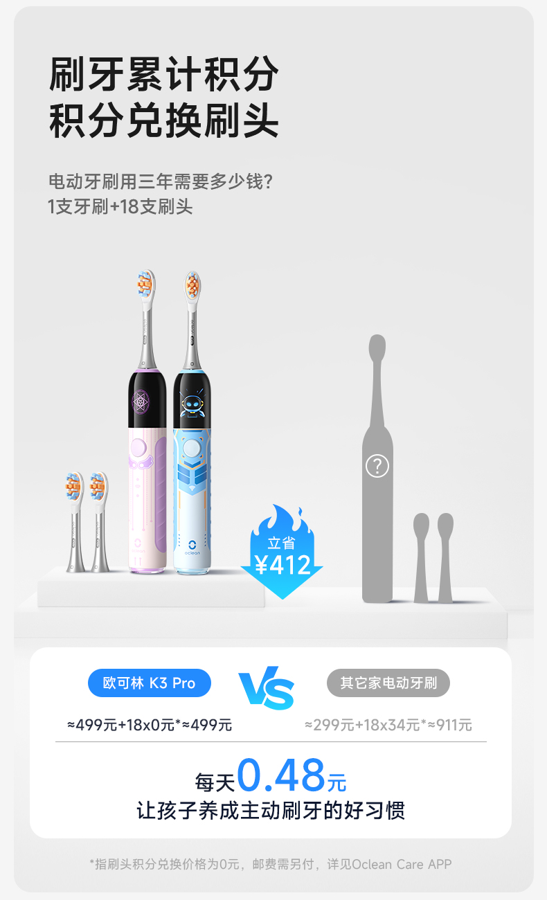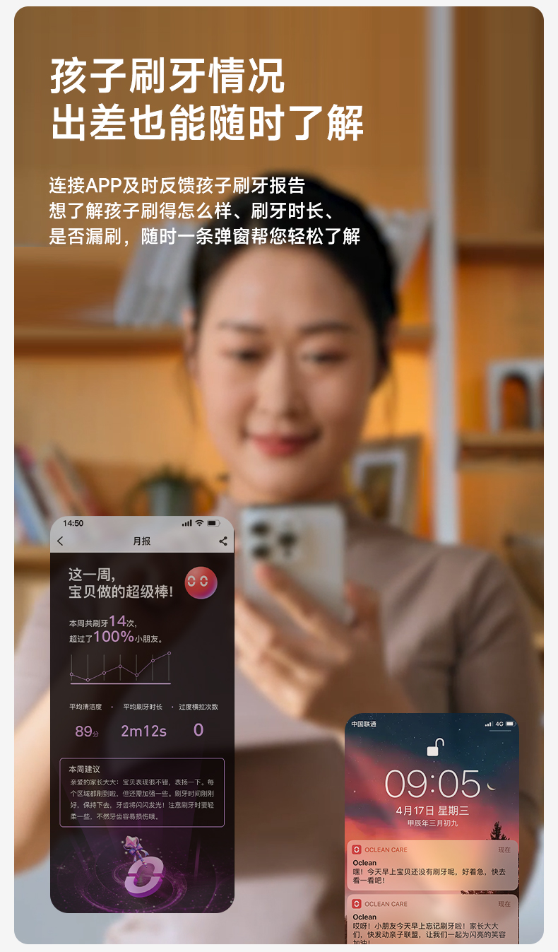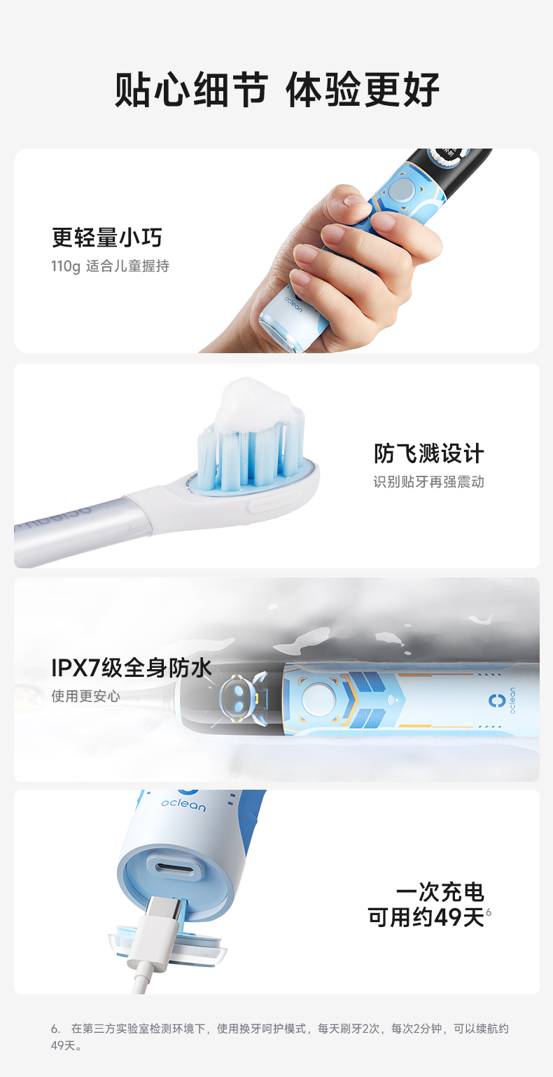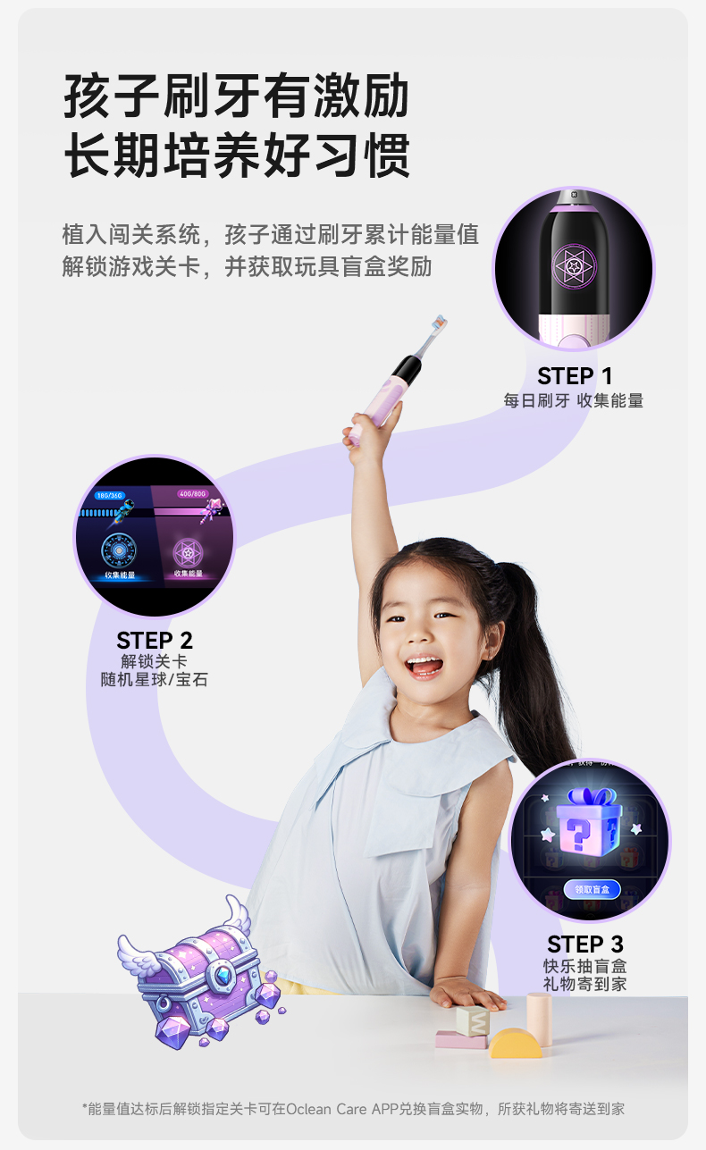 【专享】Oclean欧可林儿童AI互动电动牙刷视听闯关音乐勇士刷防水K3 Pro