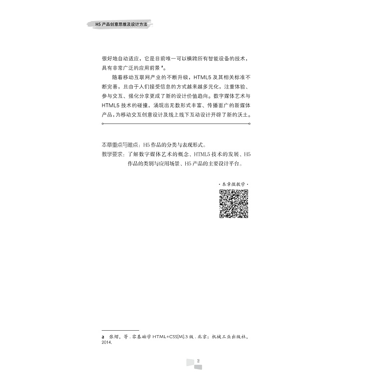 本书基于移动端产品开发的基础理论,结合实际案例,主要介绍移 动端产品的发展、产品创新类形与形式、移动端产品的开发流程、H5产 品开发思维及方法、H5产品策划路径、H5平台的选用与种类、H5视觉 设计、动效与交互设计,H5音效编辑及H5的运营与推广等。