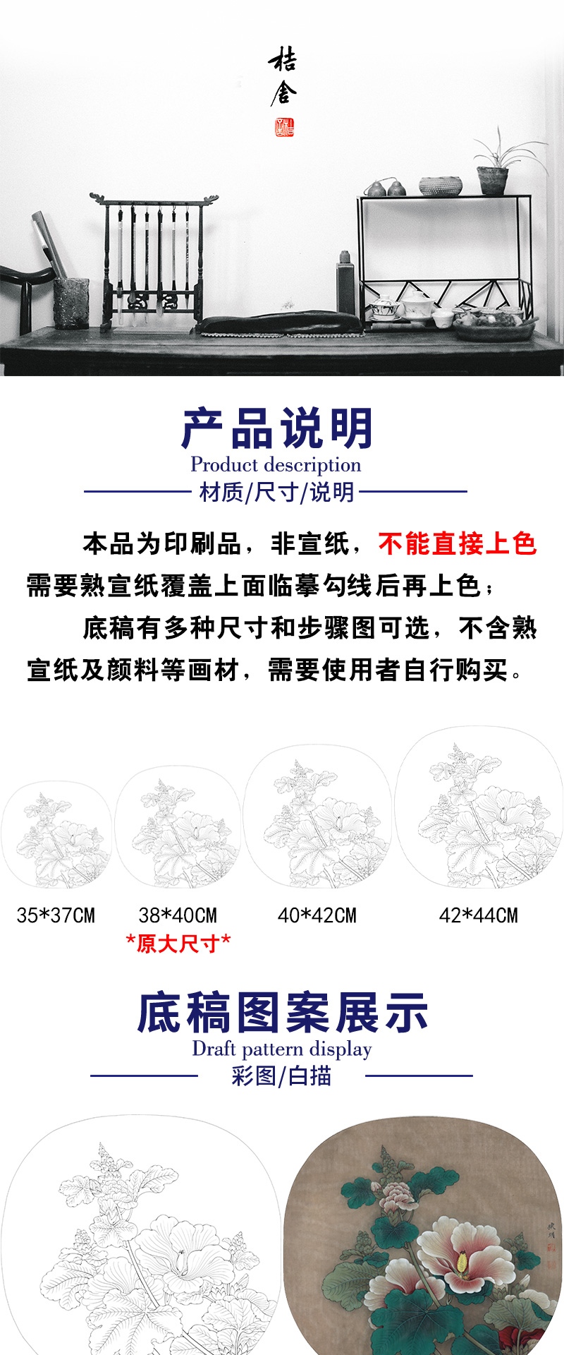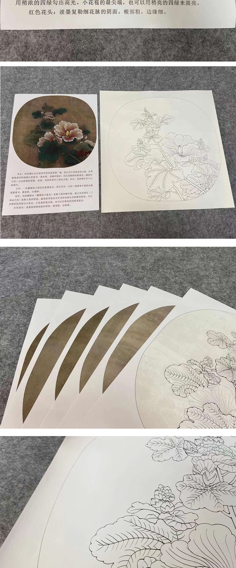 【有步骤、大彩图】李晓明工笔画白描底稿小品《临宋蜀葵图》KG13