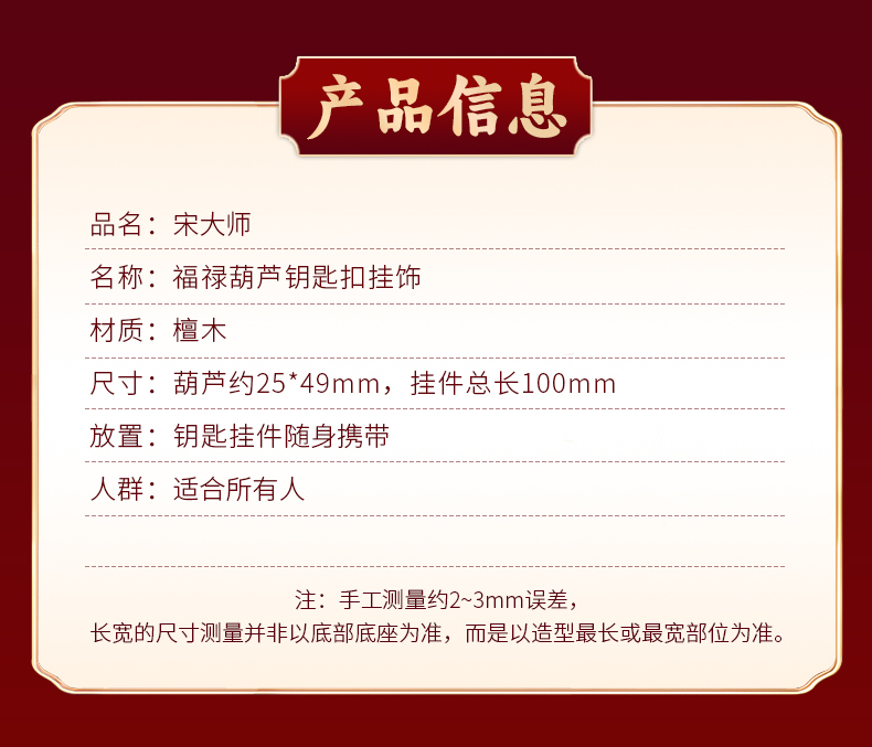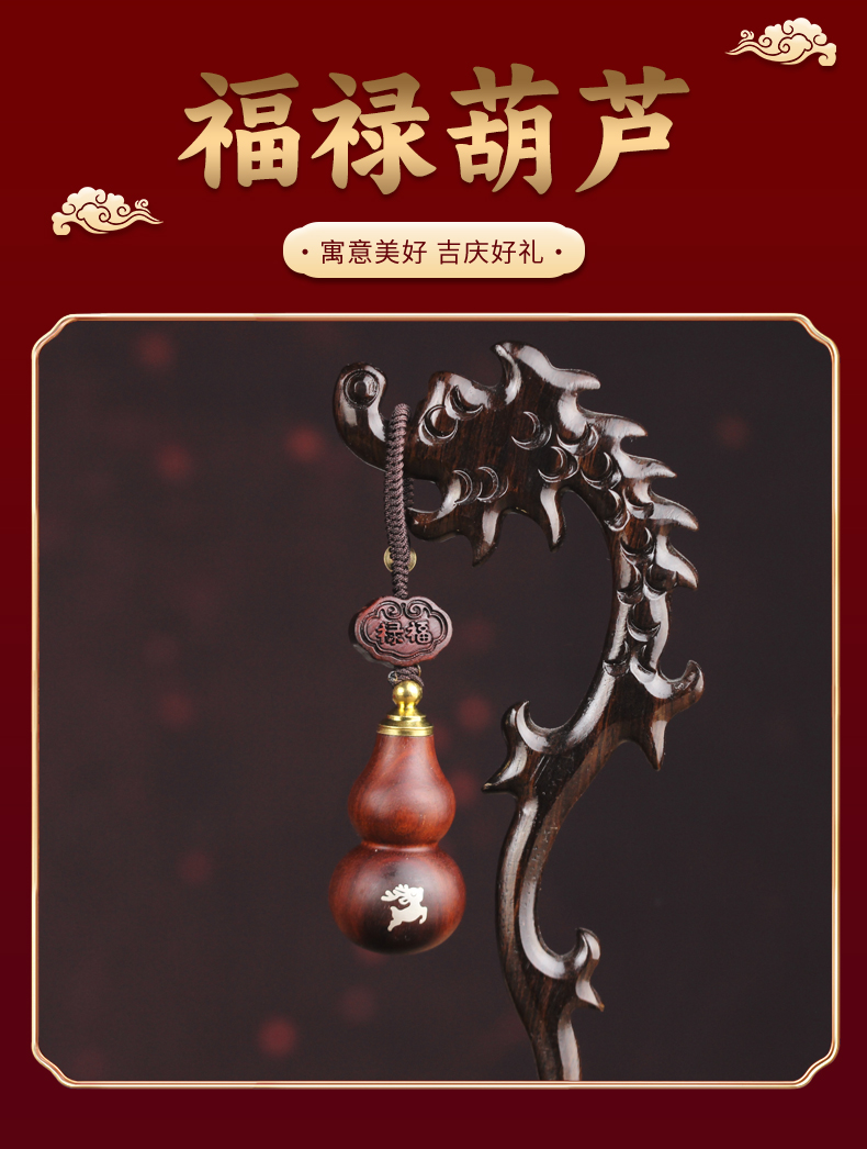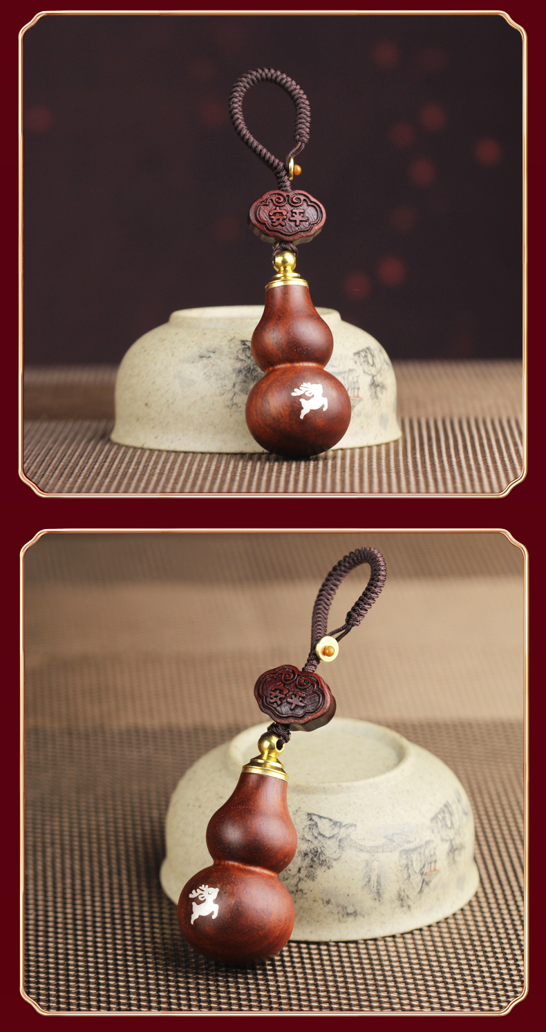 宋韶光大师新款 檀木镶银福禄葫芦 汽车钥匙扣挂饰挂件礼品饰物