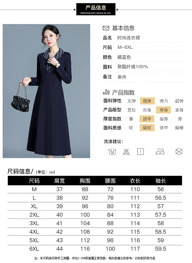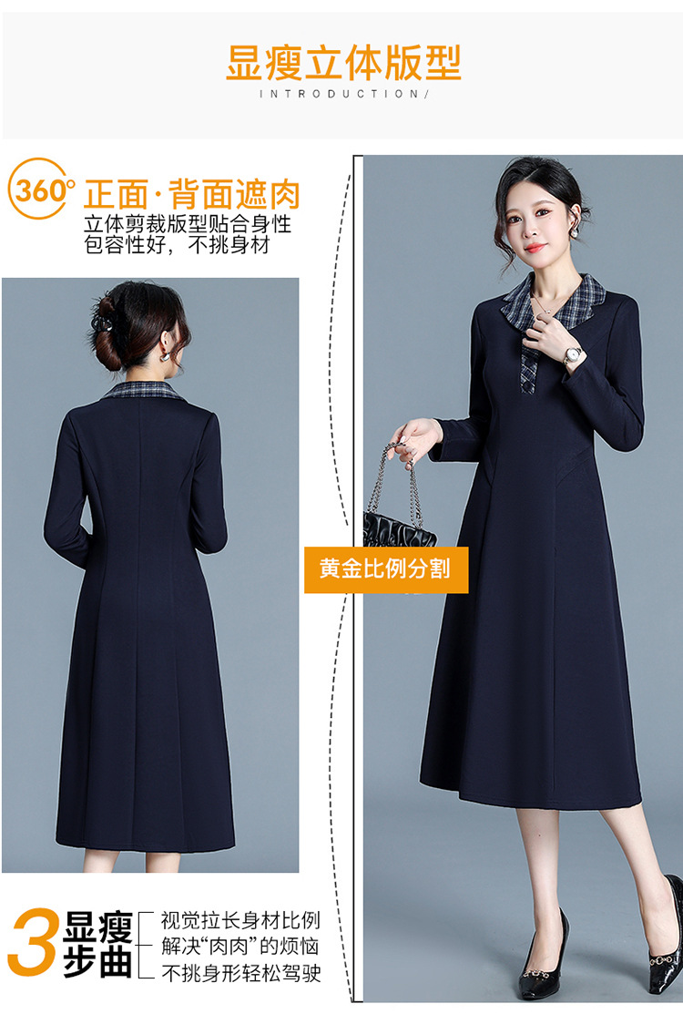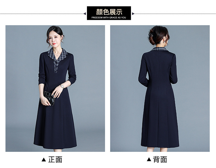 QYM H3352-Y妈妈装时尚格纹西装领连衣裙 商品图3