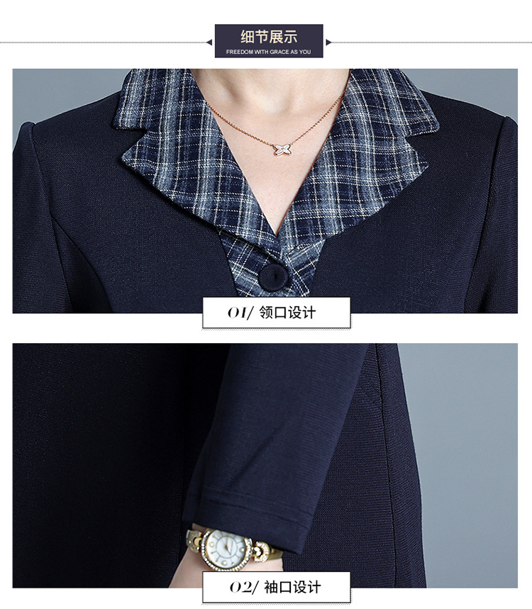 QYM H3352-Y妈妈装时尚格纹西装领连衣裙 商品图2