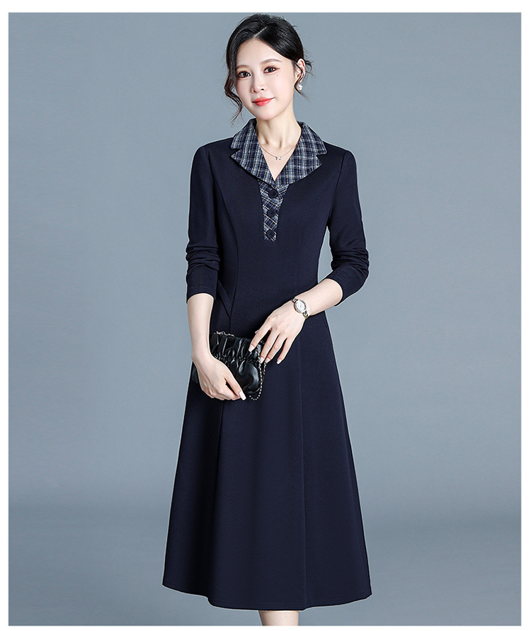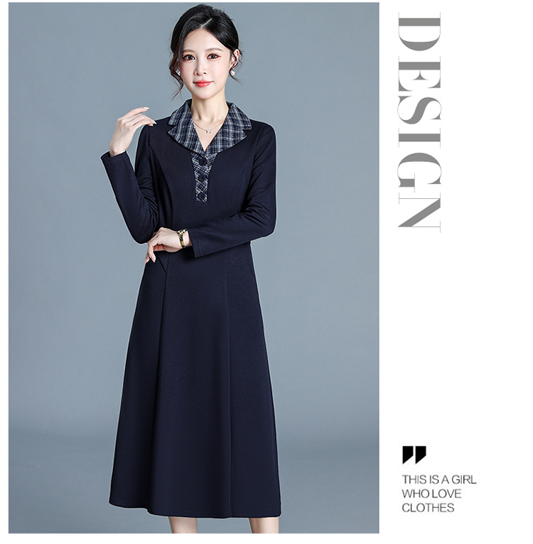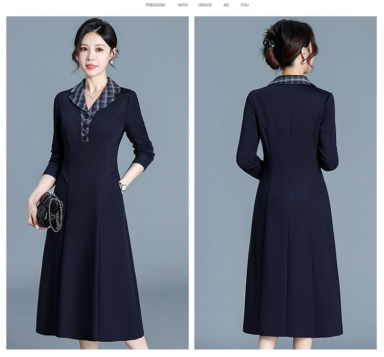QYM H3352-Y妈妈装时尚格纹西装领连衣裙 商品图1