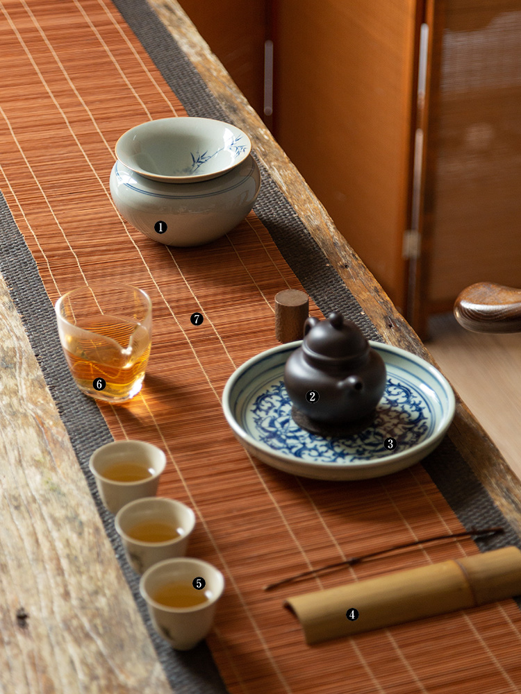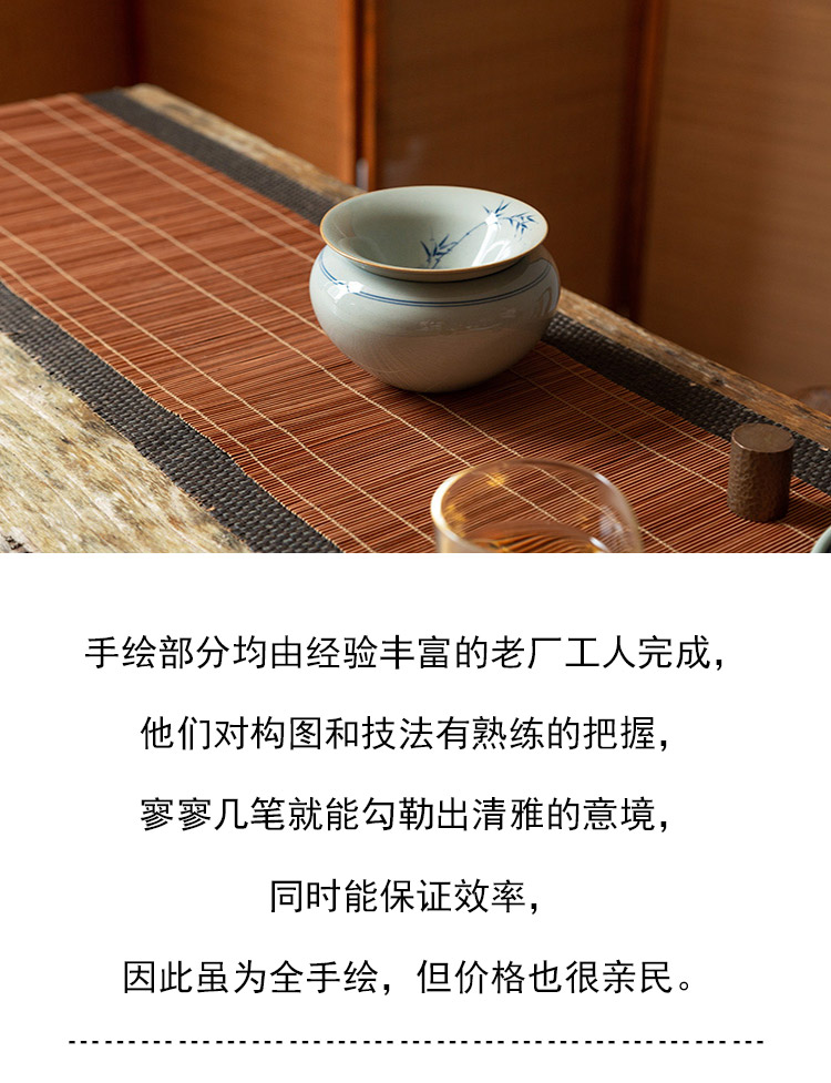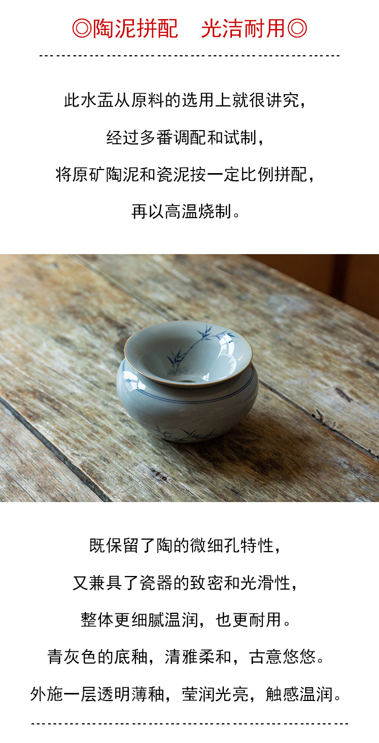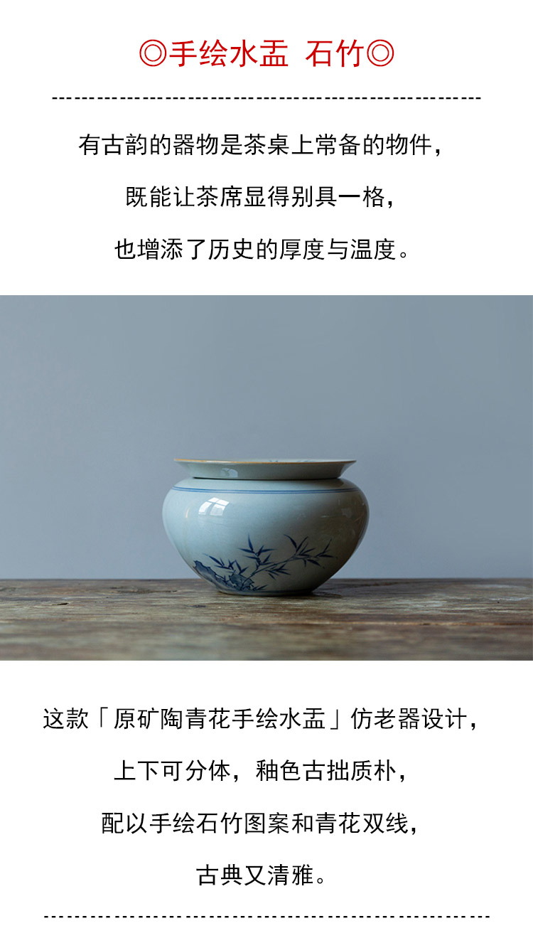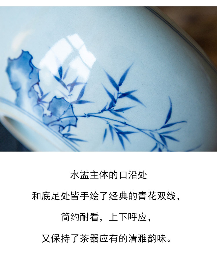 茶香记 原矿陶青花手绘水盂680ml景德镇石竹建水分体设计茶桌零配