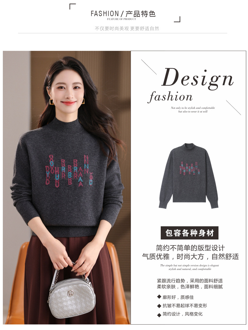 CC 35532半高领针织衫宽松显瘦洋气上衣