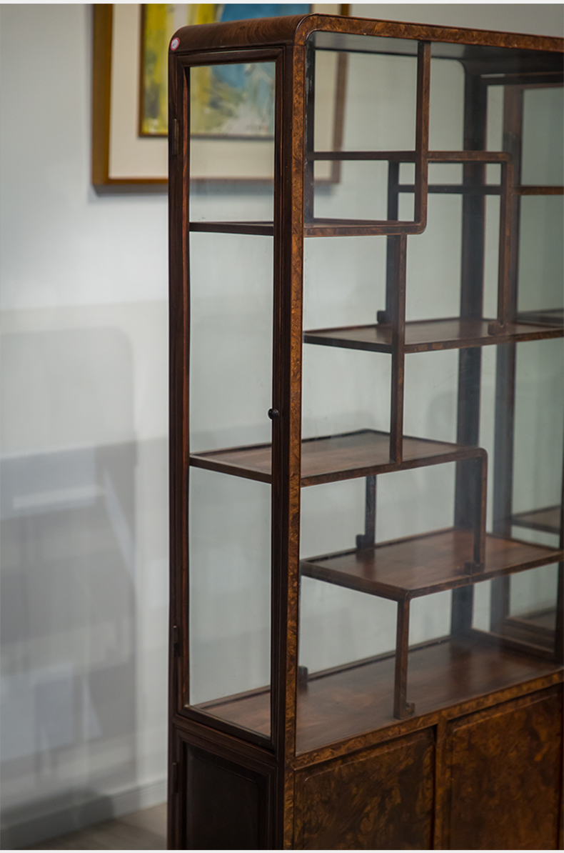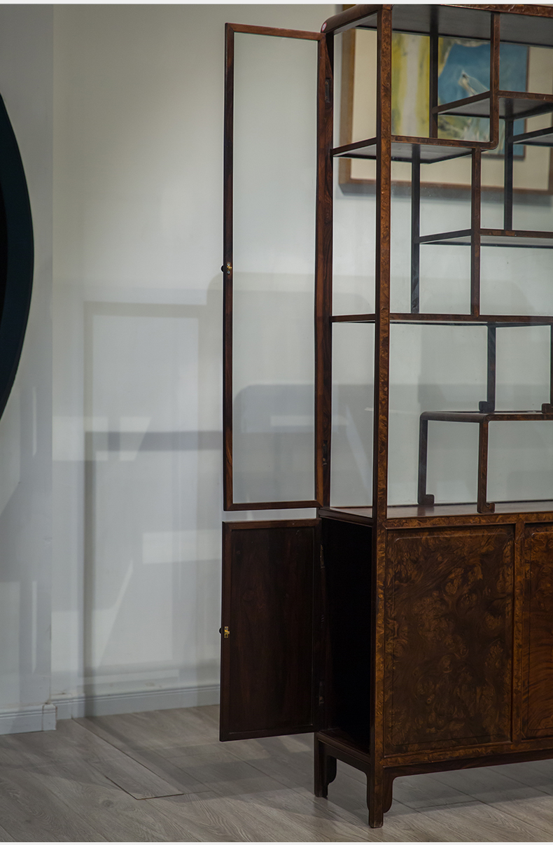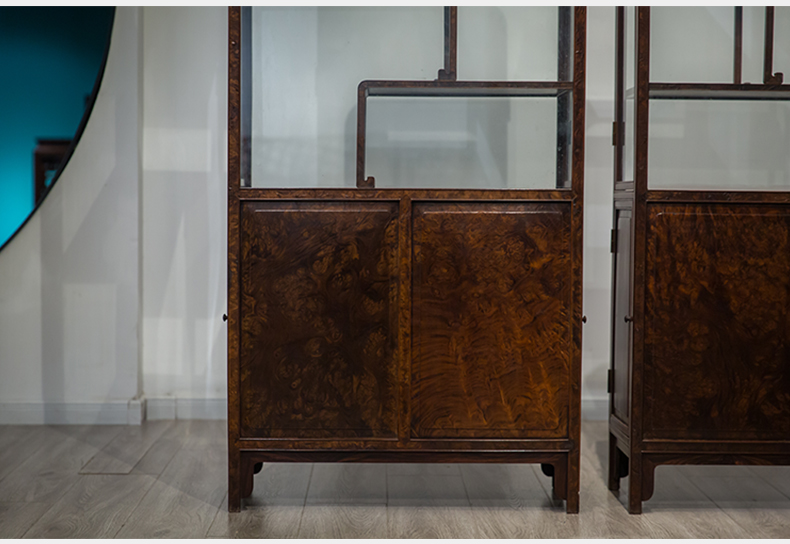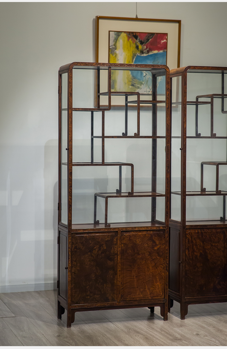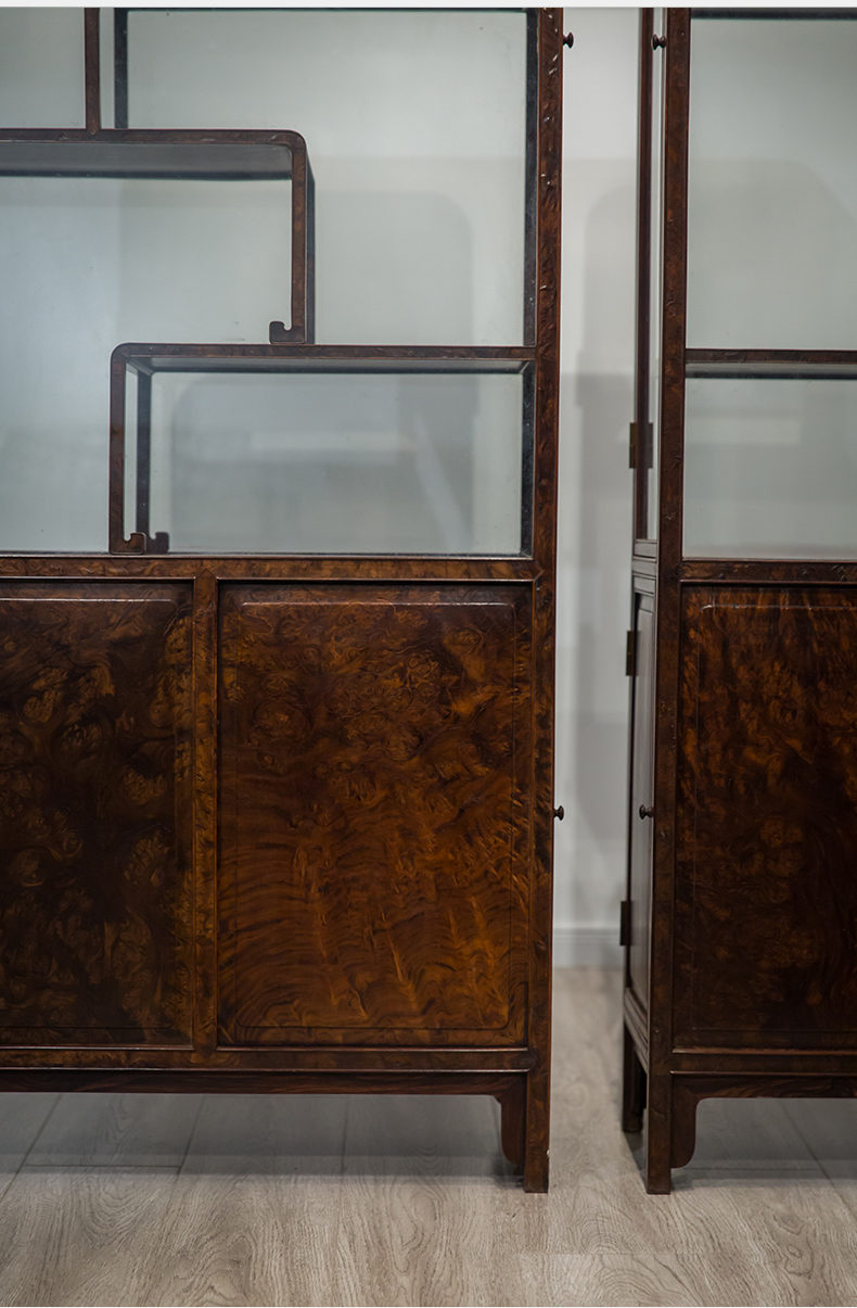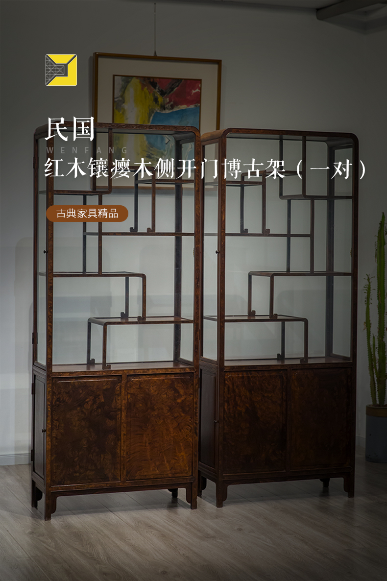 民国 红木镶瘿木侧开门博古架(一对)