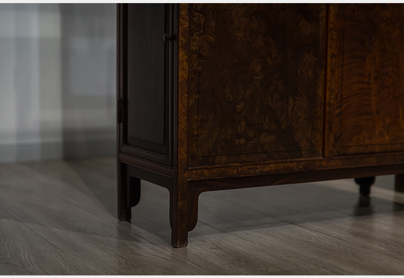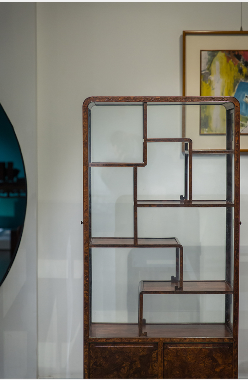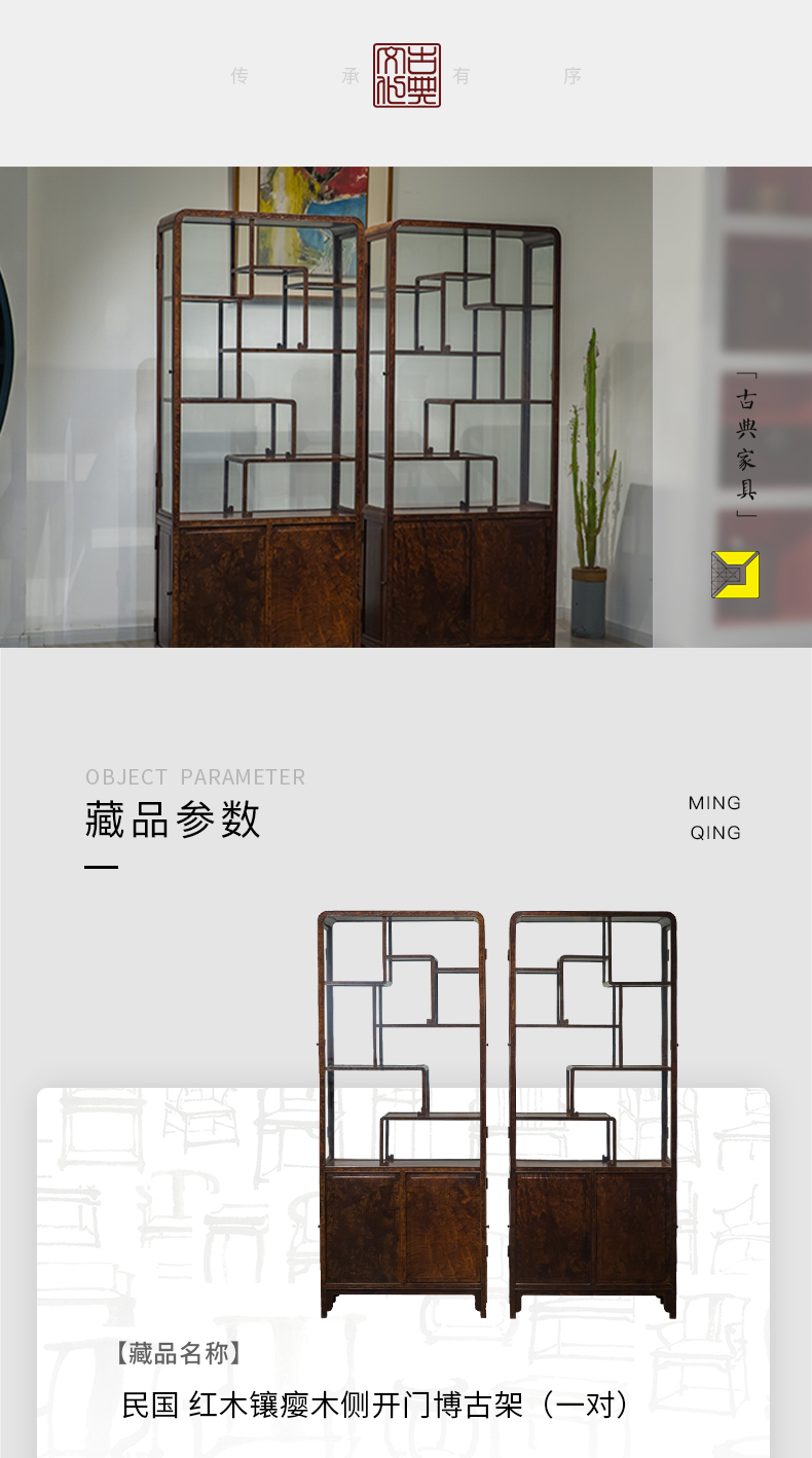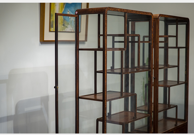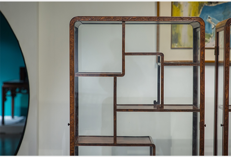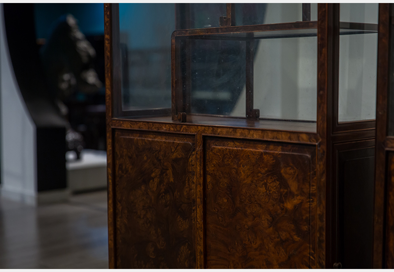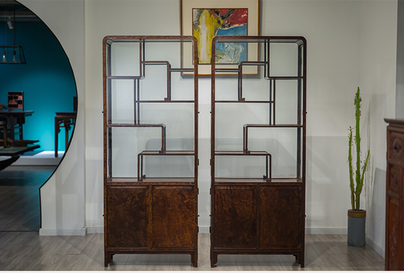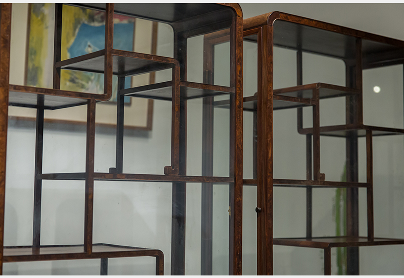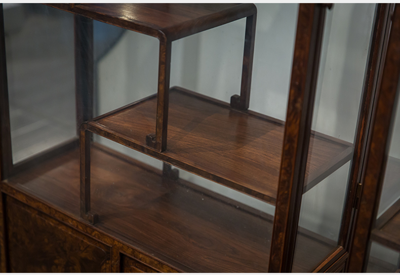 民国 红木镶瘿木侧开门博古架(一对)
