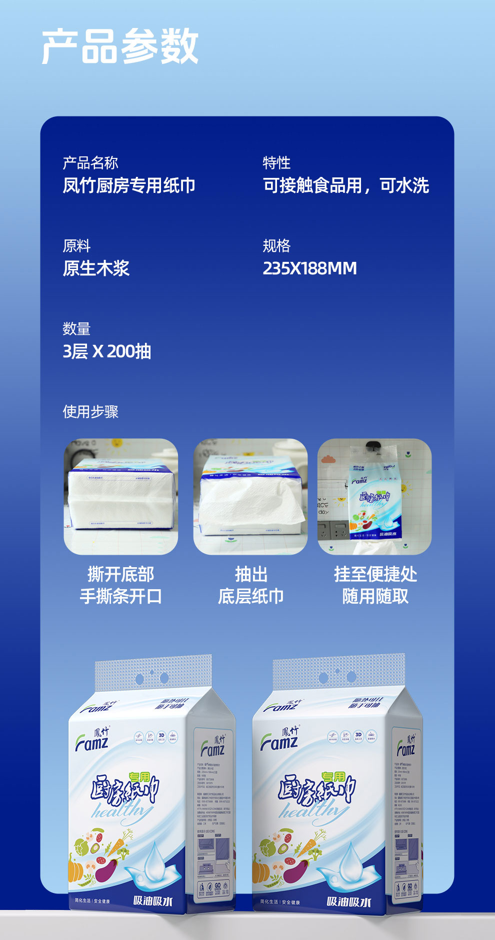 凤竹厨房专用纸巾/1份(200抽*2提)限用日期:28年4月补单专用