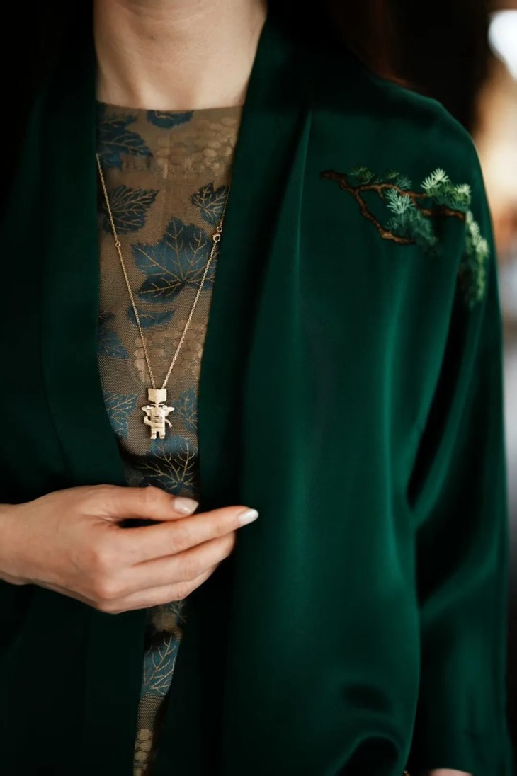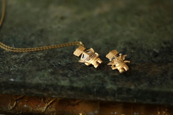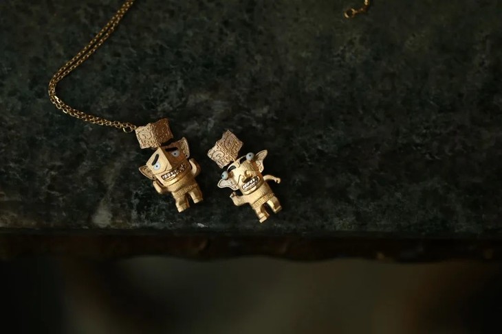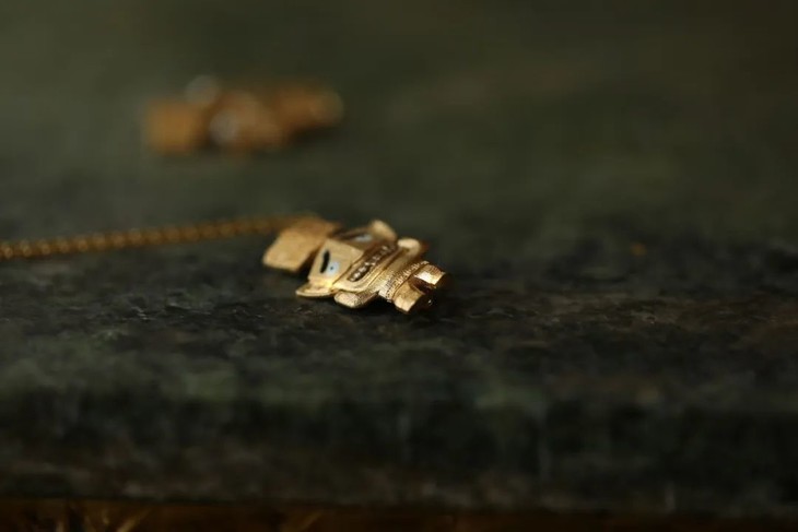 新出炉的小金人背后设置环扣,且有藏针,可做项坠,胸针。