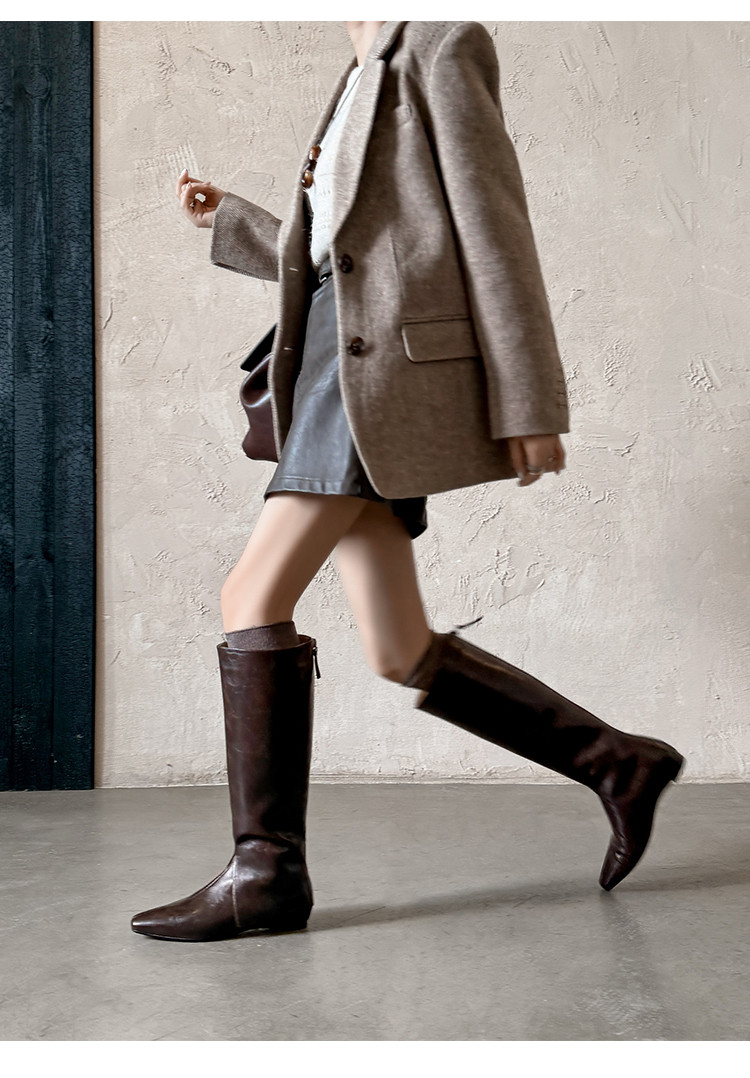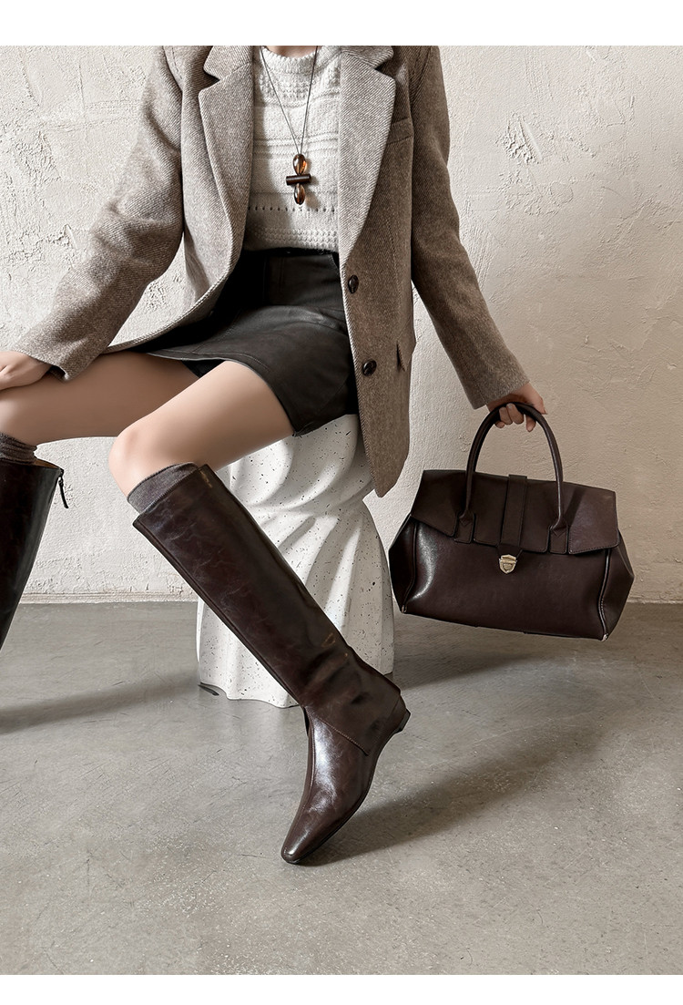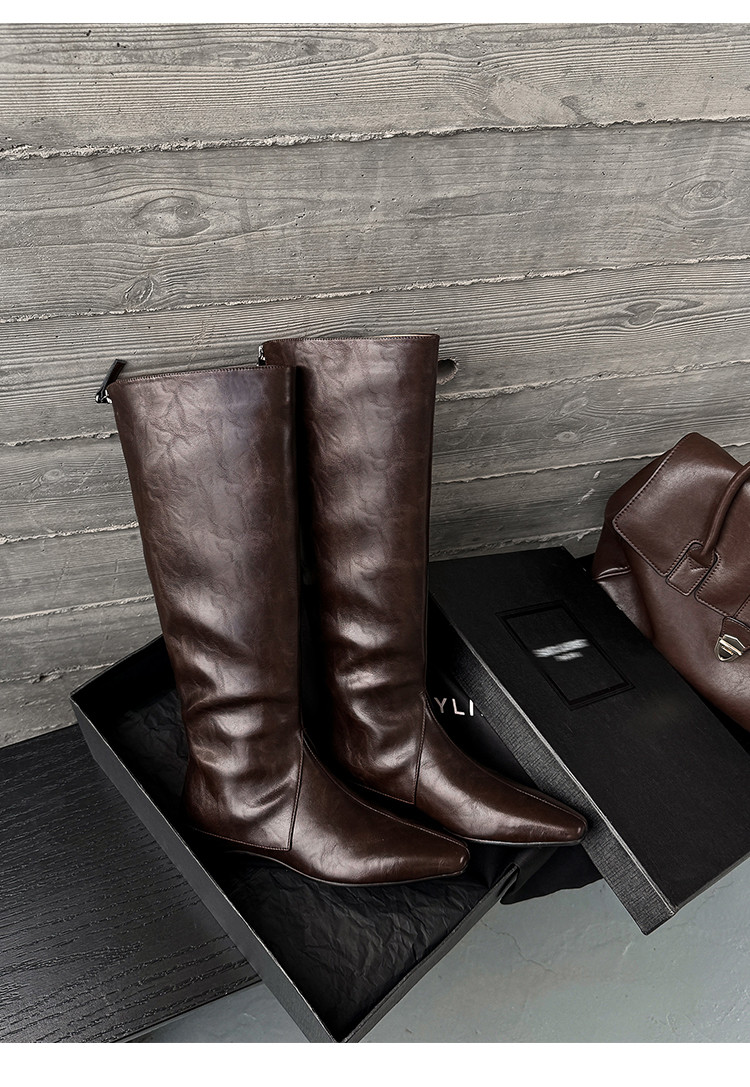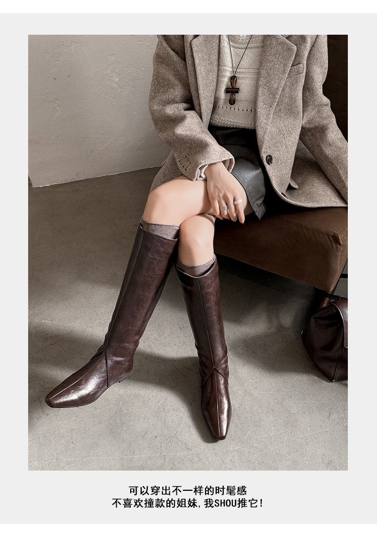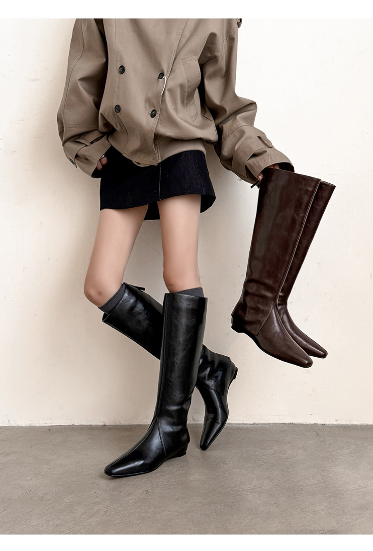 【预售7天】内增高西部牛仔马丁靴女长筒靴秋冬高筒烟管靴复古骑士长靴DYJ&CV1286-1